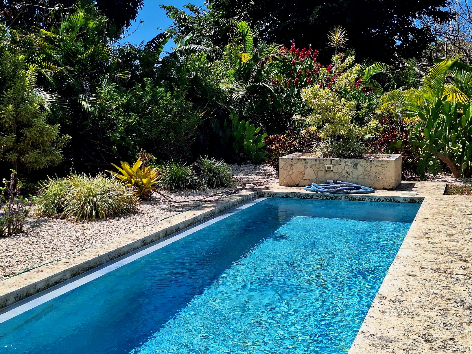 There is a split floor plan with two en-suite bedrooms, each with a seating area that allows lots of privacy. A wonderful lap pool is very conveniently situated on the back side of the property. It catches the sun all day and warms up to a very comfortable temperature.