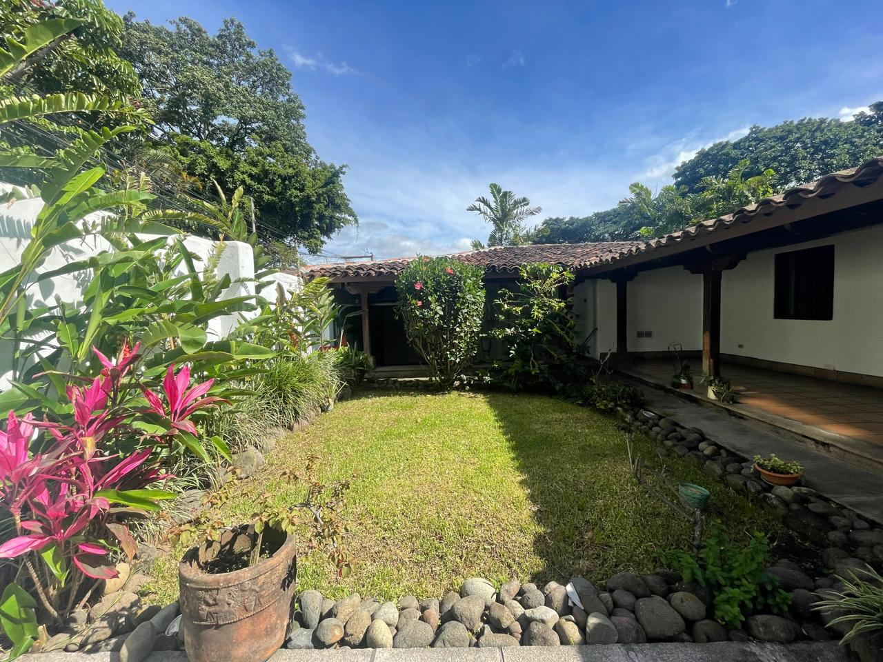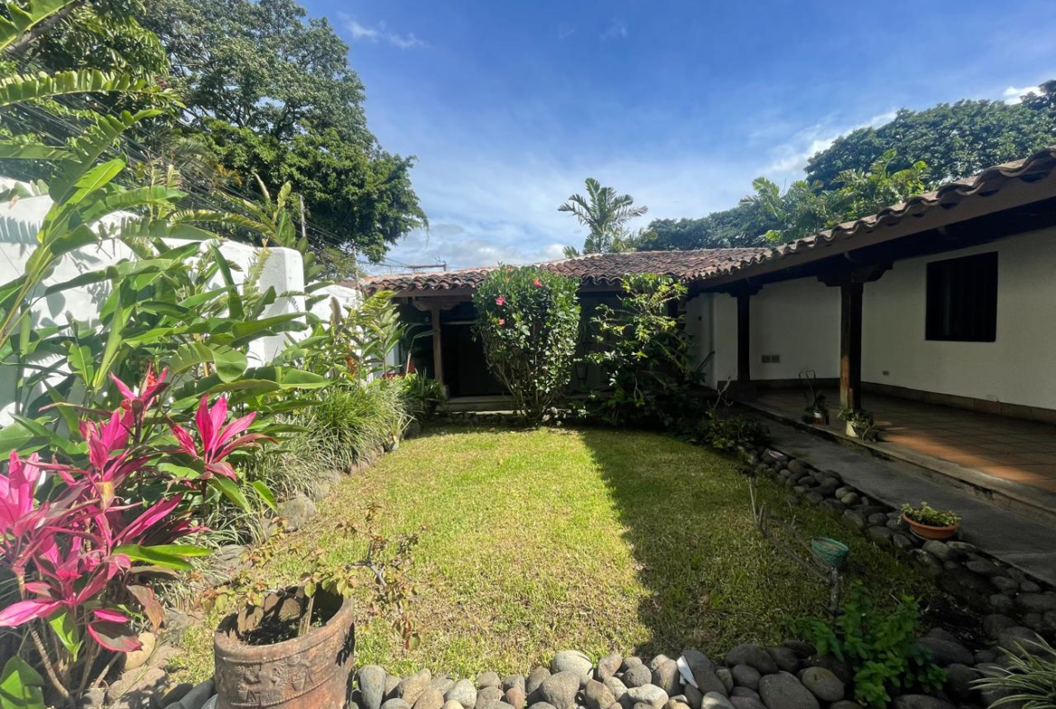 3 BR Colonial Adobe Single Story Gem in the Heart of Escazú for sale. Discover this unique one-story colonial adobe home, beautifully restored and expanded to preserve its vintage charm while adding modern comfort. With its character-rich, thick adobe walls, handcrafted wood details, and timeless architecture, this home offers a perfect blend of elegance and warmth.