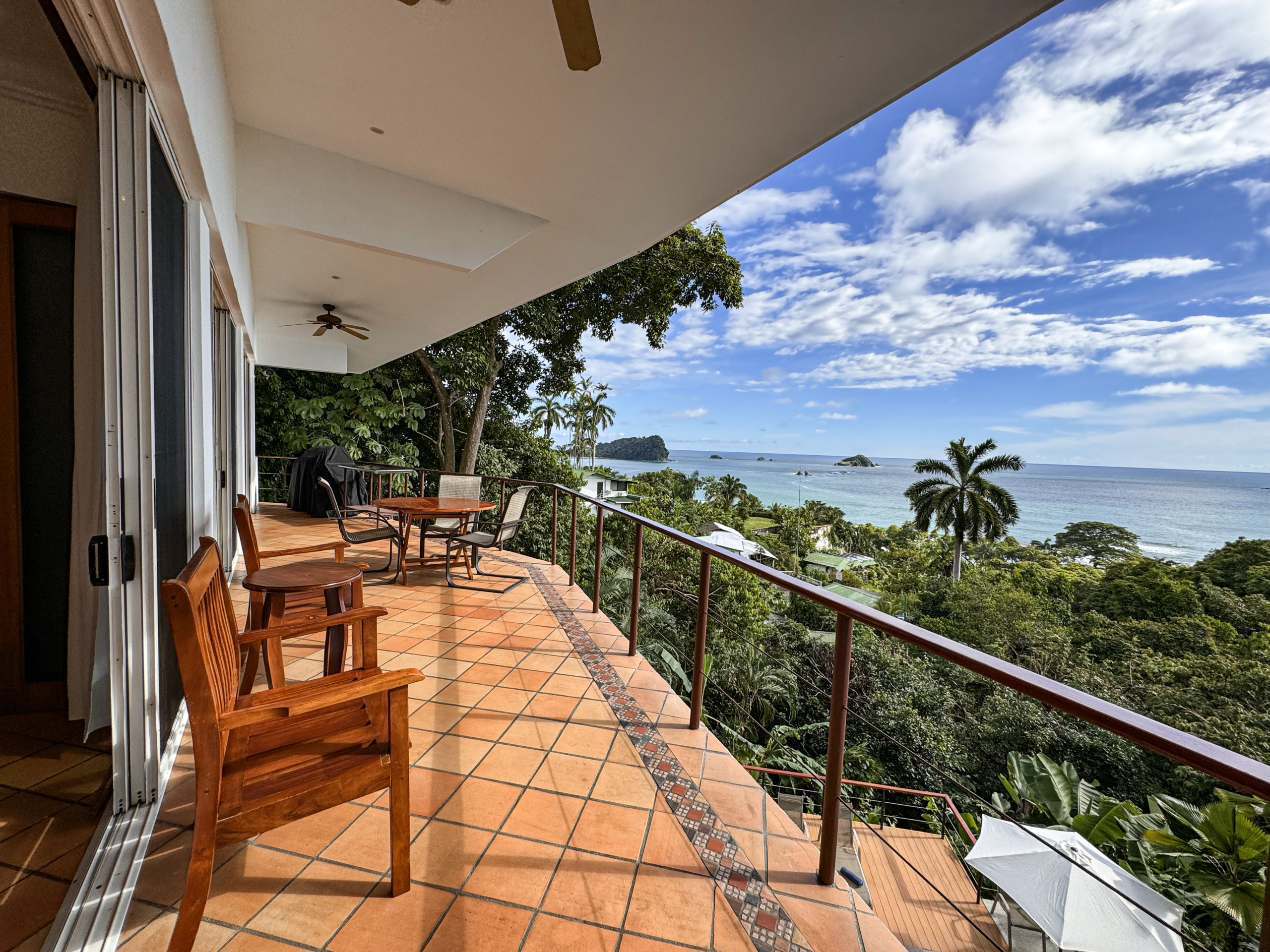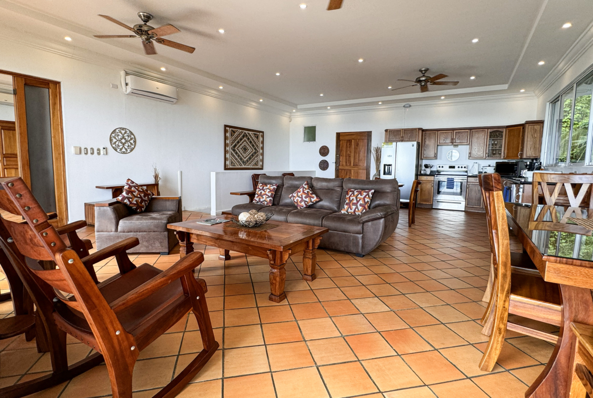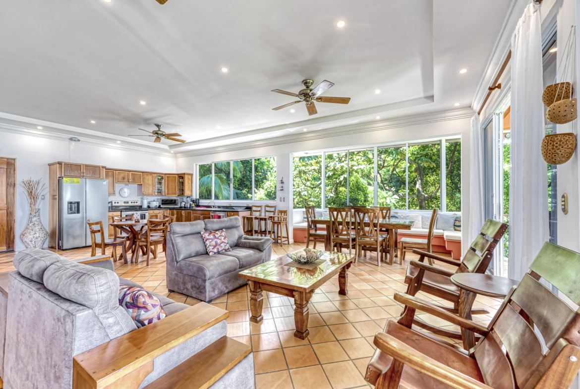 Designed with the utmost comfort, this three-level sanctuary features 4.5 elegantly appointed bathrooms and is fully air-conditioned, ensuring a pleasant and refreshing atmosphere throughout your stay. The expansive layout of the villa encompasses ample balconies on the top two levels, providing breathtaking views of the ocean, lush jungle, and the surrounding area. From these vantage points, you can observe three species of monkeys, sloths, and many colorful birds that call this tropical paradise home.