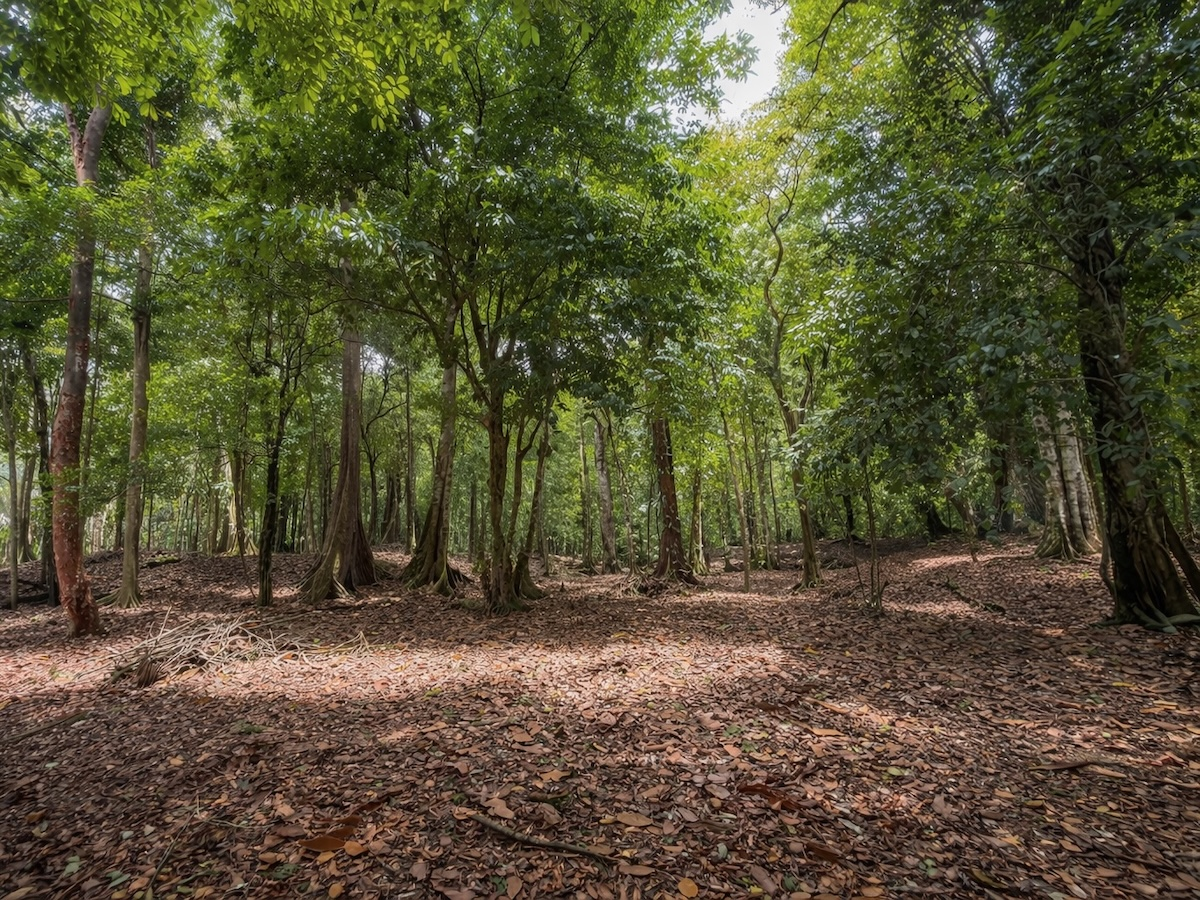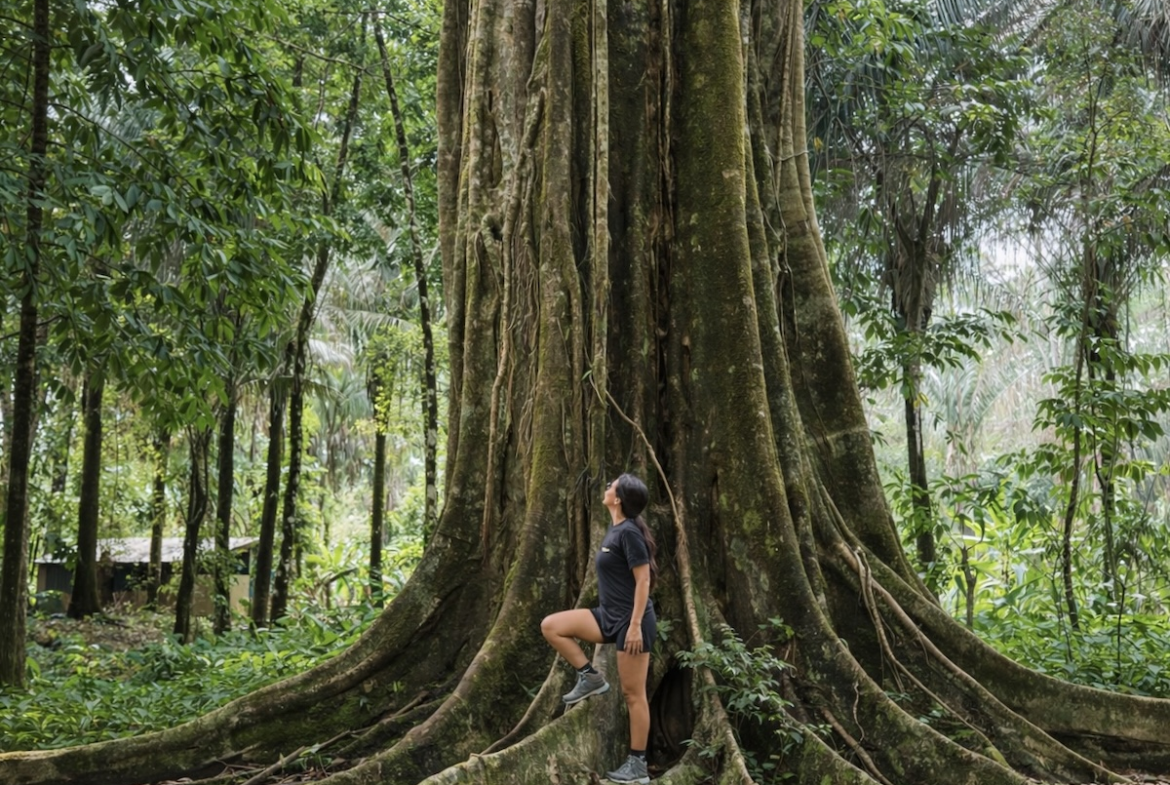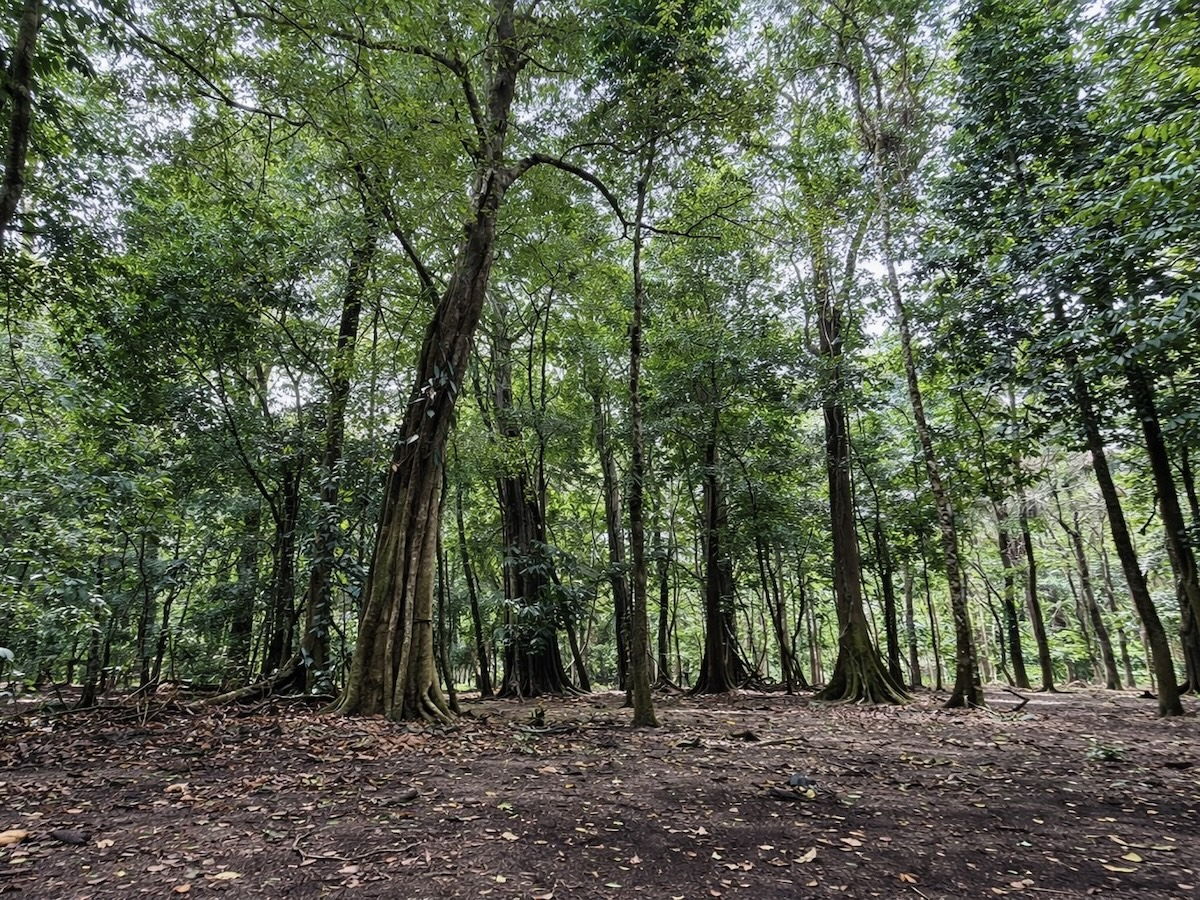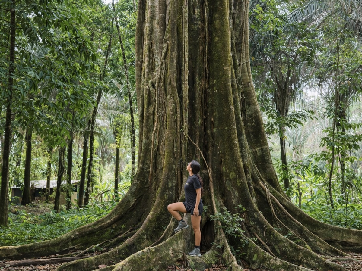 - Mature rainforest trees with striking root systems throughout