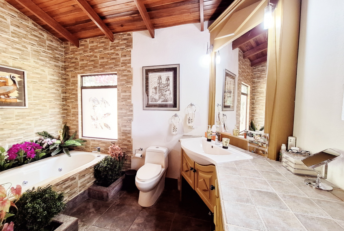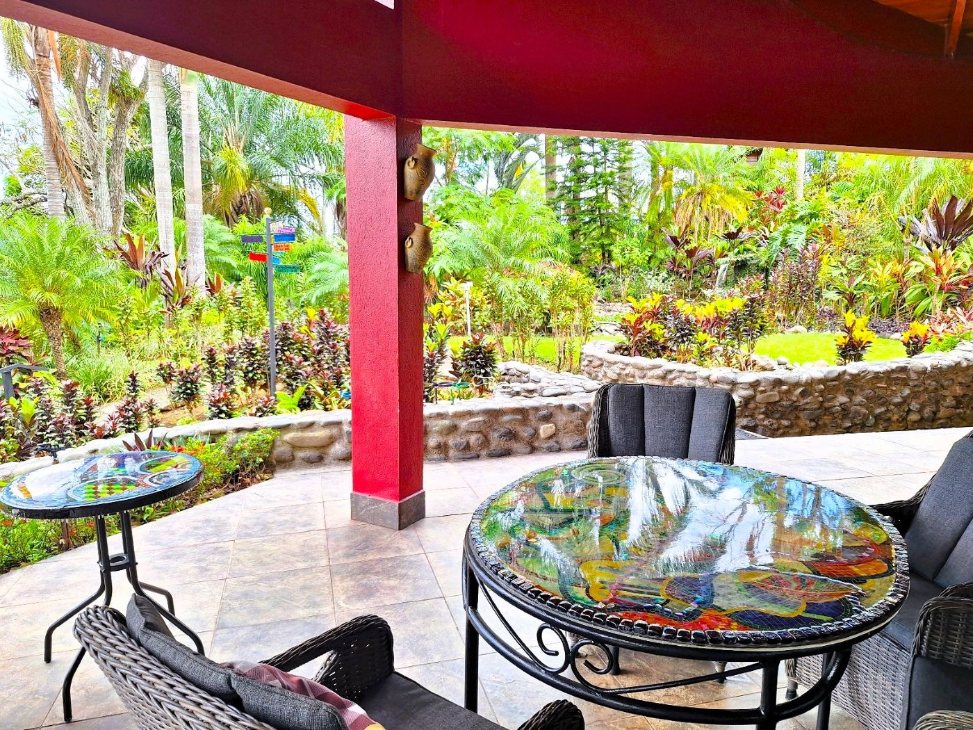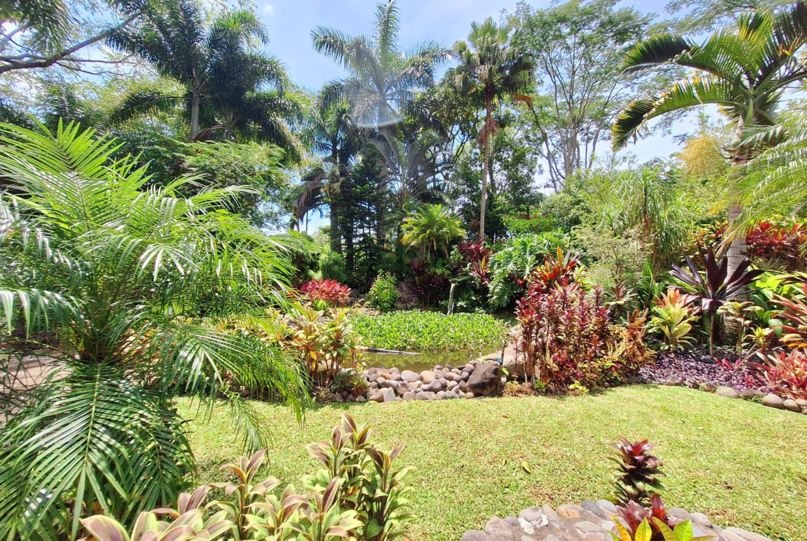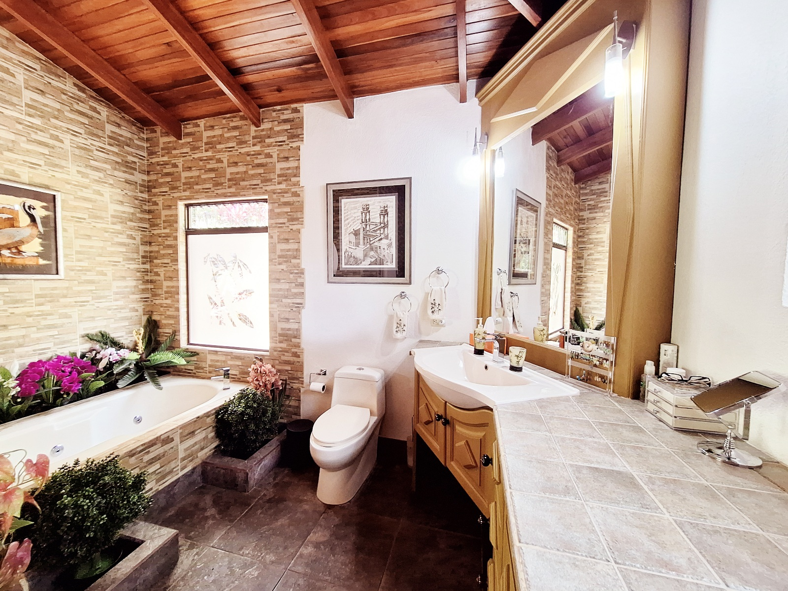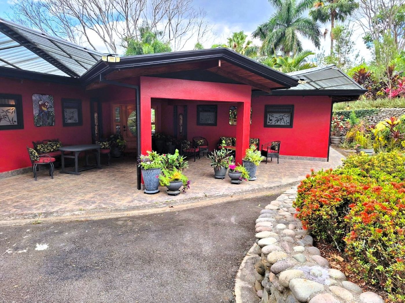 You will find this immaculate home just 10 minutes from downtown Atenas. The property spans 1.5 acres (6007 m2) of spectacular landscaped gardens, featuring exotic plants, fruit trees, and a serene atmosphere. It looks like every tropical plant/flower/bush that Costa Rica has can be found in this Garden of Eden. A large fishpond with a waterfall creates a soothing ambiance, while paved walkways meander through the property, perfect for strolling and taking in the natural beauty.