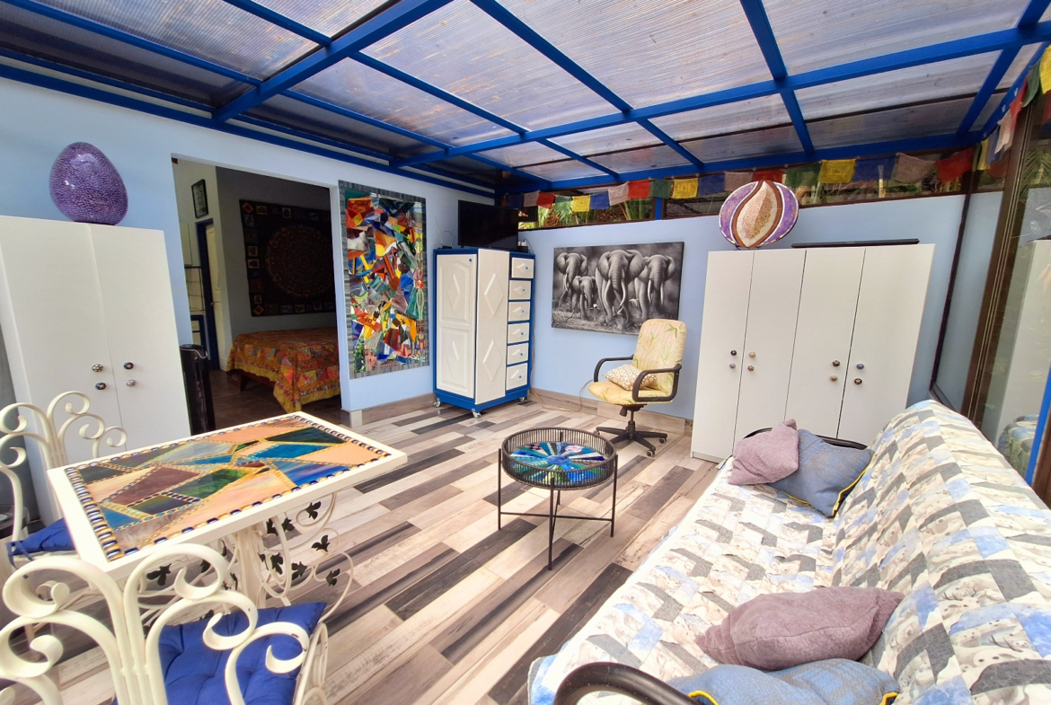 Away from the main house, a paved walkway takes you to a charming guest house complete with bedroom, kitchen, bathroom and a funky inviting living area. Perfectly designed for overnight staying guests, but also ideal for rental opportunities.