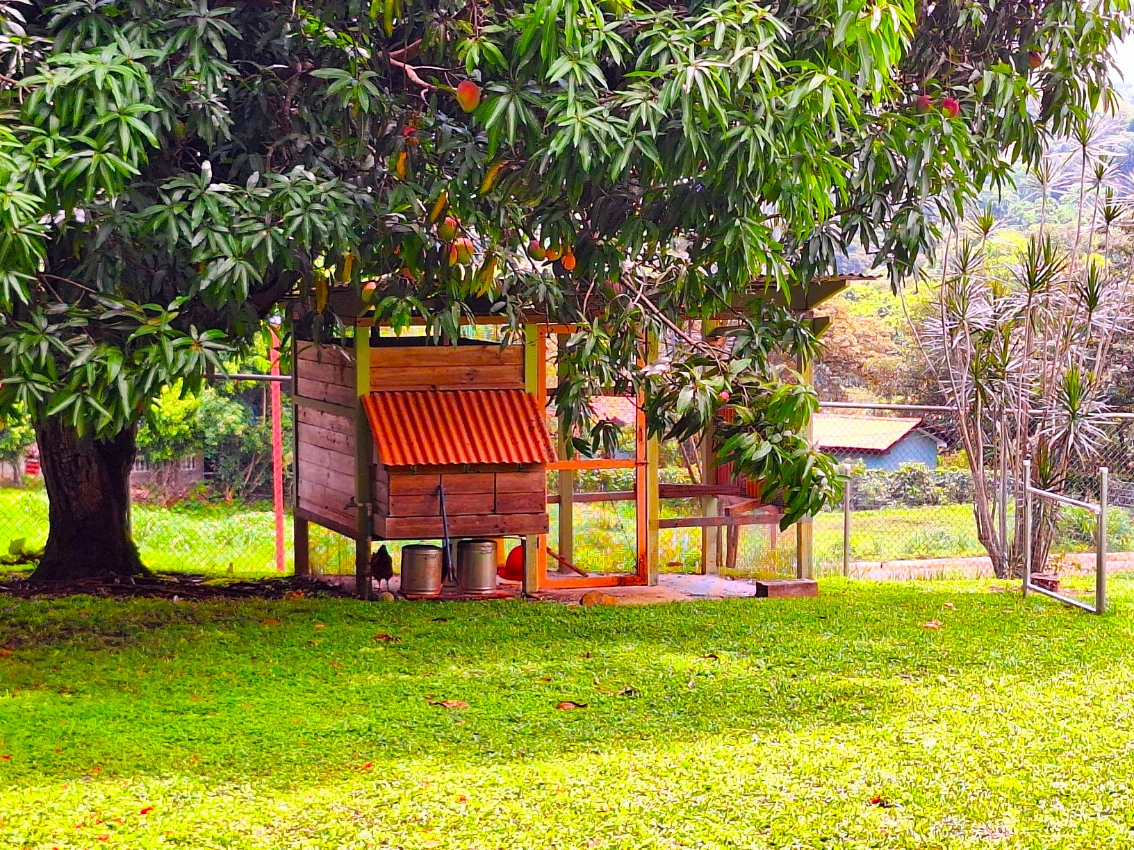 The urge to pause and explore the spectacular grounds is strong, meticulously maintained greens lawns, fruit-bearing trees, gardens with tropical plants, and different varieties of mature native trees screams out that you have entered a piece of paradise. The property is large and the full acre is all usable land. The owners have made a nice hen-house and thus are always assured to have fresh eggs from their free ranged hobby chickens.