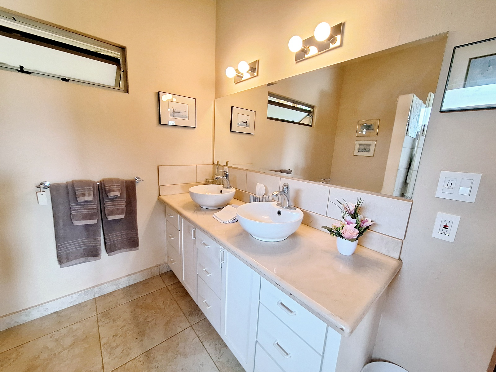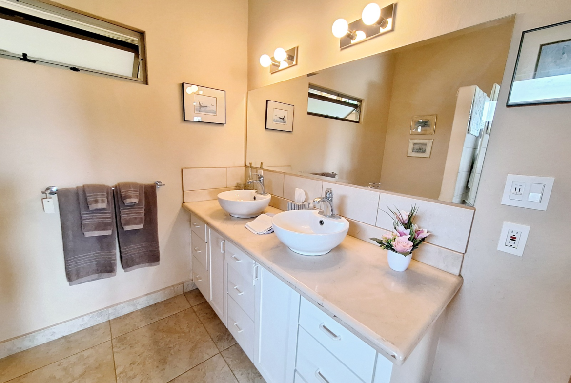 The split floor plan has 2 large master bedrooms with en-suite bathrooms. One of the bathrooms has a specially designed spa with a soaking tub, a great area for leisure relaxation while enjoying the spectacular views that this property has to offer.