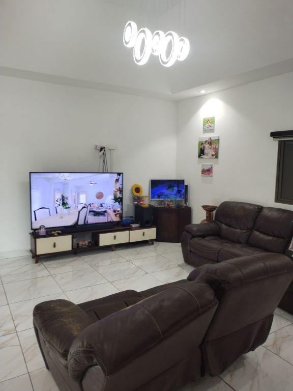 The home’s open-concept living space is filled with natural light, perfect for both relaxation and entertaining. The kitchen is modern and well-equipped, flowing seamlessly into the dining and living areas. Each bedroom offers ample space and privacy, with the master suite boasting an en-suite bathroom.