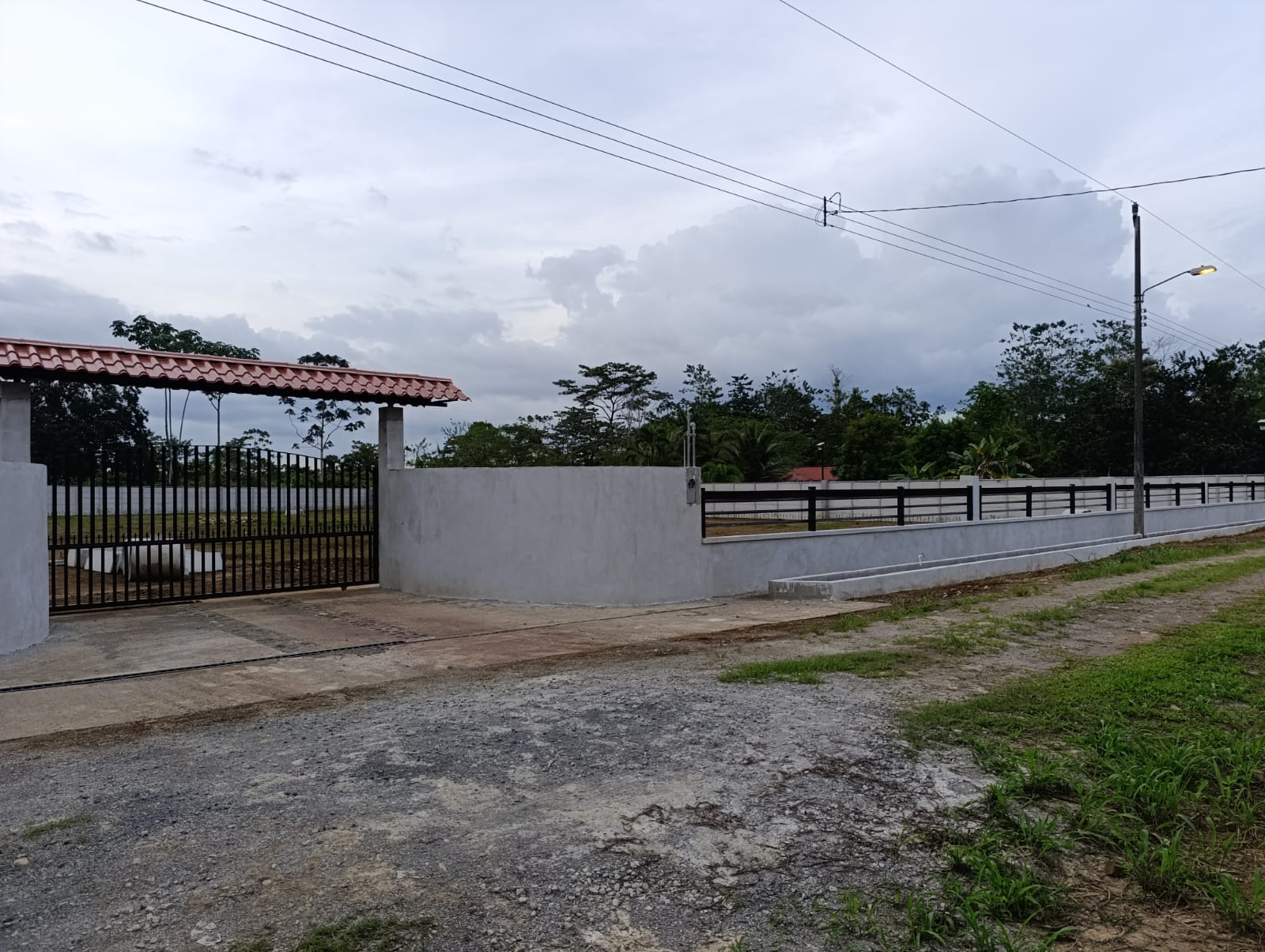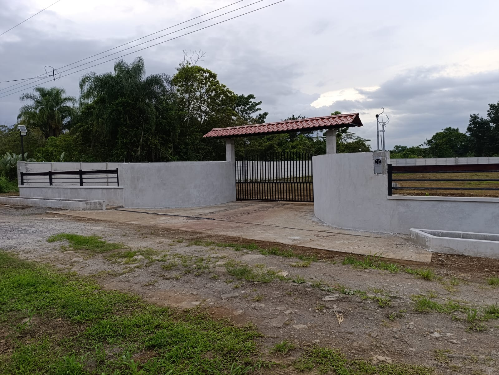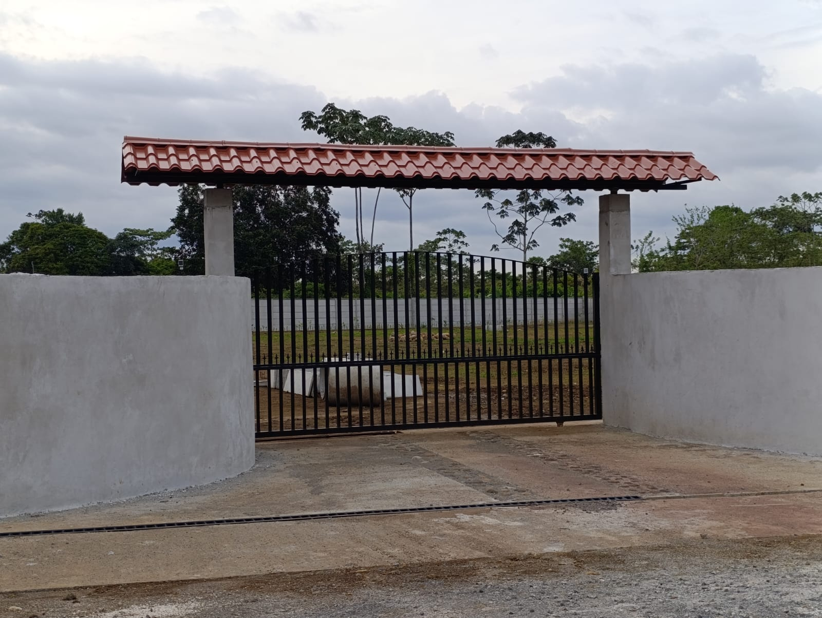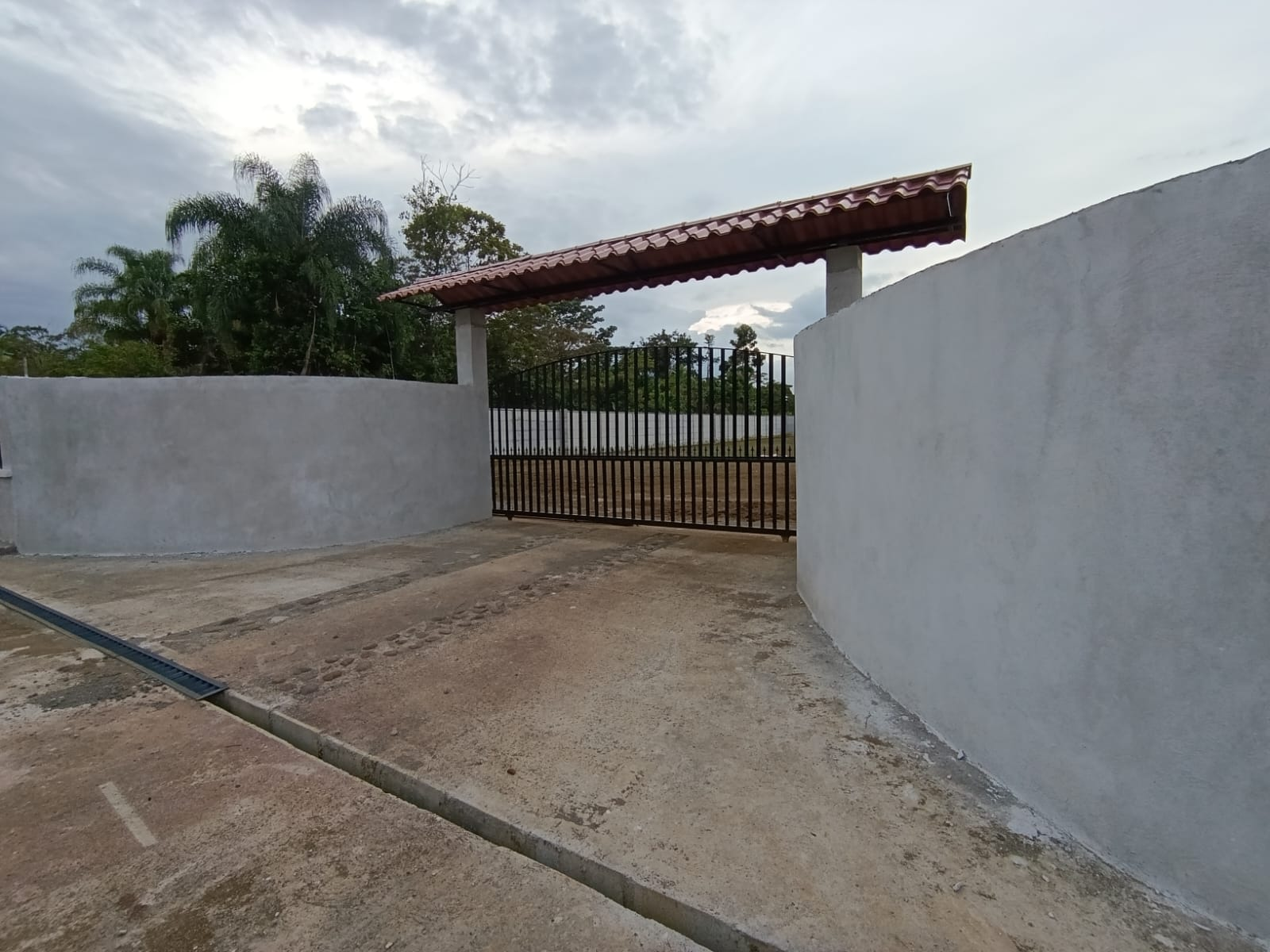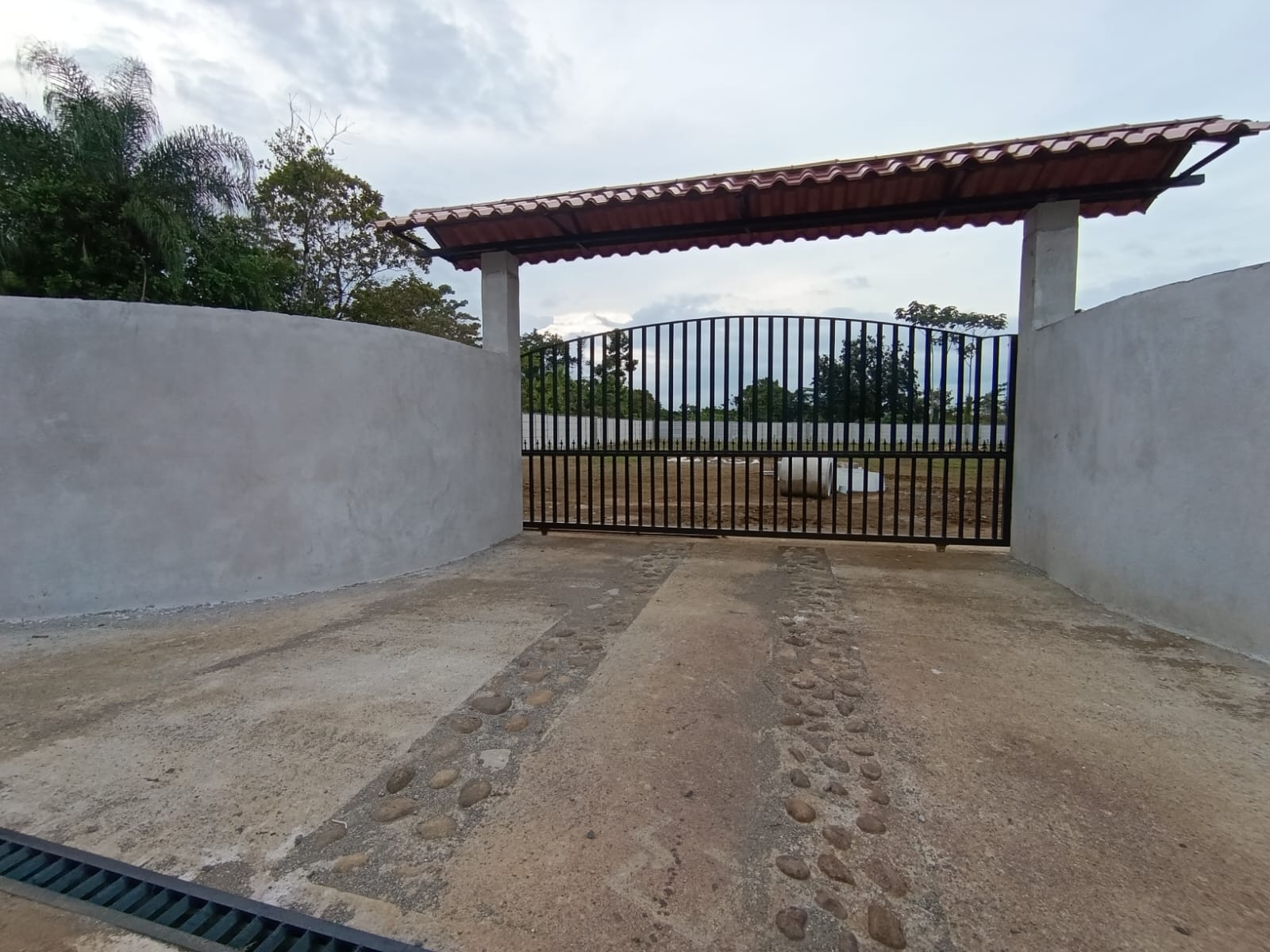 – Steel gate with a roof