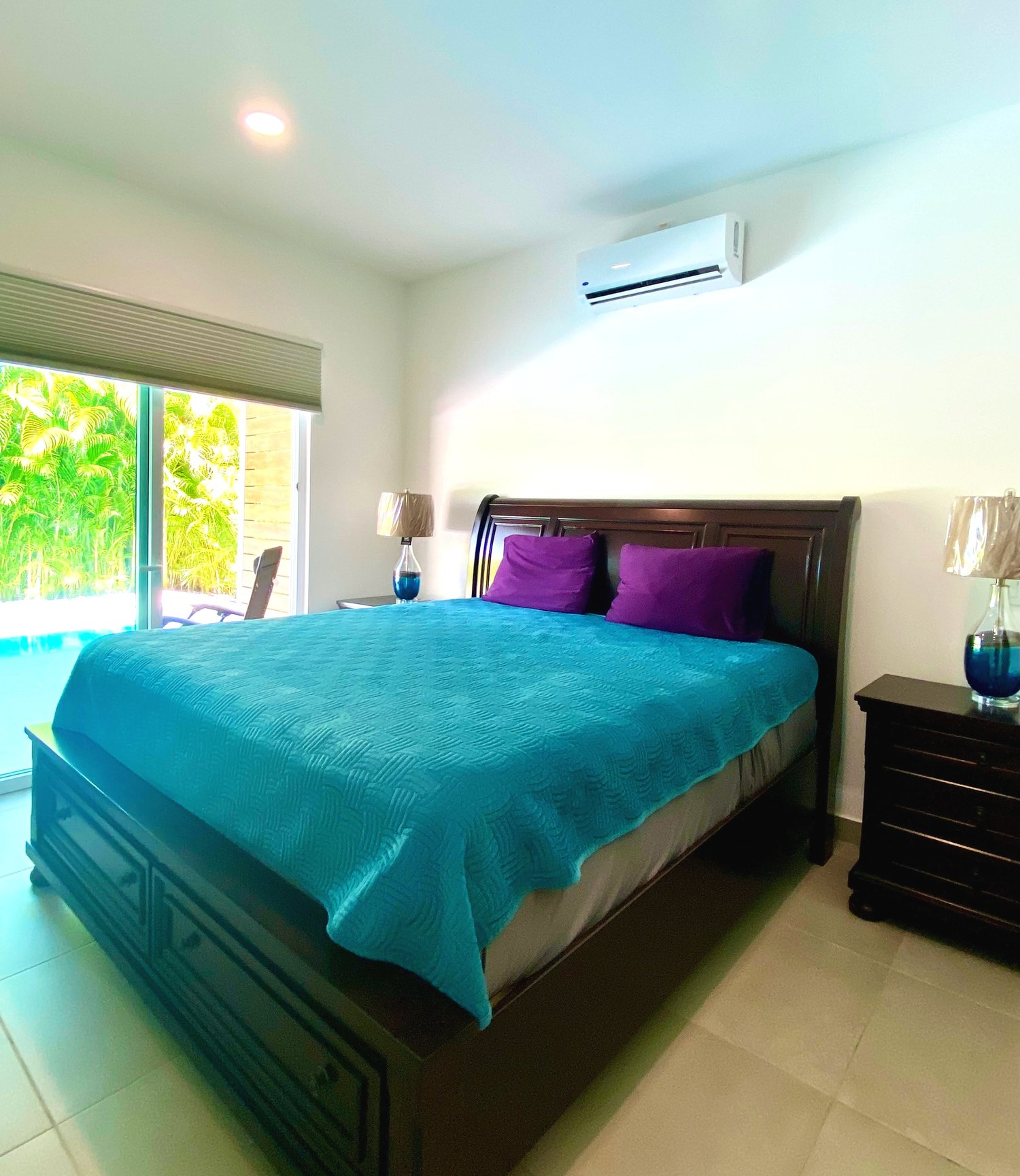 Master Suite with a King-sized bed, walk-in closet, full ensuite bathroom, and A/C