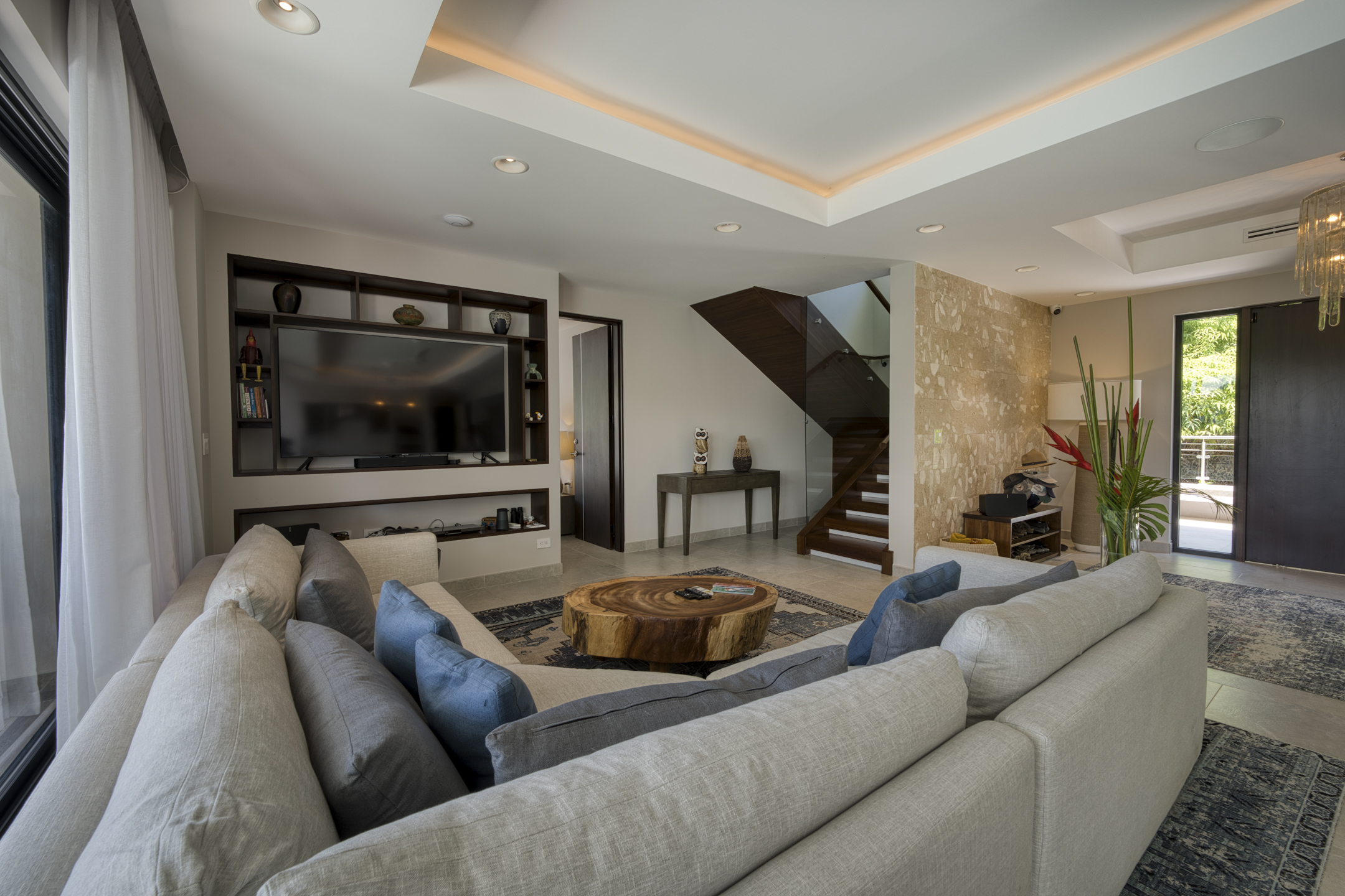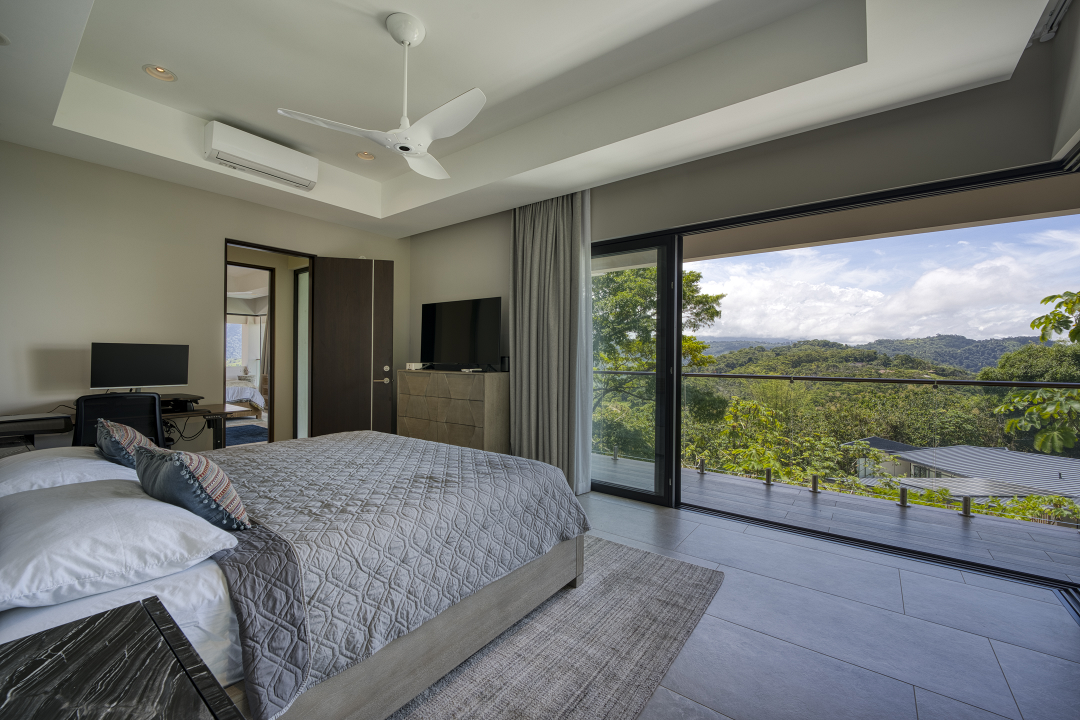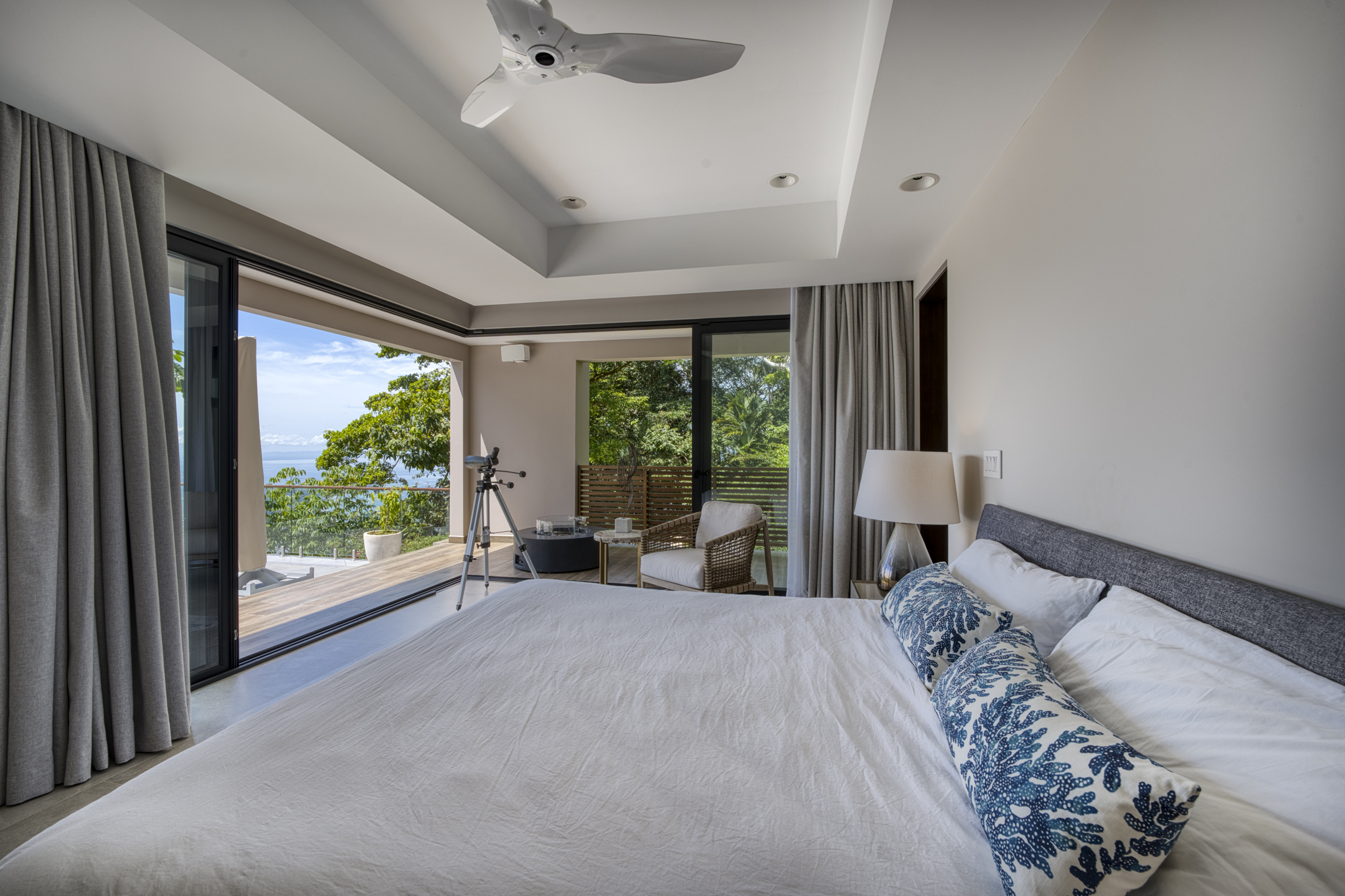 Costa Verde 4 BR Estate with Whale’s Tail View for sale. Nestled amidst the lush peaks of Escaleras, where the mountains meet the sea, discover this extraordinary sanctuary within Costa Verde Estates. More than a residence, it’s a daily ode to nature’s symphony. Awaken each morning on the terrace with freshly brewed Costa Rican coffee, greeted by the glistening Whale’s Tail coastline to the west and the thundering Diamante Waterfall to the east, while mountain streams murmur below. Completed in 2022, this expansive 8,000 sq ft architectural masterpiece seamlessly blends sleek contemporary design with the warmth of natural materials.
