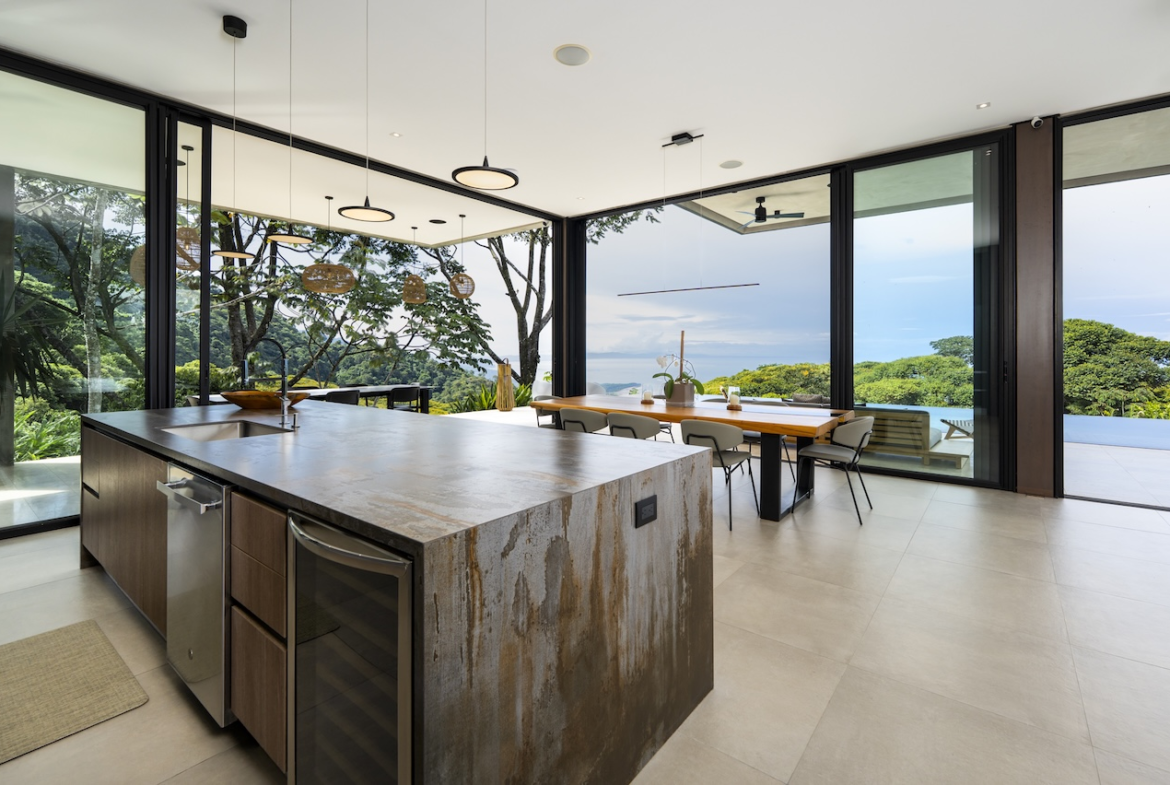 Suspended above the jungle canopy within the premier community of Costa Verde Estates, ¡Que Brava! is a modern architectural jewel on Costa Rica’s southern Pacific coast. Conceived by renowned architect Martin Wells, the residence reflects his signature balance of bold geometry and deep connection to nature. Crafted of steel, concrete, and glass, it commands sweeping views of the Pacific Ocean, Marino Ballena’s Whale Tail, and endless rainforest ridgelines—framed at dusk by year-round sunsets.