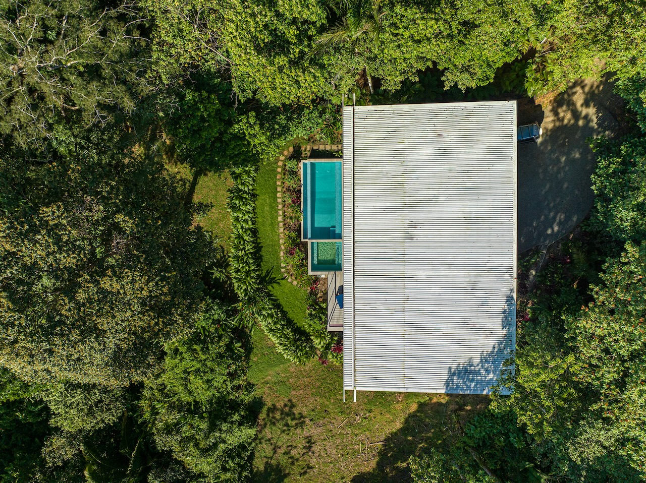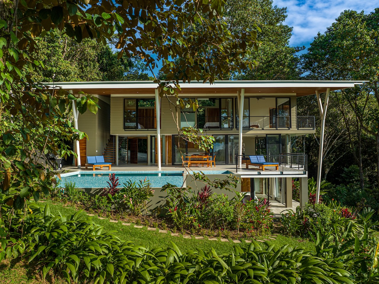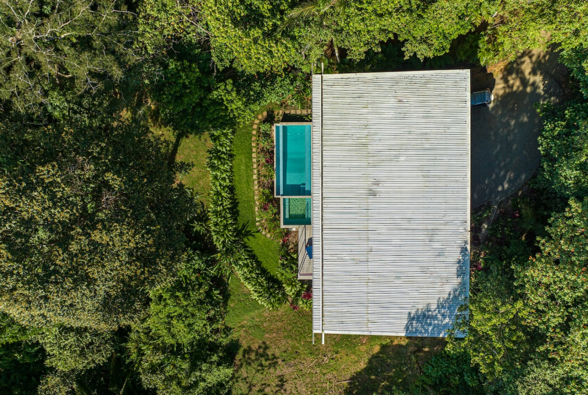 Unwind in the infinity pool or soothe your senses in the hot tub while listening to the gentle sounds of the jungle serenading you from below. The estate is fully private, gated, and nestled within a secure community, offering complete peace of mind.