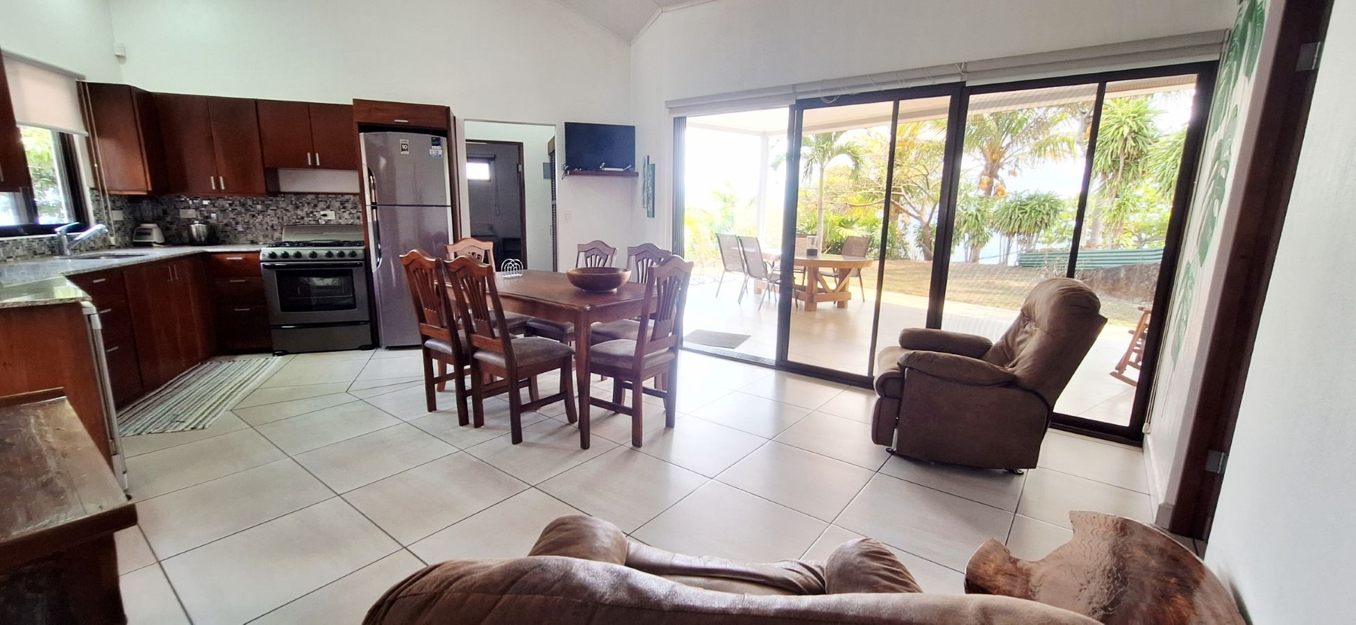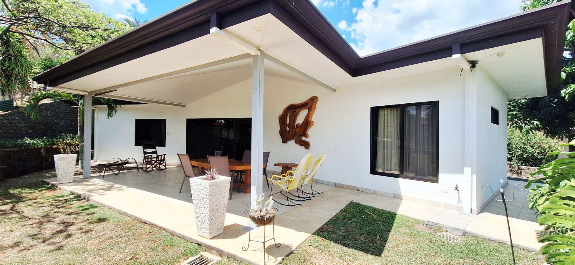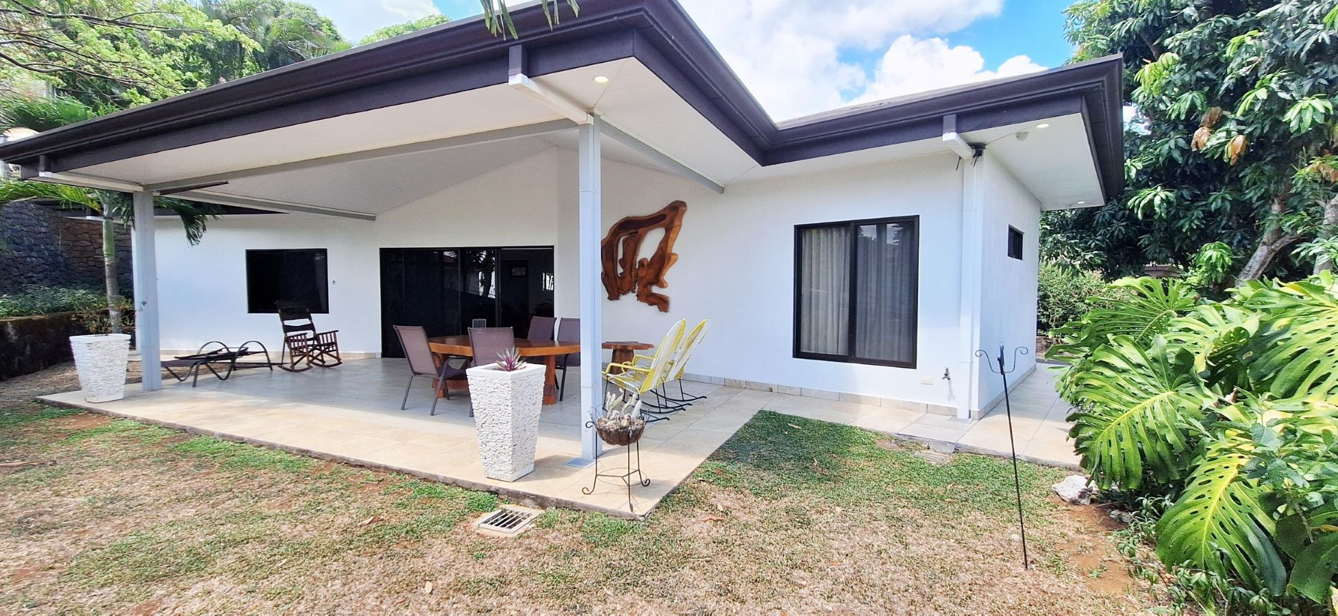 Outside, there is a separate laundry room with a washer and dryer, a covered carport, and a large storage bodega. Everything is set up for comfort and convenience. A nice-sized yard, not too much for maintenance, but just enough to make a nice tropical garden, and still space to install a small private pool or a jacuzzi.