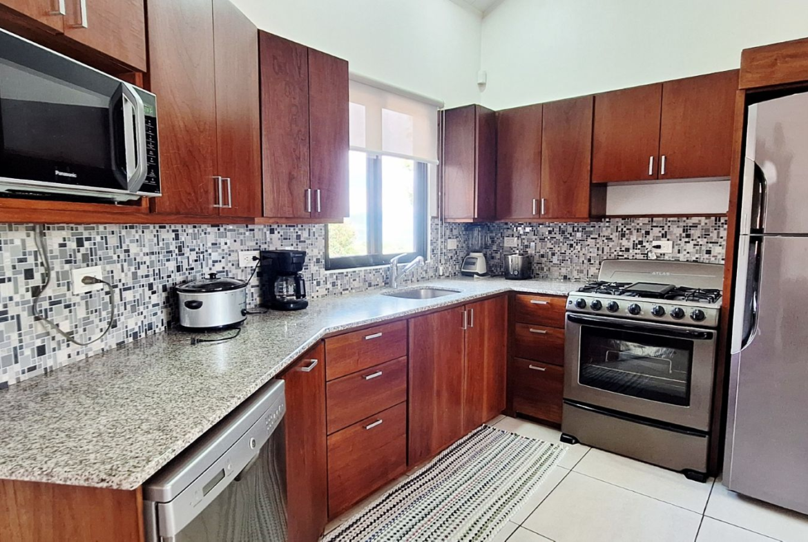 This charming 3-bedroom 2-bathroom home is fully furnished and move-in ready, featuring a well-equipped kitchen with all major appliances: dishwasher, stove, and refrigerator in place. There are 3 good-sized bedrooms, a master bedroom with an en-suite bathroom, and 2 guest rooms that share the second bathroom. Atenas is the best place in Costa Rica for outdoor living, so the spacious covered patio with peaceful mountain views is your extended living room, where you will spend most of your time. A great space for tranquil indoor-outdoor living, take in the fresh air while you enjoy your morning coffee, sunset dinners, or entertaining friends.