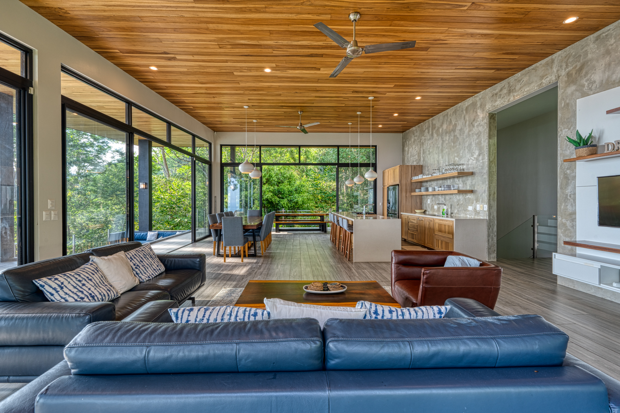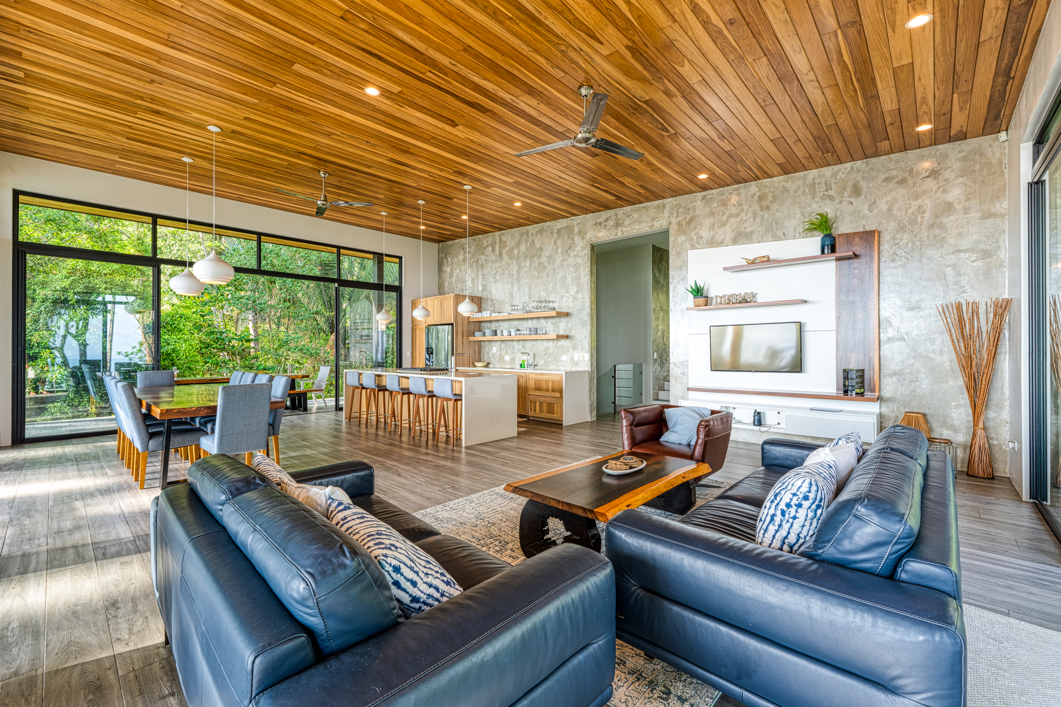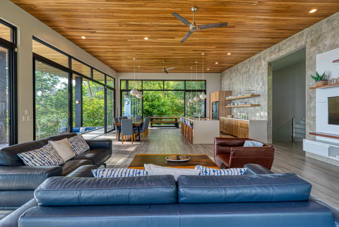 The house is a masterpiece of comfort and elegance. It features four expansive bedrooms, each with a private en-suite bathroom and an additional guest bathroom for convenience. The fully equipped kitchen is the heart of the home, perfect for casual and gourmet cooking. Outside, the private pool offers a serene escape, surrounded by the sounds and beauty of the Costa Rican landscape.