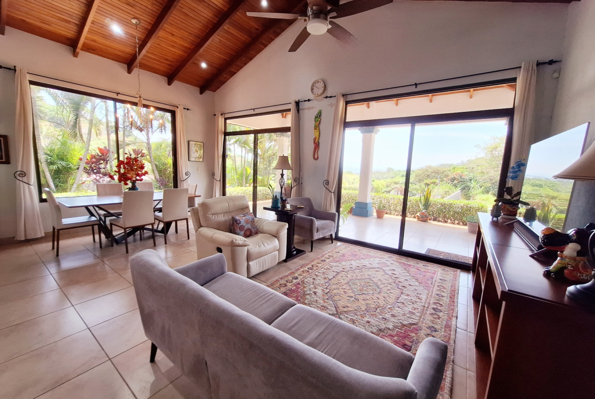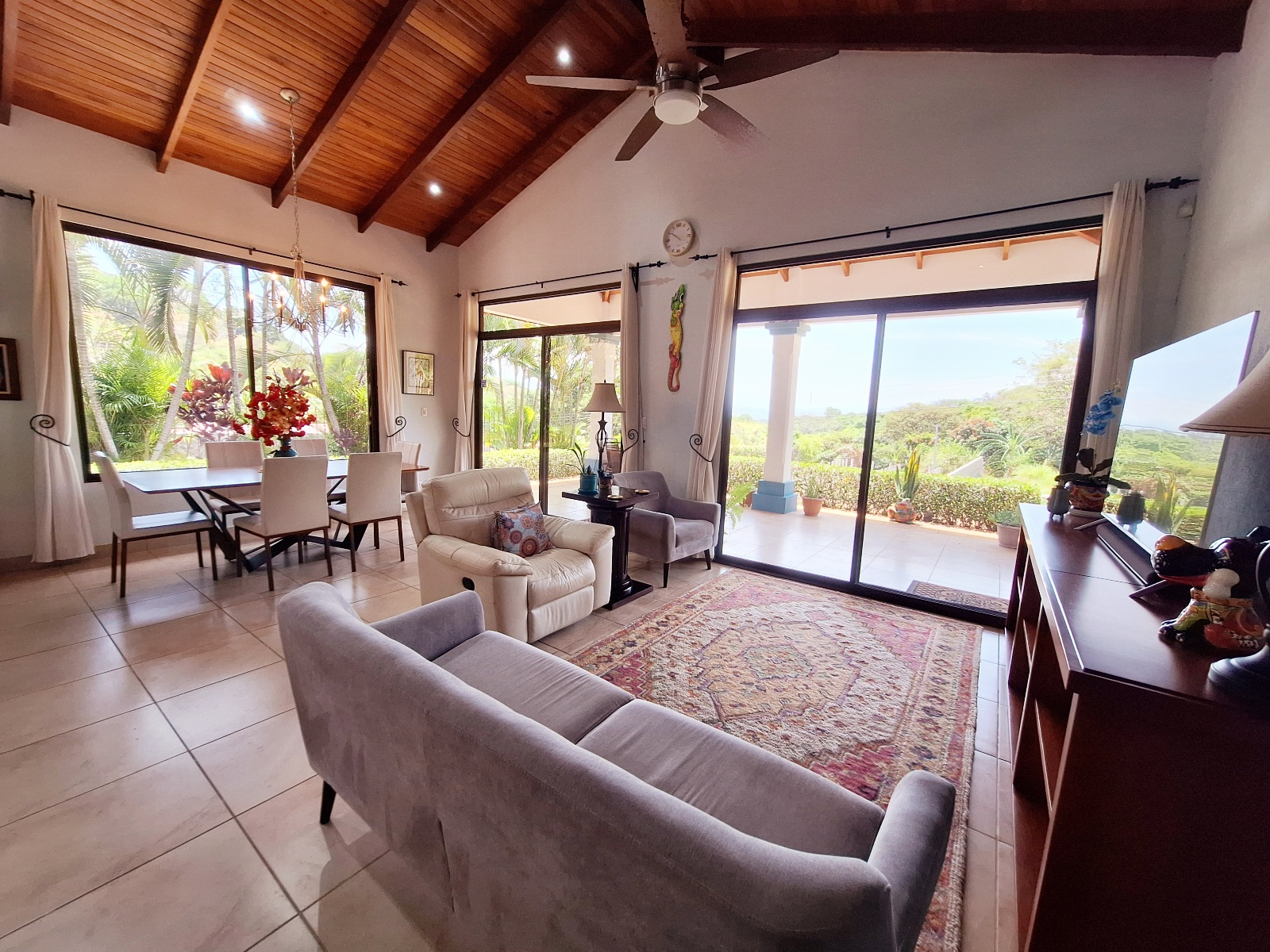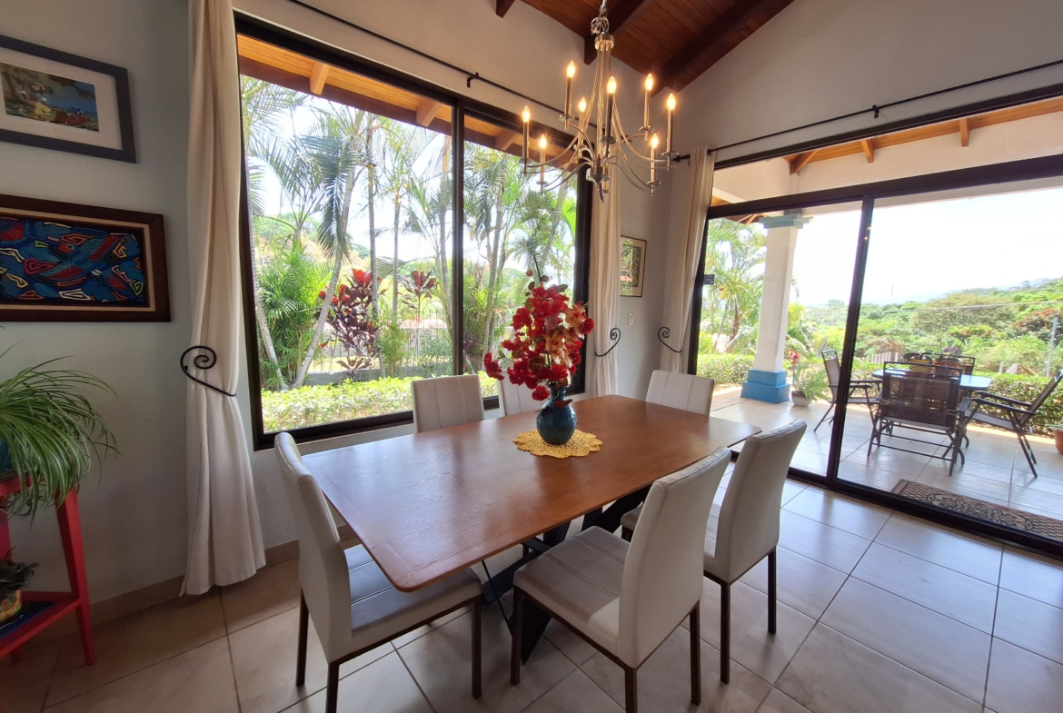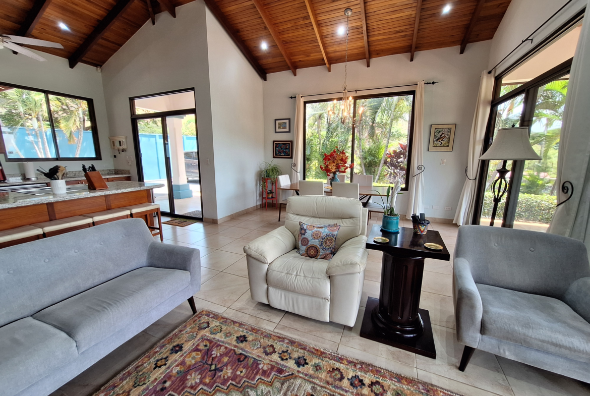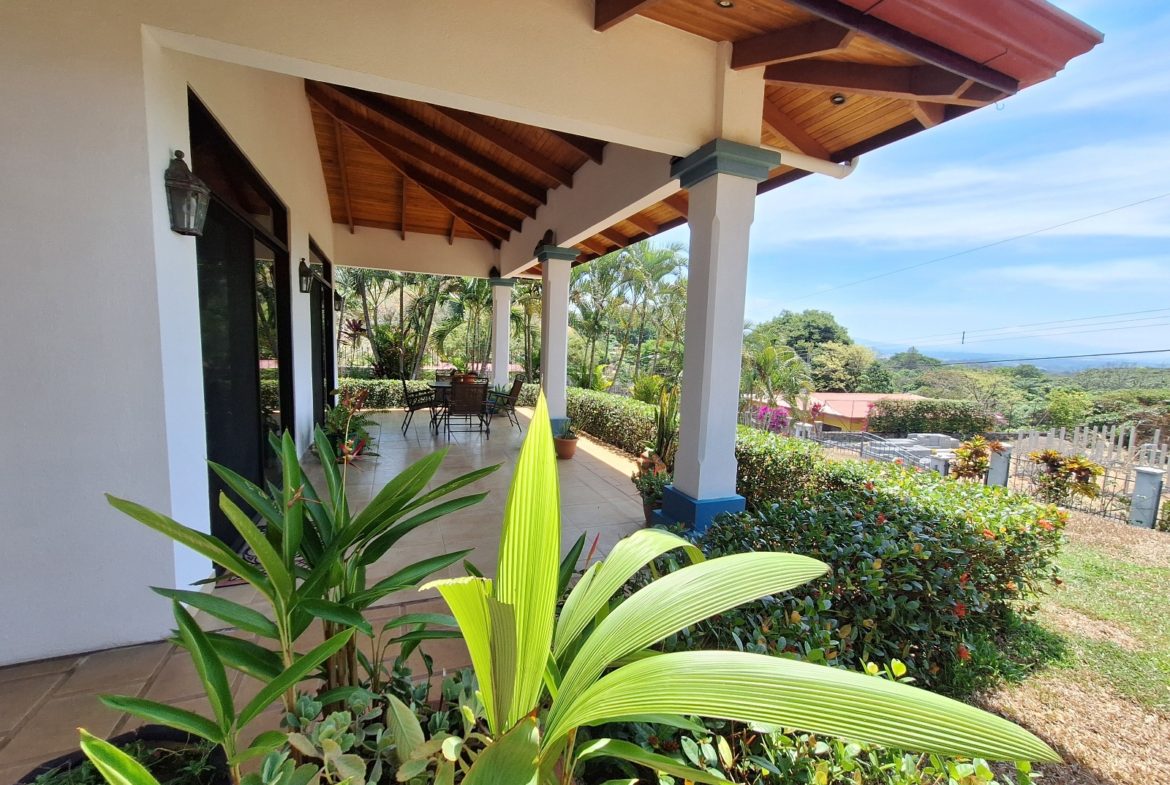 Nested in the lush green mountains of Atenas, you will find this attractive two-bedroom, two-bathroom luxury home. The high vaulted ceilings, large windows, and glass sliding doors create an airy and pleasant atmosphere in this extremely well-maintained home. The house measures 186 m2 (2002 sq ft) under roof and is tiled throughout.