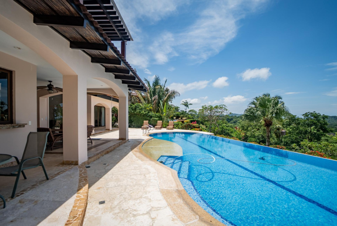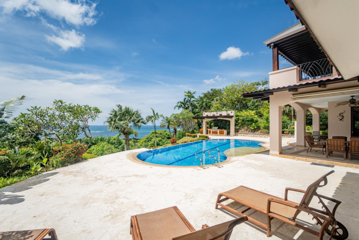 Elegant Playa Samara 5 BR Luxury Ocean View Villa for sale. Set in the exclusive gated community of Sámara Reefs, is a 5-bedroom, 5-bath luxury villa designed for comfort, elegance, and unforgettable ocean views. Just a short walk from Playa Sámara, this 5,000 sq. ft. home offers the perfect retreat for families or groups seeking space, privacy, and seamless indoor-outdoor living.