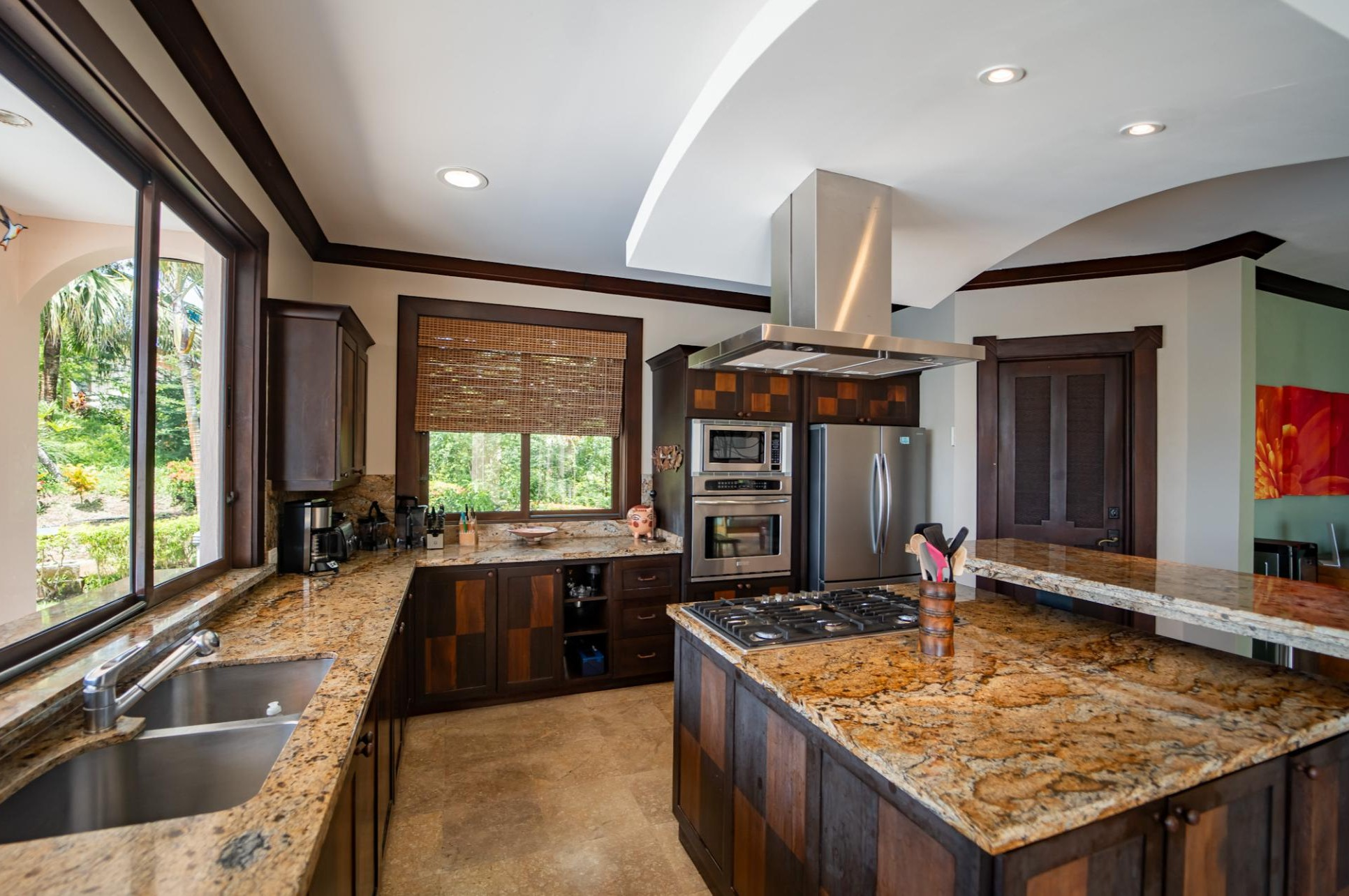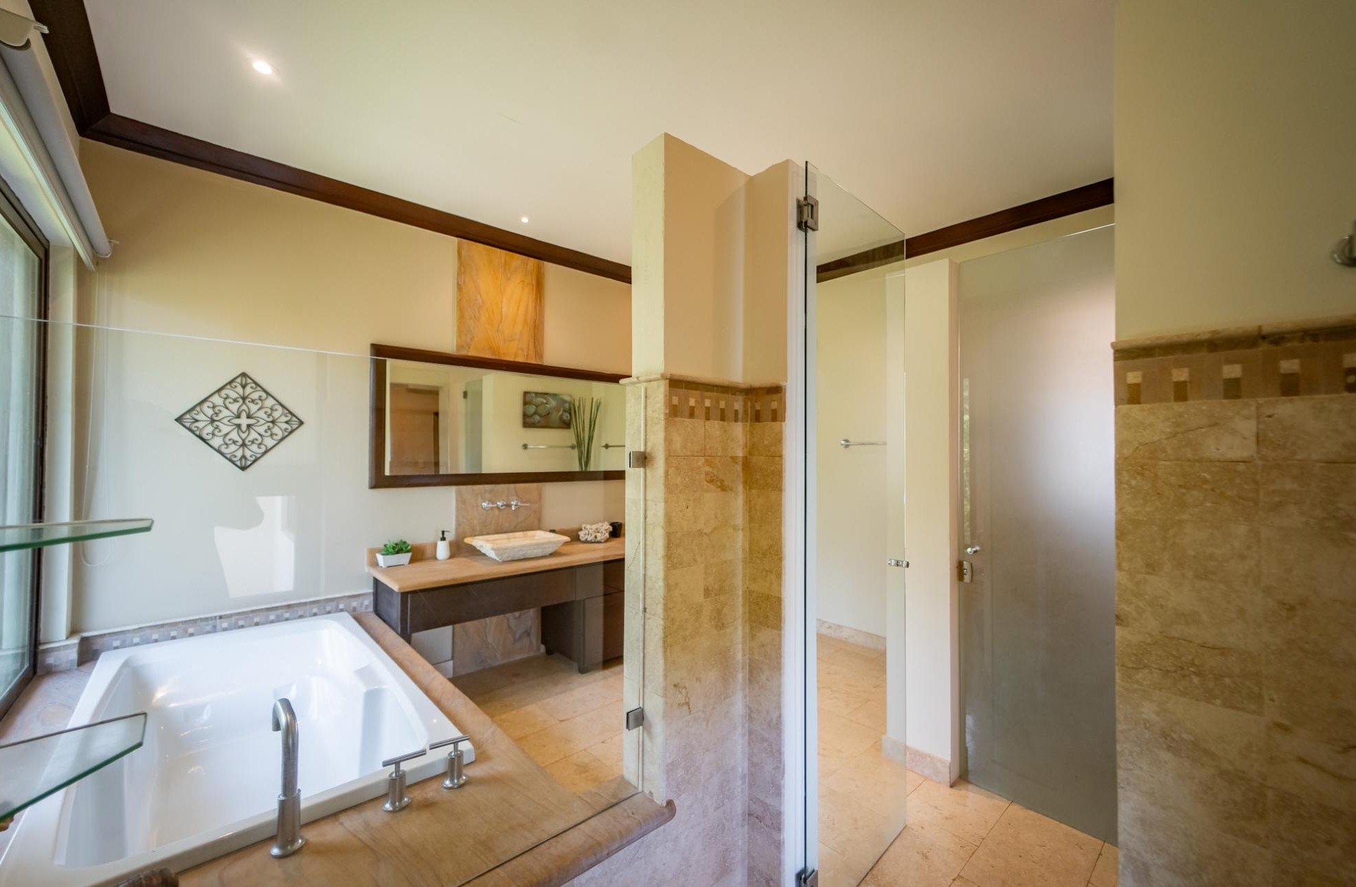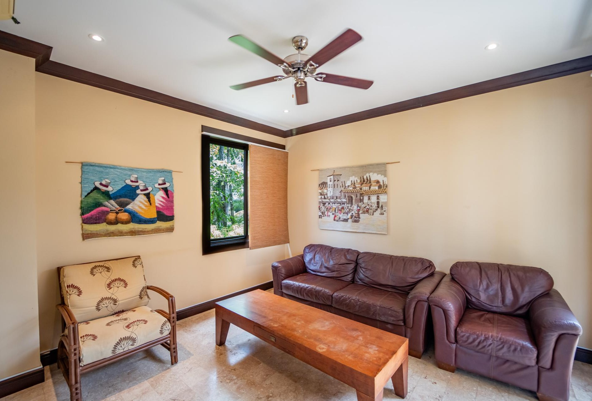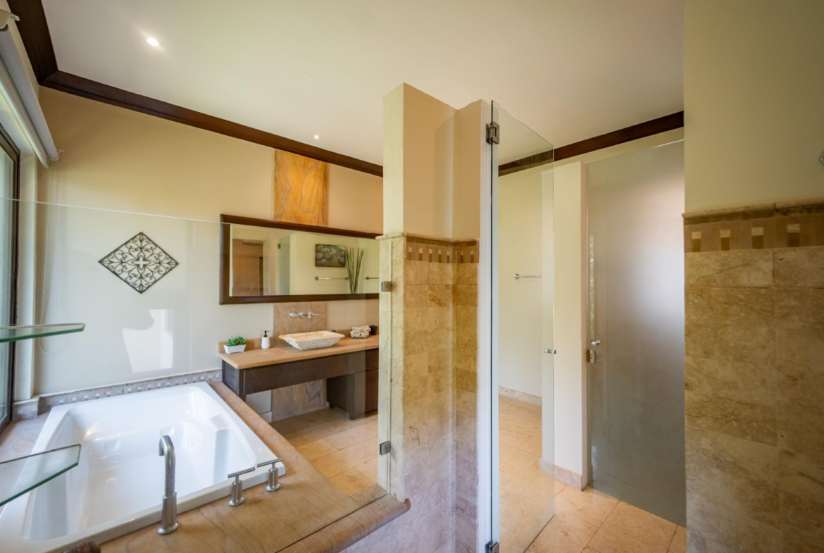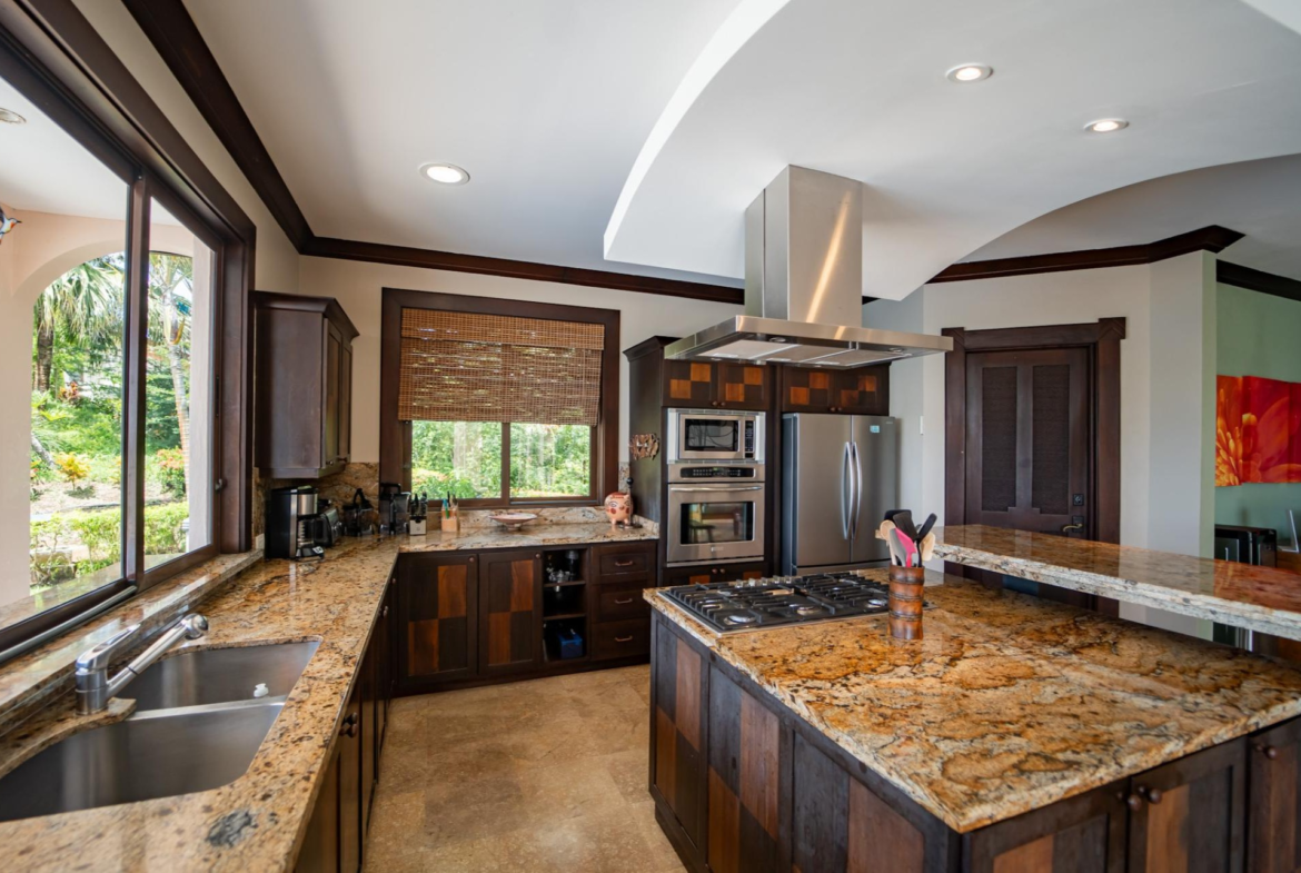 High-end finishes—local hardwoods, polished Colombian limestone floors on the lower level, and high-quality laminate wood floors in the upper bedrooms—blend natural textures with refined style, creating a relaxed tropical atmosphere.