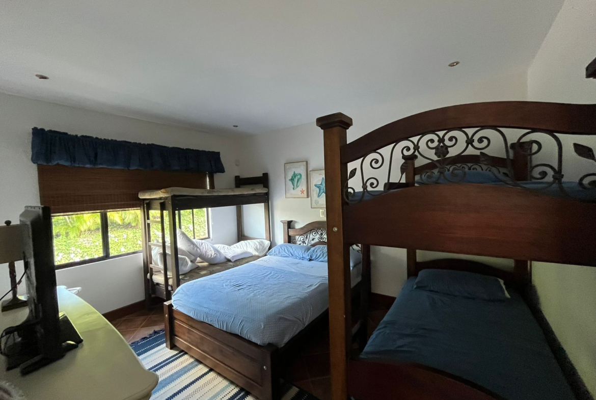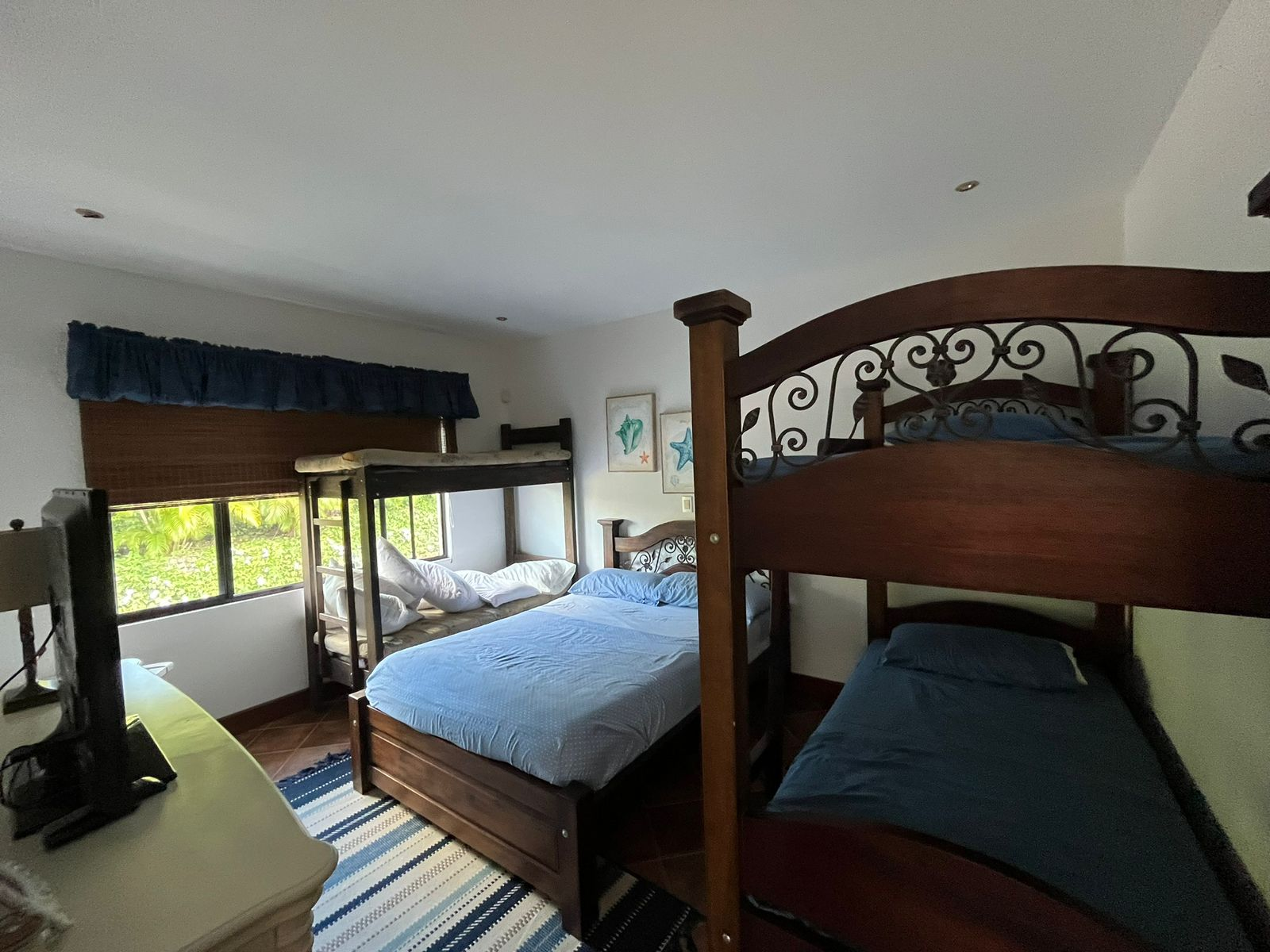 The property is equipped with a generator, a water well, underground utilities, air conditioning in the bedrooms, a storage room, a laundry room, and a solar water heater.