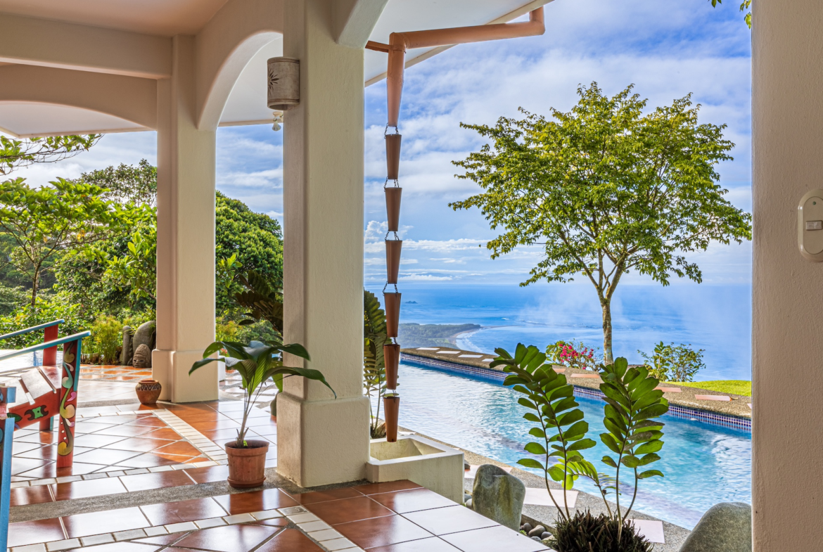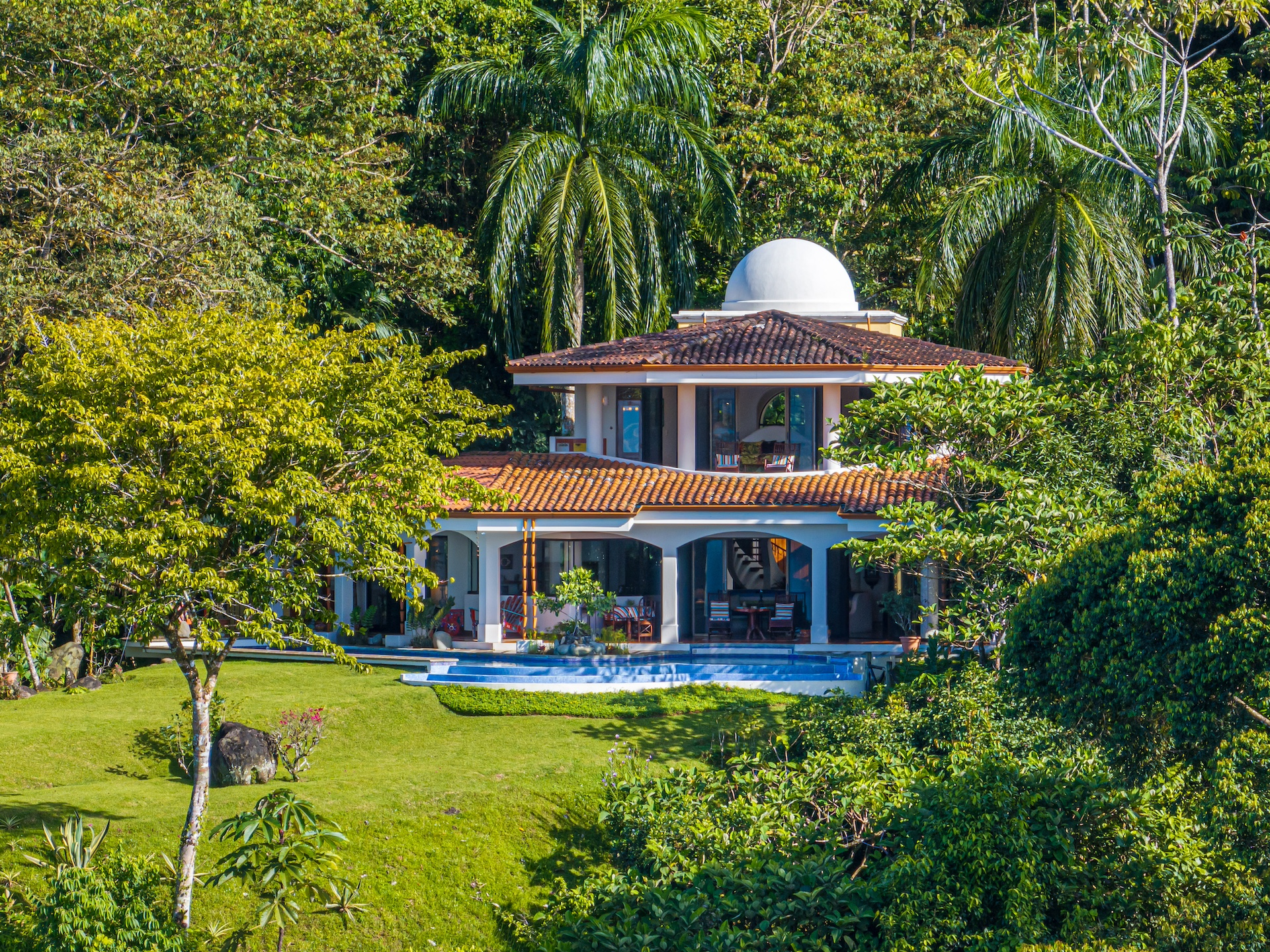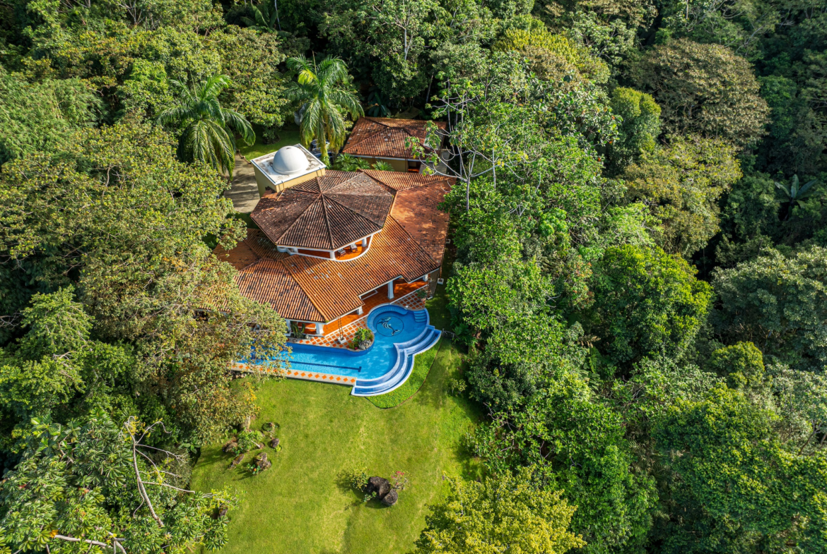 Exquisite 3 BR Estate with Stunning Vistas and Whale’s Tail Views for sale. Nestled within Costa Verde Estates, the esteemed gated enclave along the southern Pacific coast, this extraordinary estate spans nearly 8 acres of breathtaking natural beauty, featuring lush jungles and cascading waterfalls. The discerning original owners meticulously selected this prime property for its unparalleled panoramic vistas, substantial land area, and exceptional degree of privacy that few can rival.