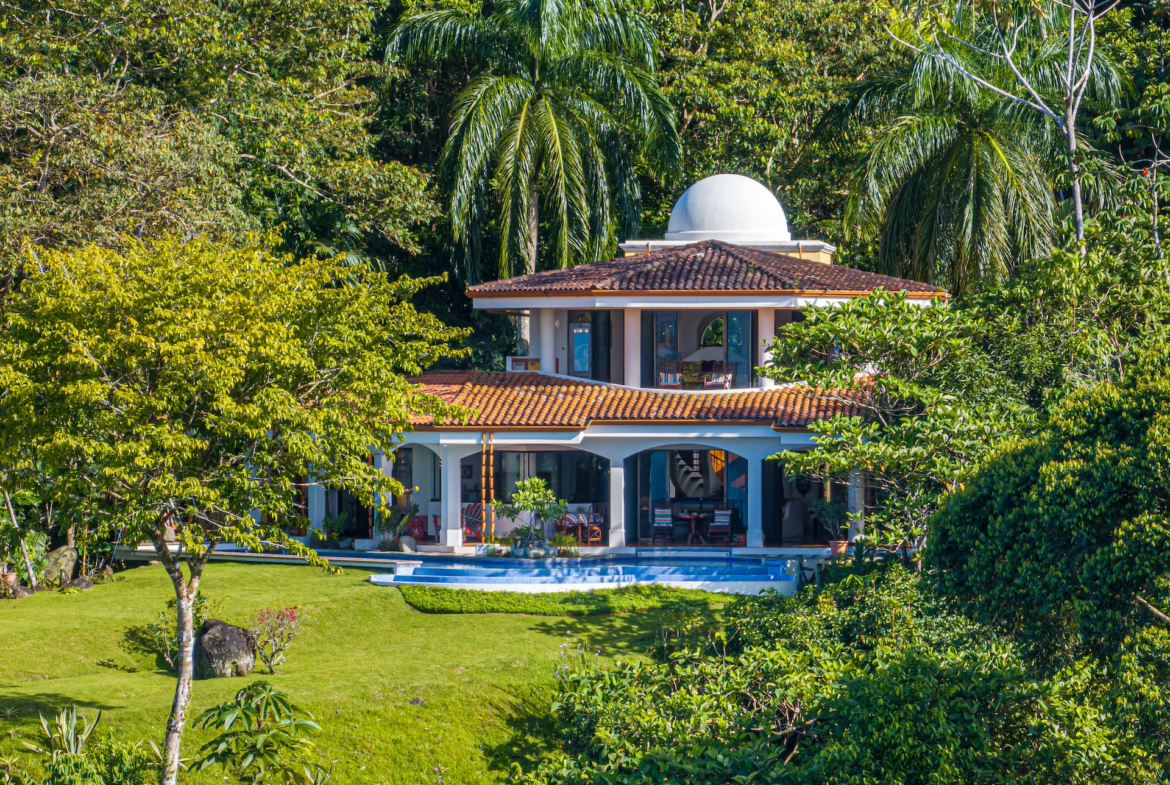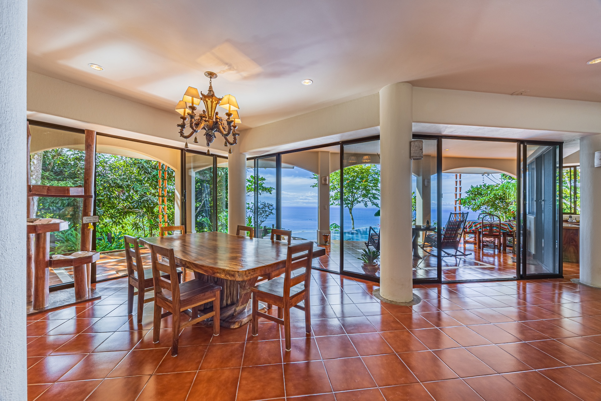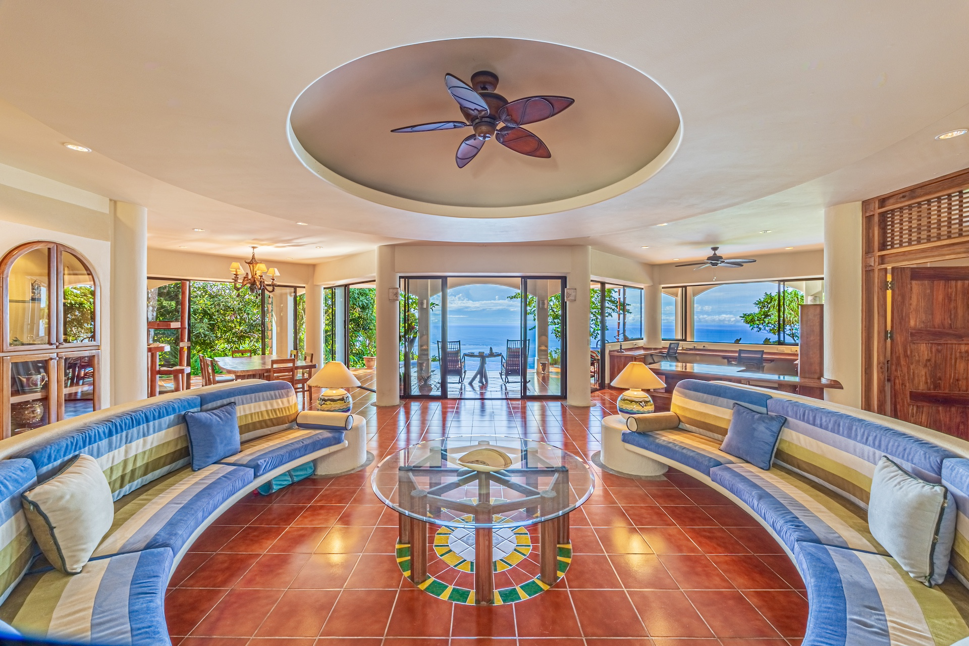 Exquisite 3 BR Estate with Stunning Vistas and Whale’s Tail Views for sale. Nestled within Costa Verde Estates, the esteemed gated enclave along the southern Pacific coast, this extraordinary estate spans nearly 8 acres of breathtaking natural beauty, featuring lush jungles and cascading waterfalls. The discerning original owners meticulously selected this prime property for its unparalleled panoramic vistas, substantial land area, and exceptional degree of privacy that few can rival.