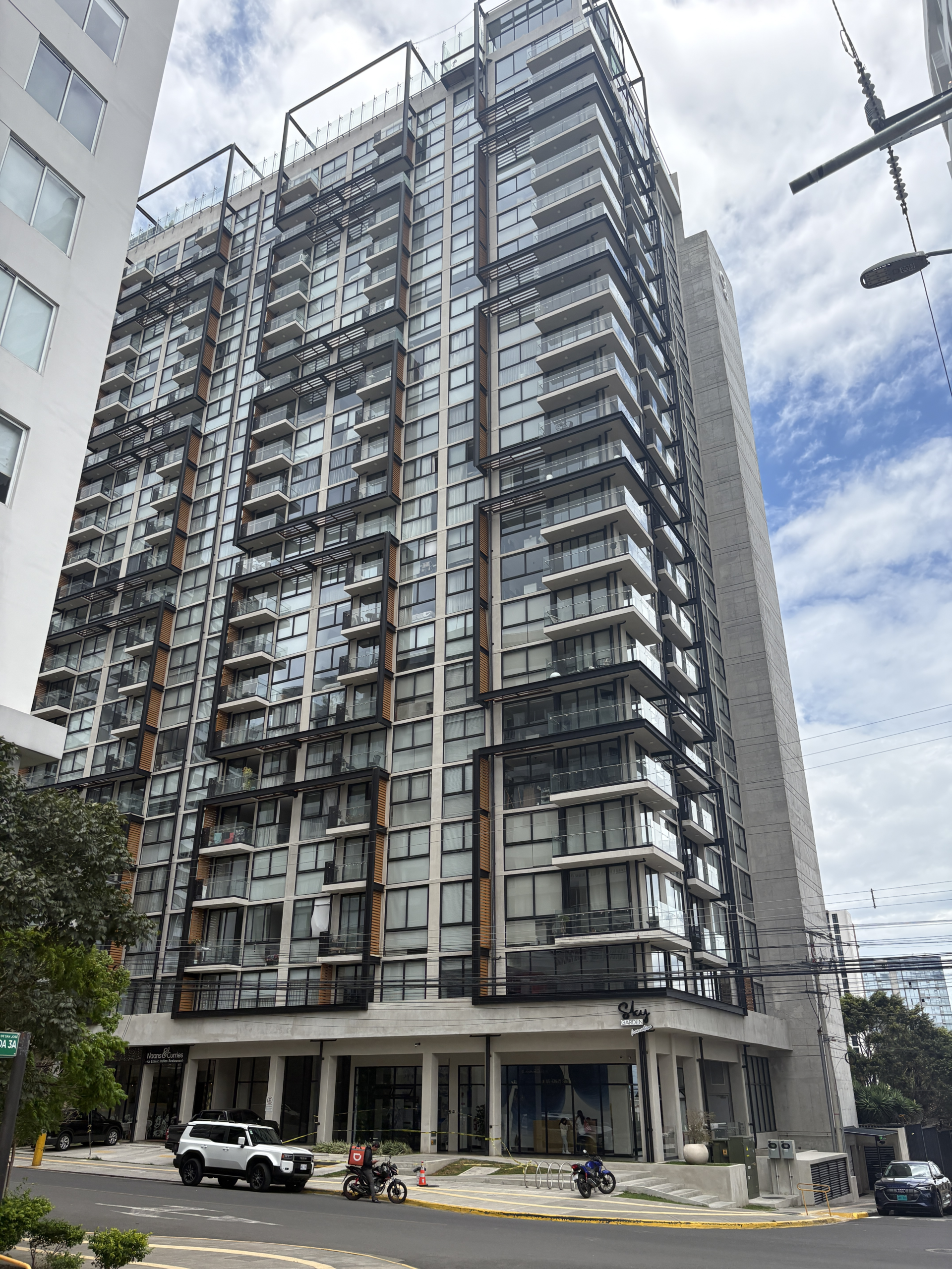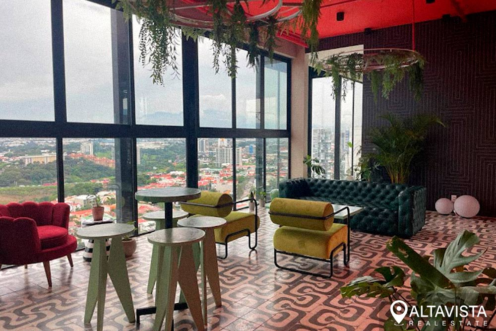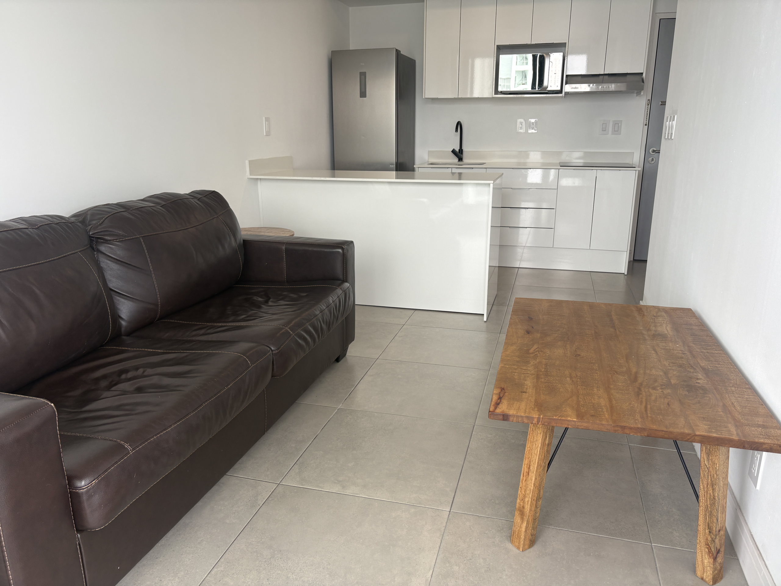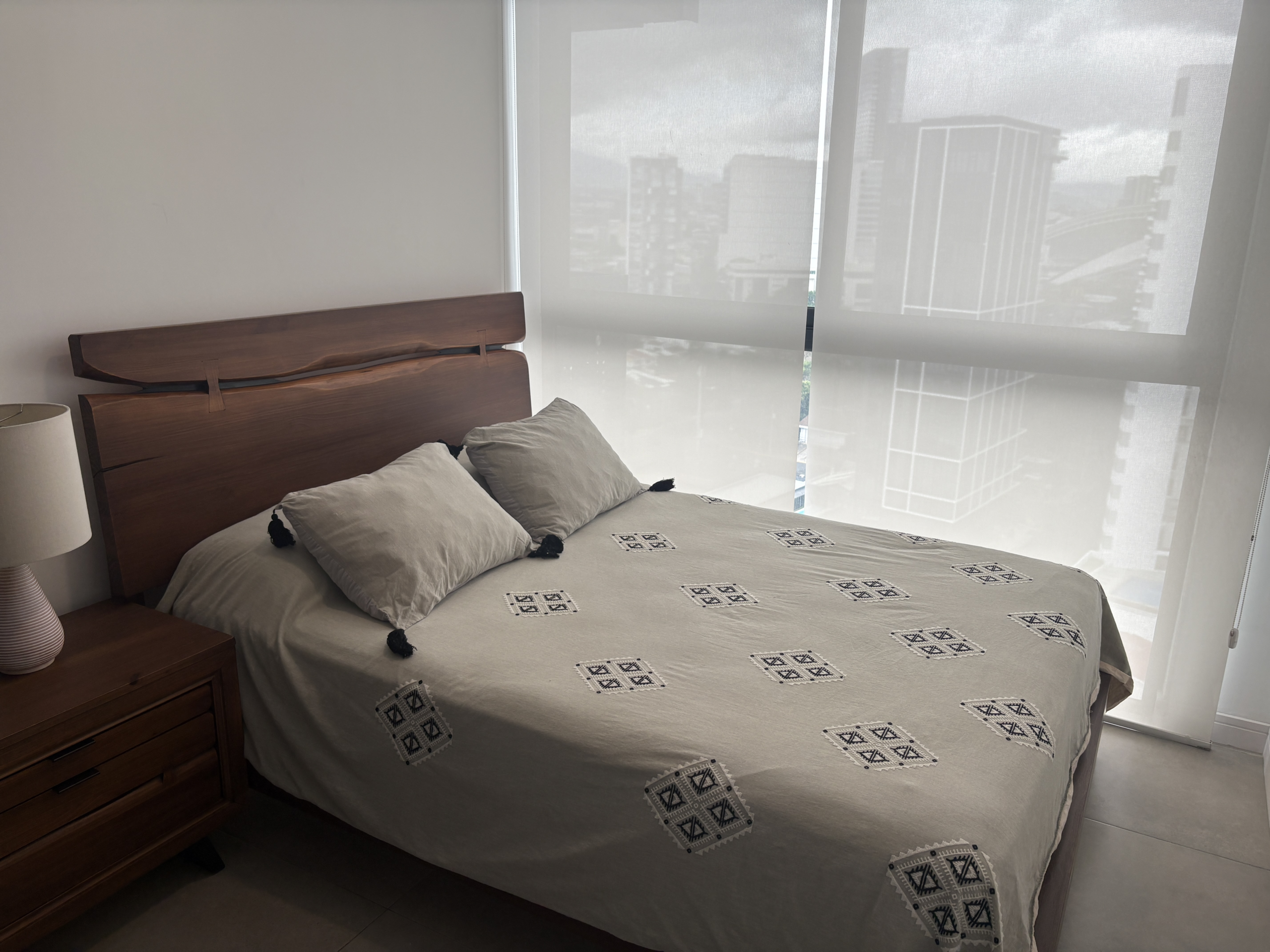 This turnkey residence features a bright, open-concept living and dining area, complemented by floor-to-ceiling windows that frame panoramic views of San José and the surrounding mountains. The private balcony is ideal for enjoying sunsets high above the city.
