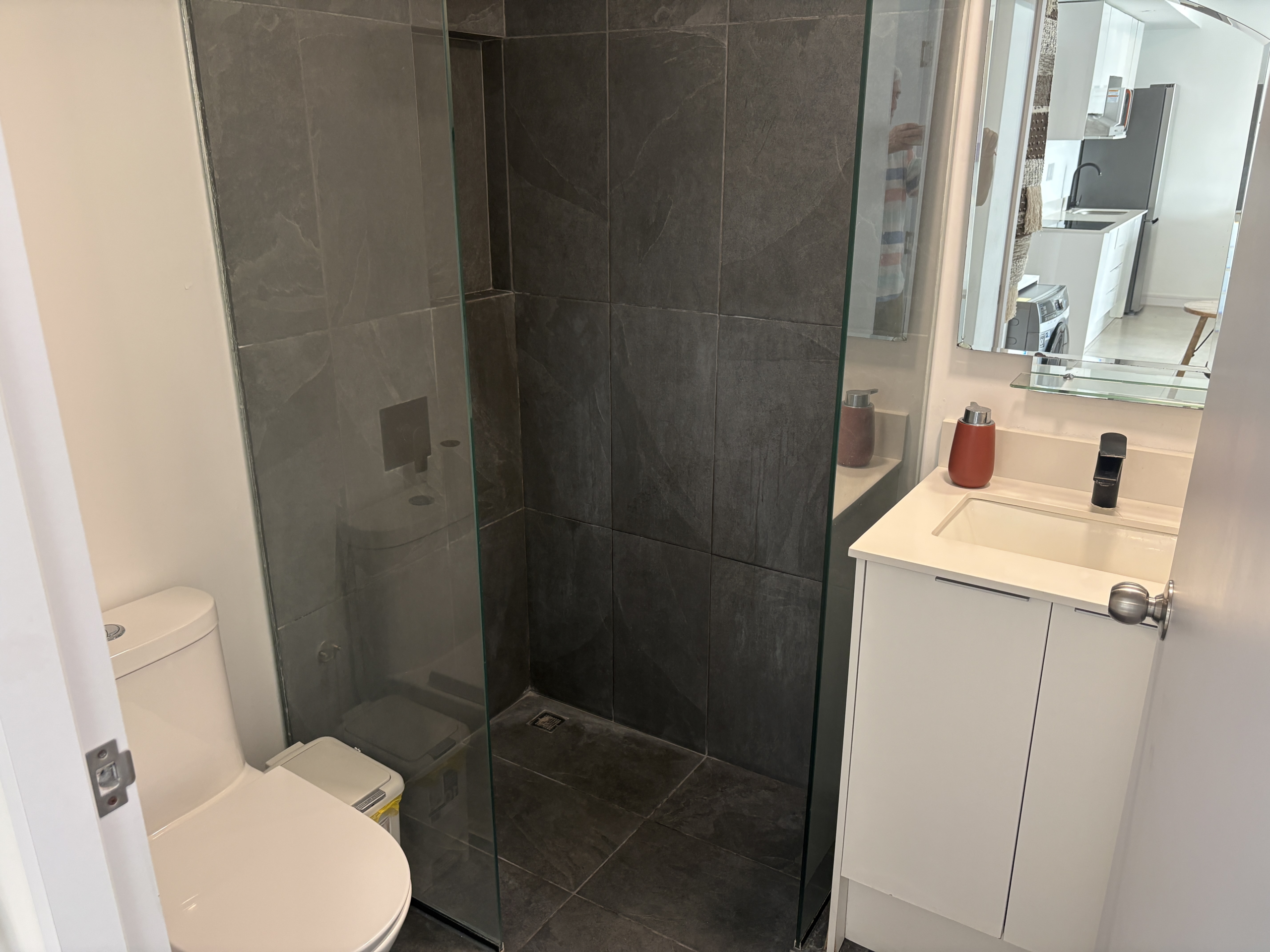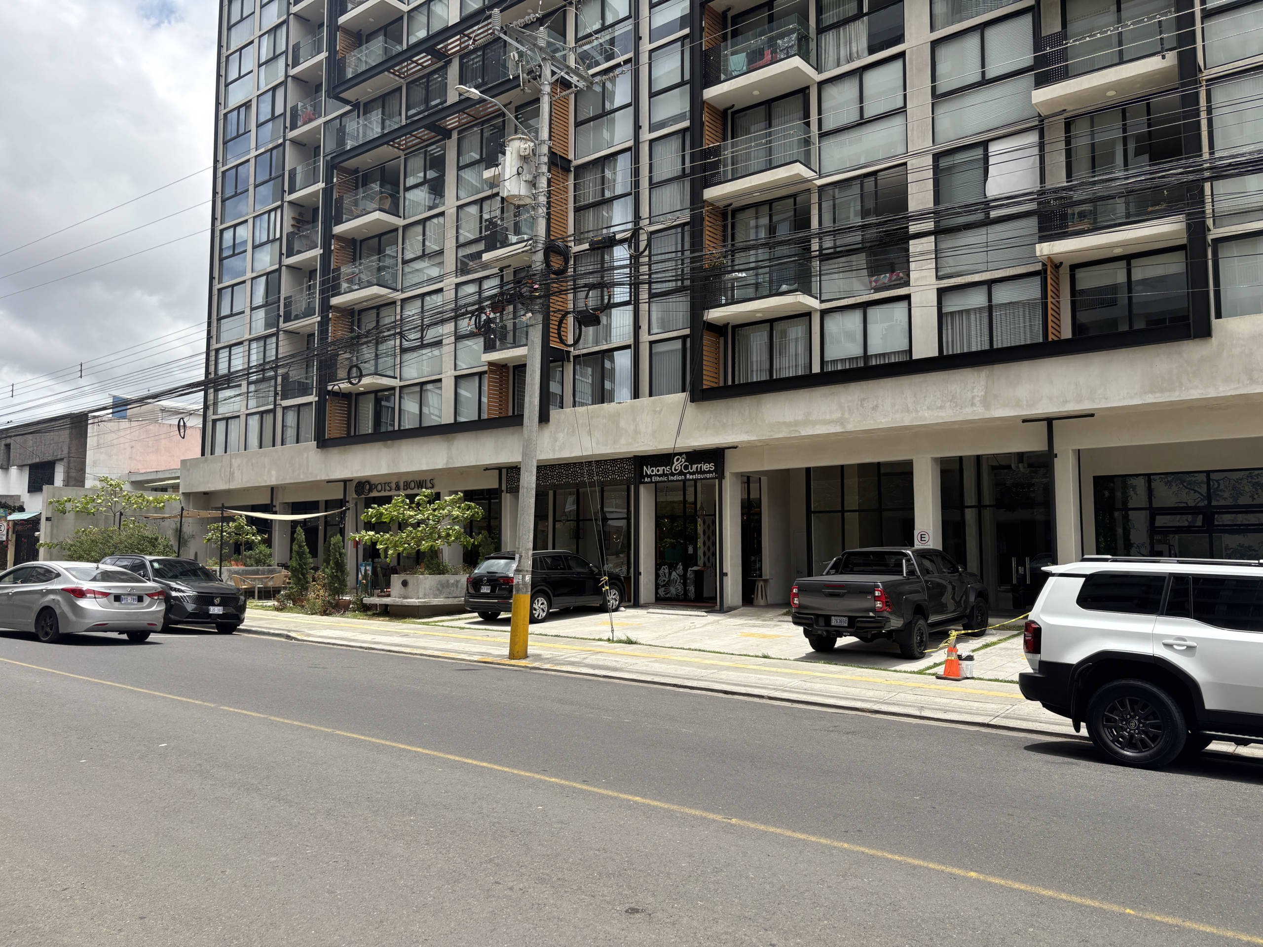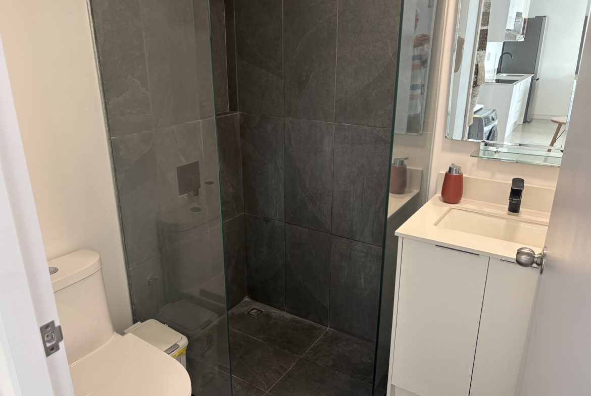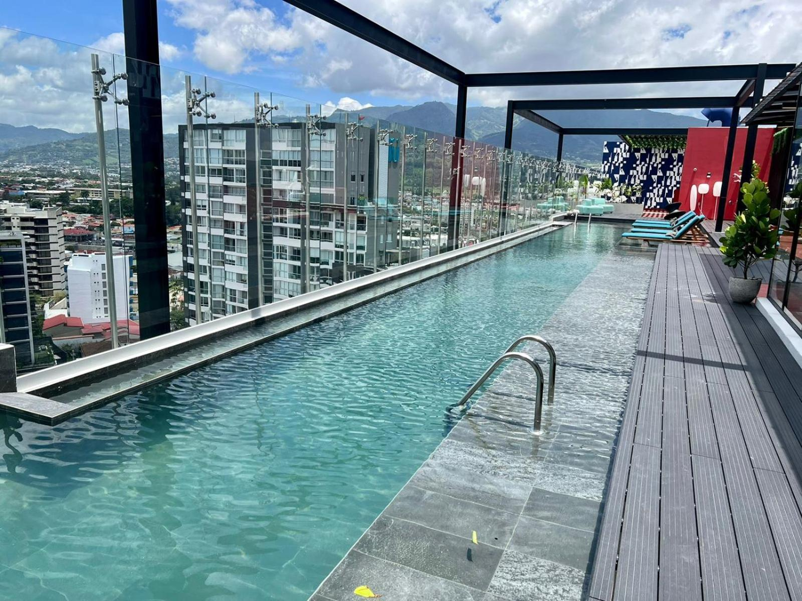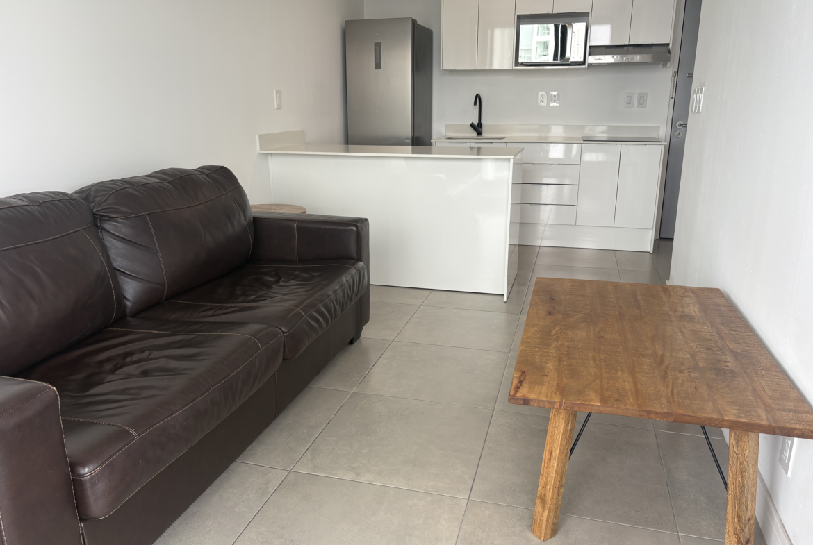 This turnkey residence features a bright, open-concept living and dining area, complemented by floor-to-ceiling windows that frame panoramic views of San José and the surrounding mountains. The private balcony is ideal for enjoying sunsets high above the city.