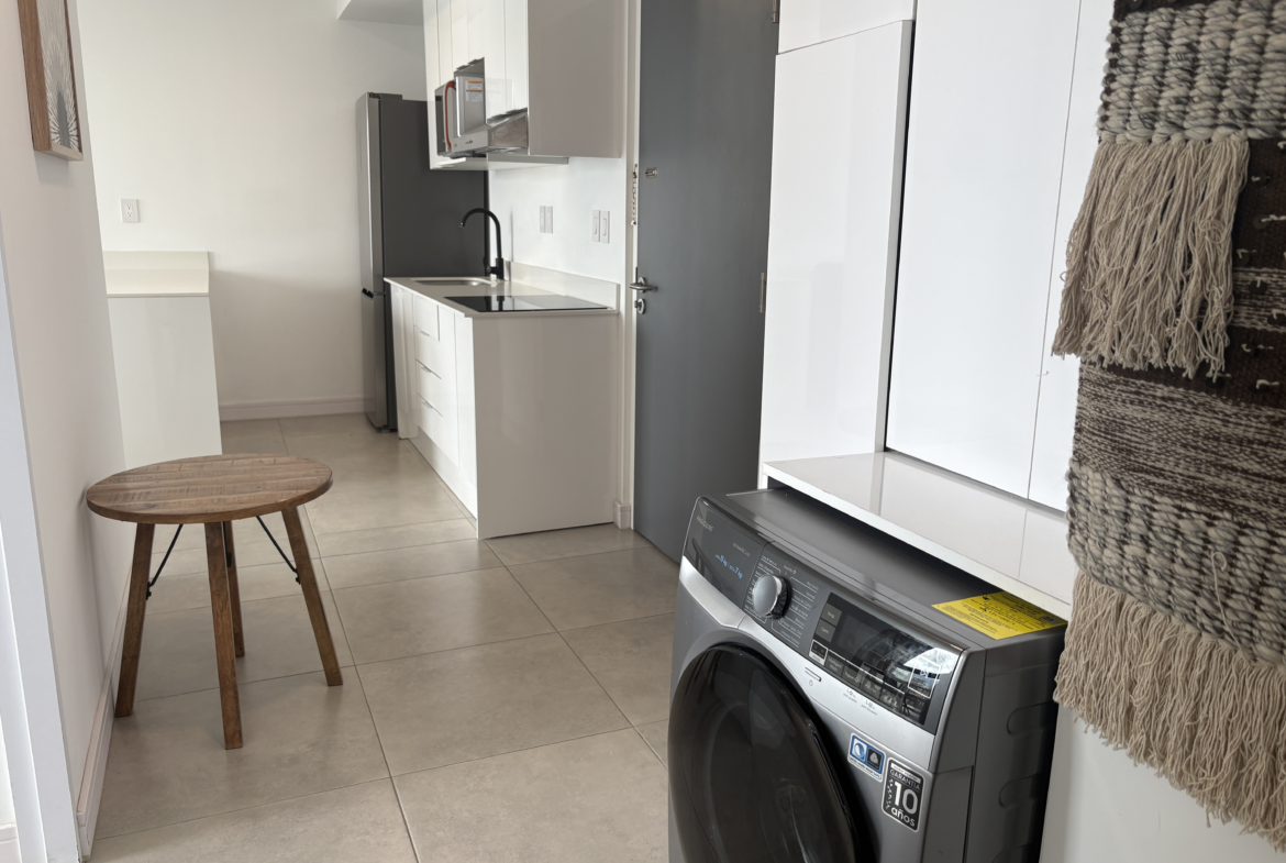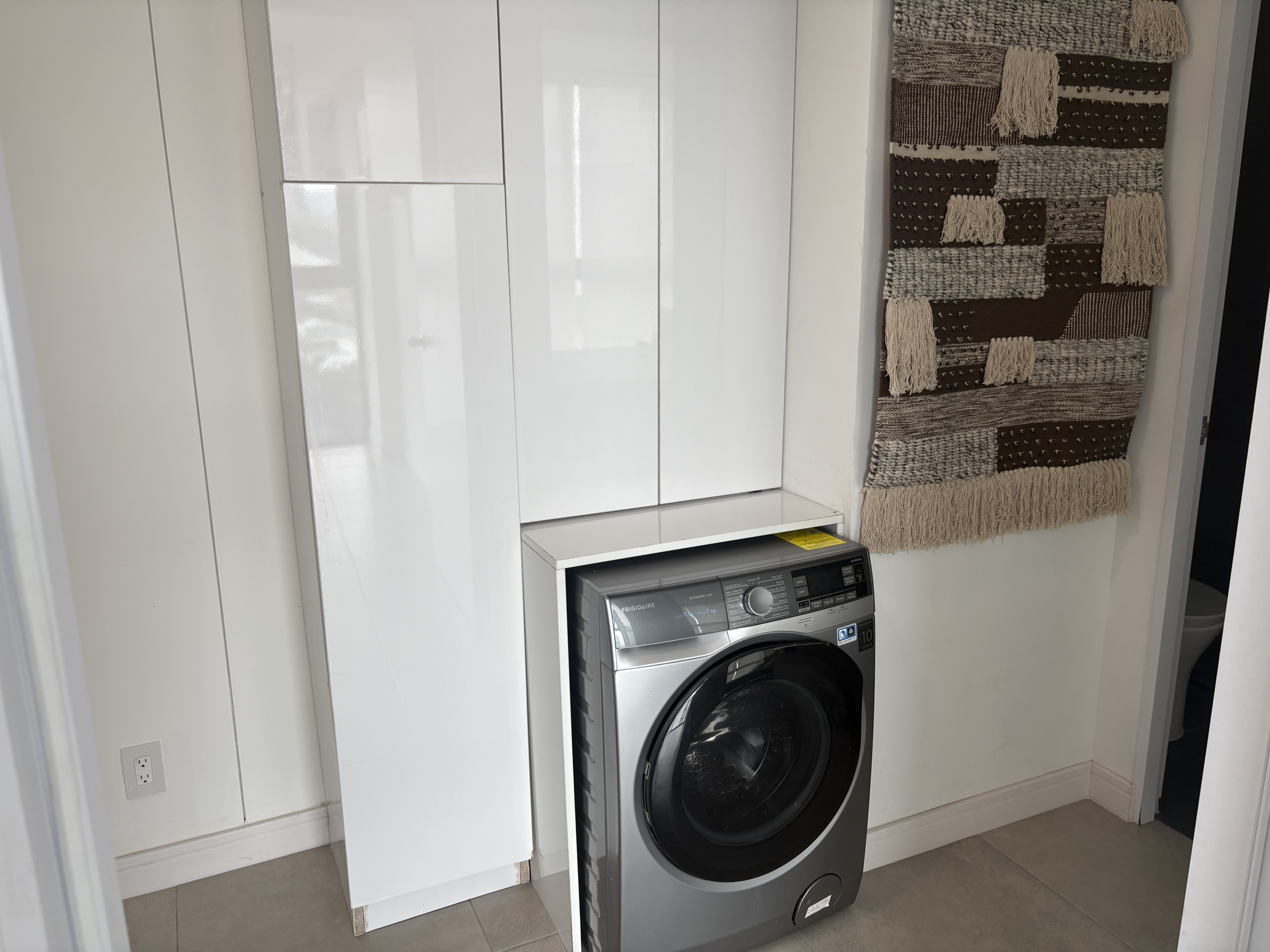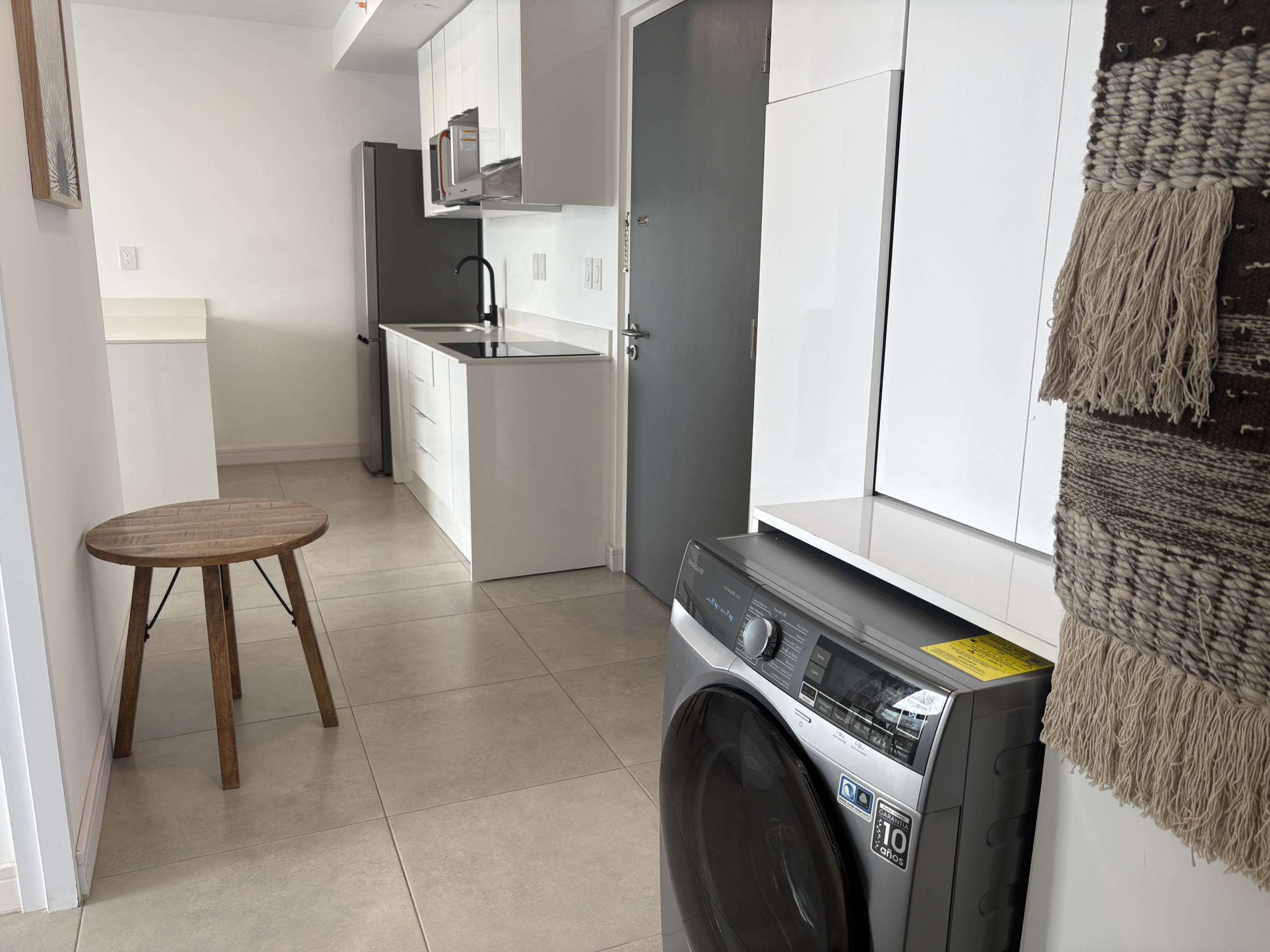 The fully equipped kitchen boasts contemporary finishes and high-quality appliances, making it ideal for both everyday living and entertaining. Both bedrooms are tastefully furnished, with the primary bedroom offering ample closet space and a serene ambiance. The unit also includes air conditioning, high-speed internet, and an in-unit washer and dryer for maximum convenience.