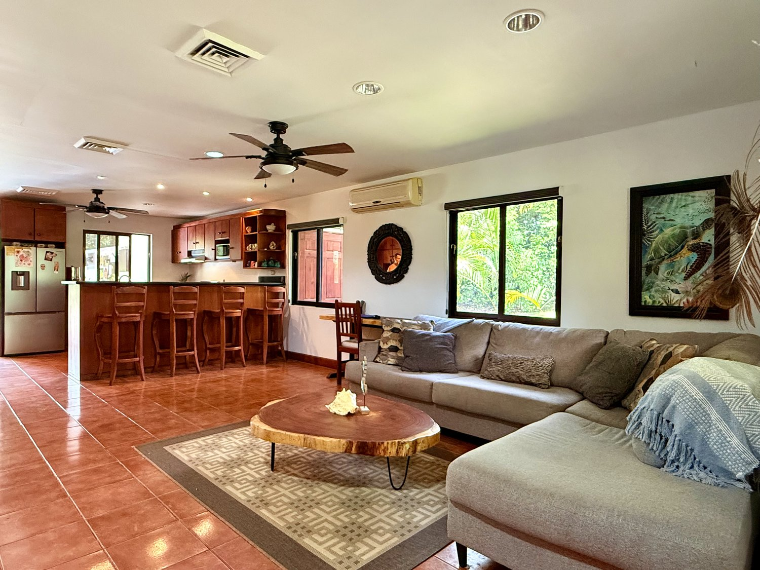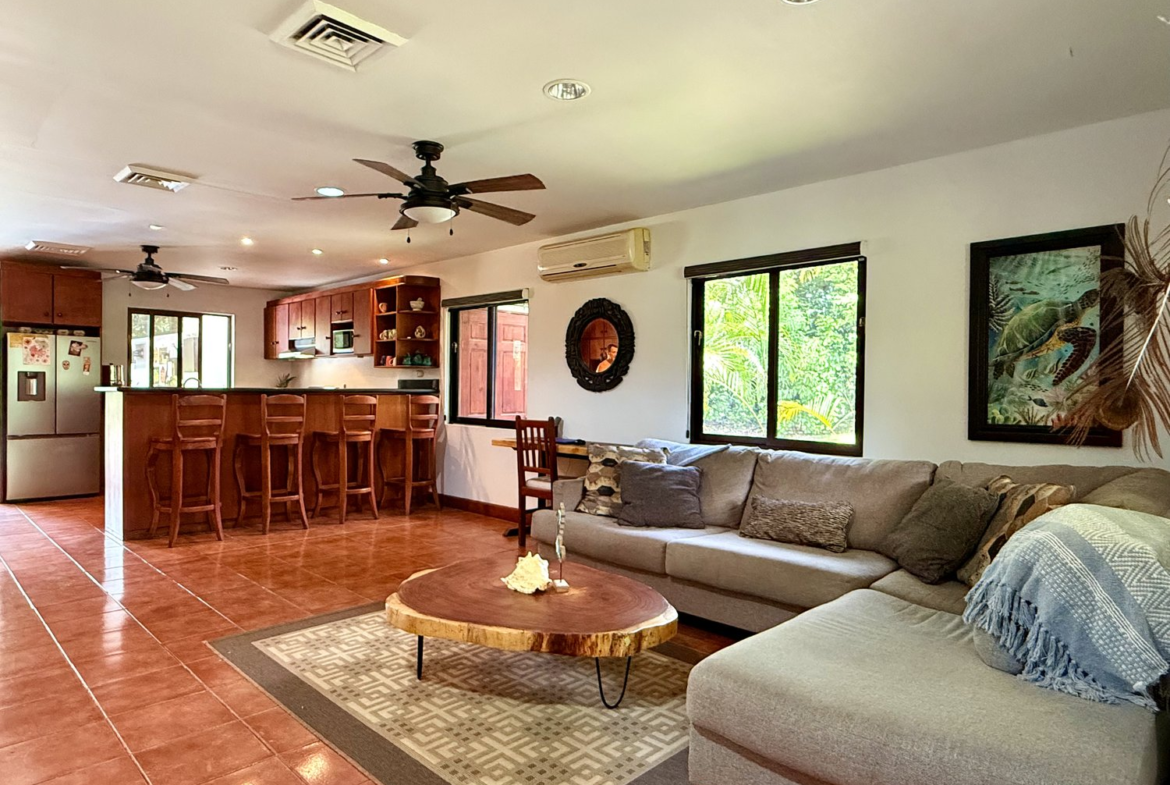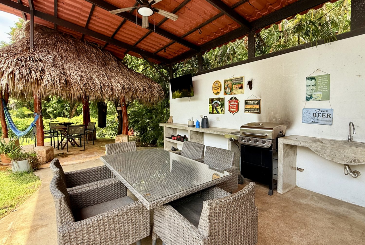 Furnished 3 BR Los Delfines Home Villa 519, 500 meters from the beach for sale. This home embraces the “Pura Vida” lifestyle, which translates to “pure life,” Pura Vida is more than just a phrase – it’s a way of living that embodies Costa Rica’s laid-back and welcoming culture. This home is a blend of traditional Costa Rican style with modern features that add today’s comforts, which we are all accustomed to in a newer home.