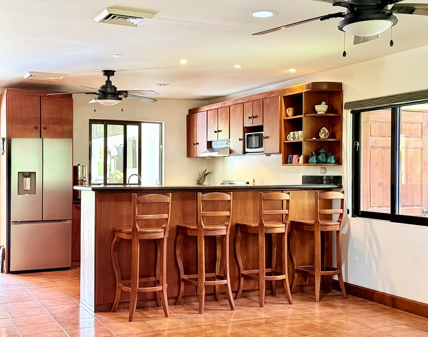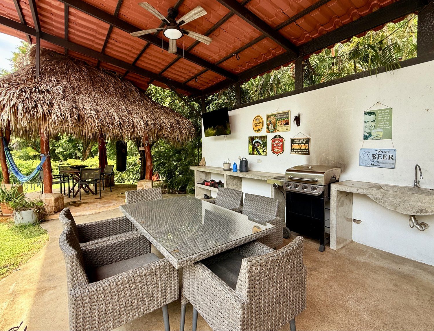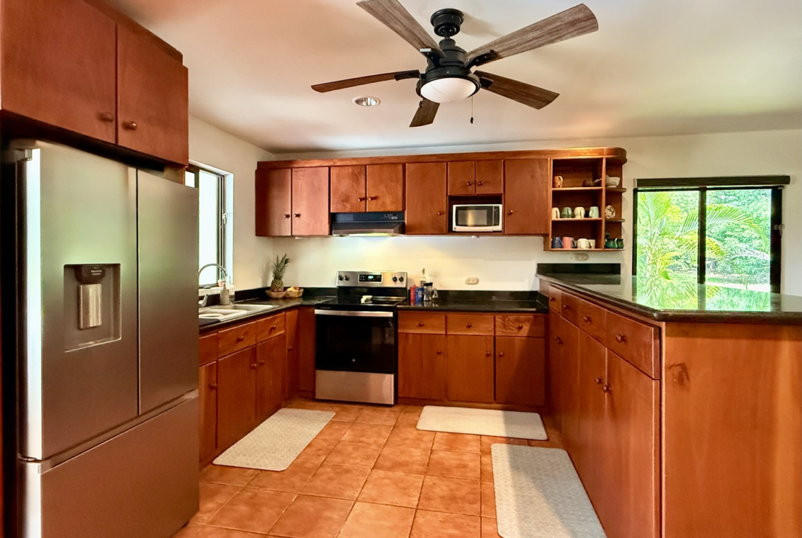 - Recently constructed rancho with high ceilings, dining area, wet bar, bbq, concrete kitchen counters, fridge, and plenty of storage space.