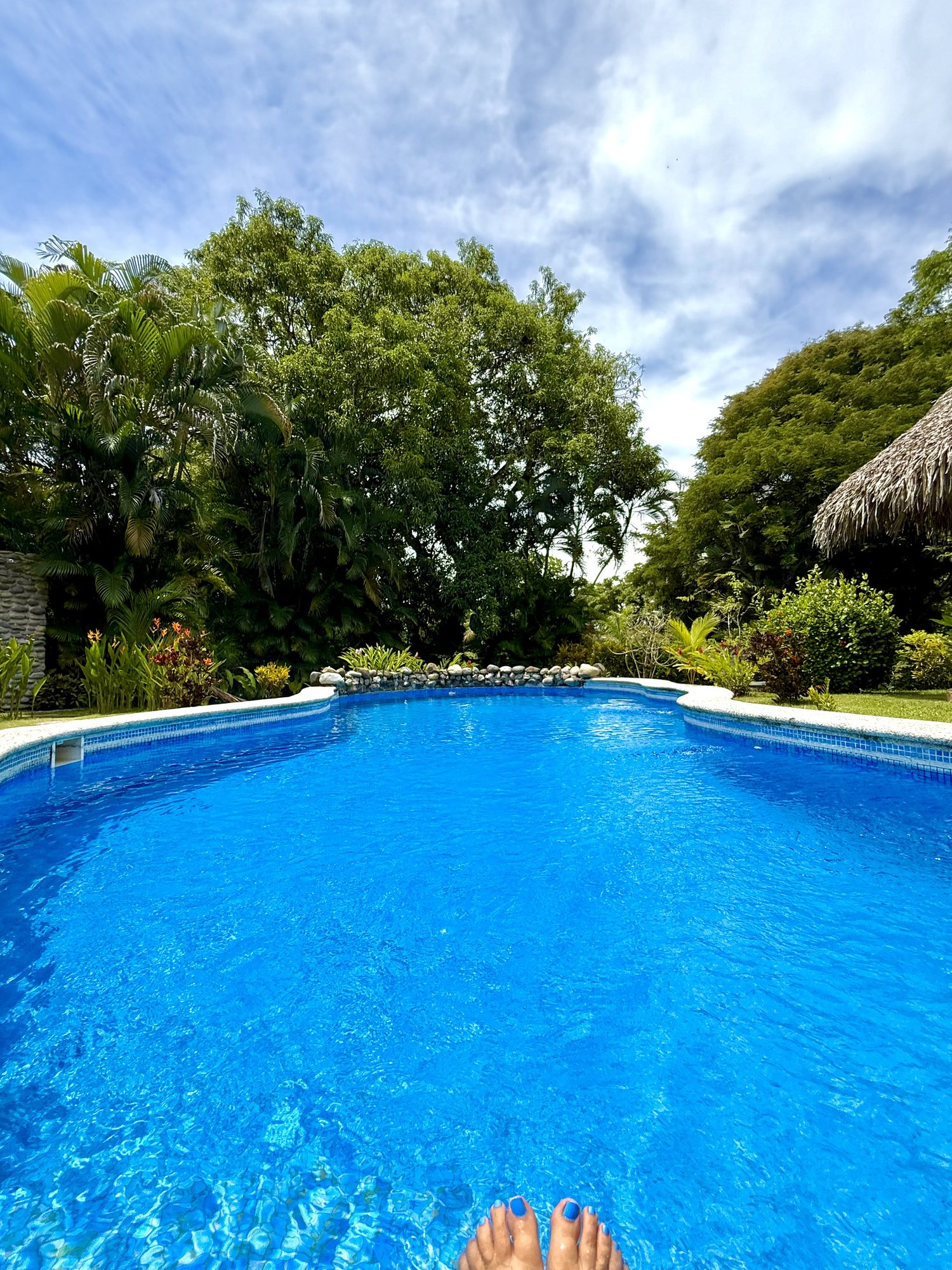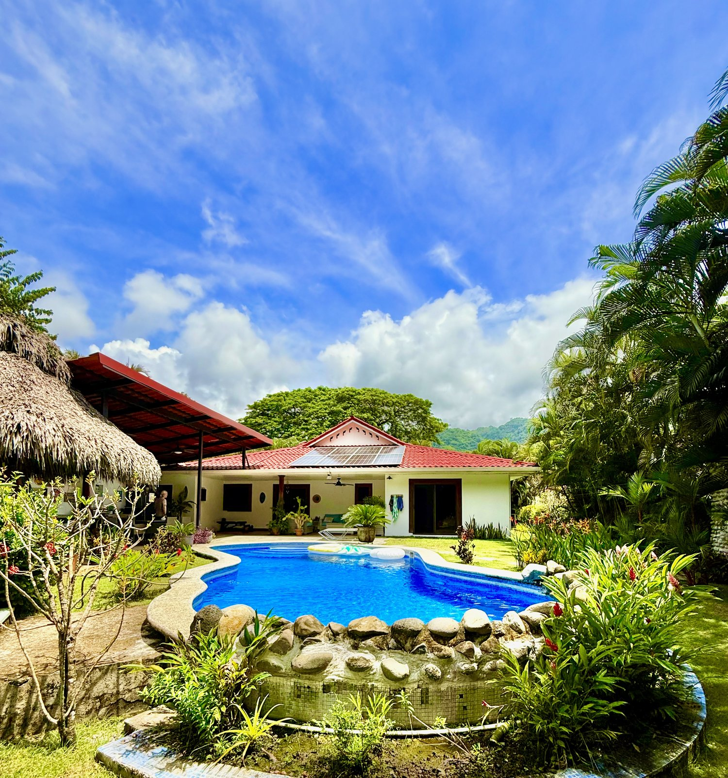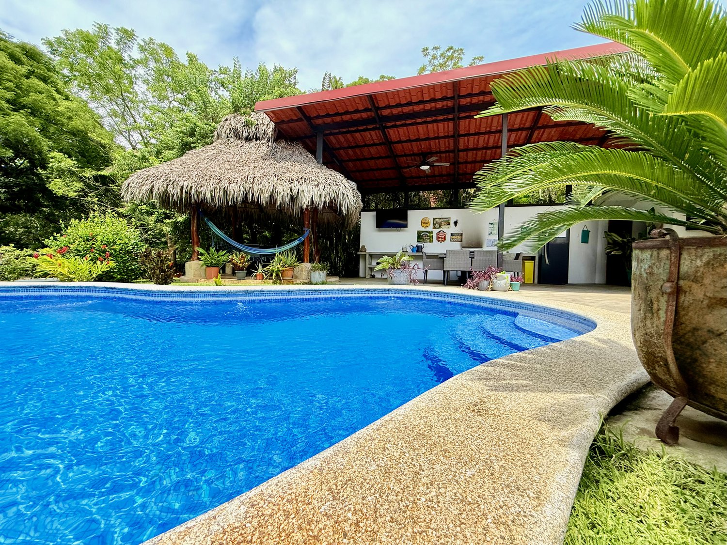 - The pool is very large and has recently been serviced and upgraded with a rock and plant feature at one end.