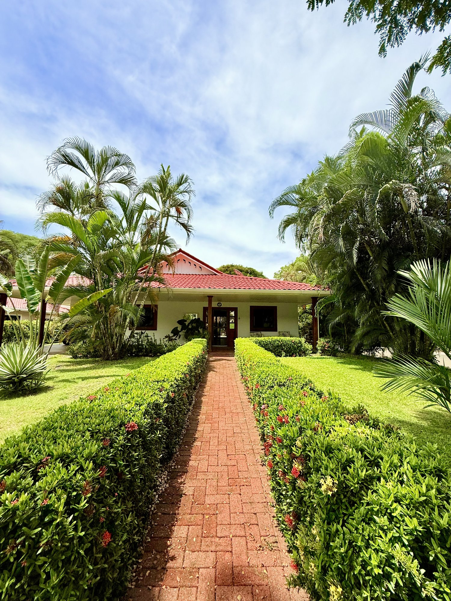 The property has lots of mature tropical plants, and trees.