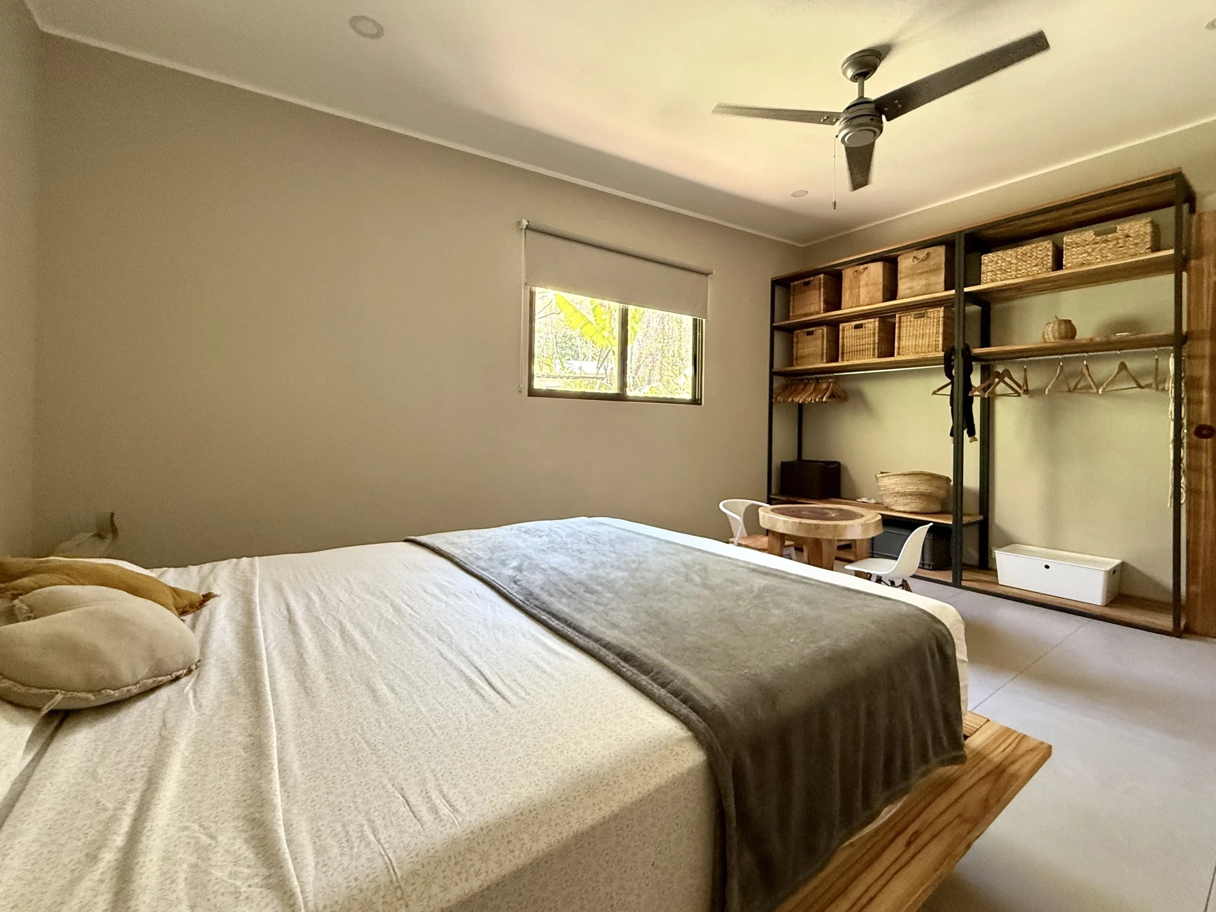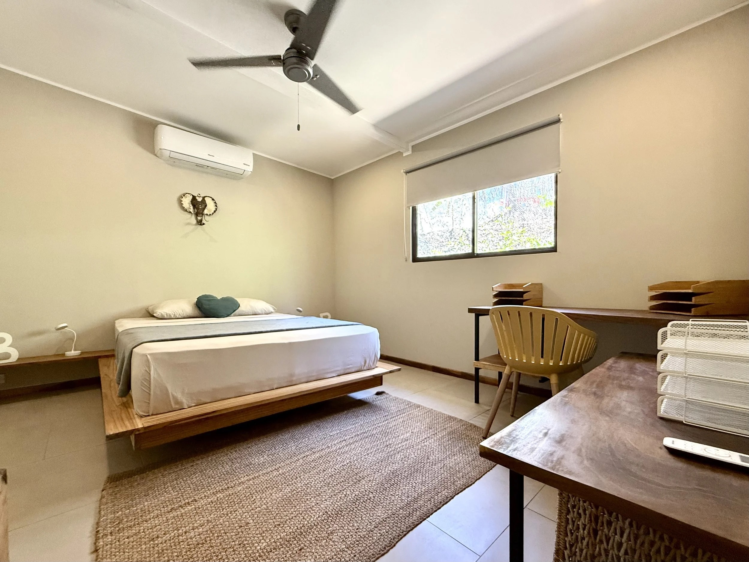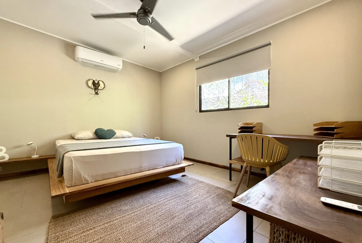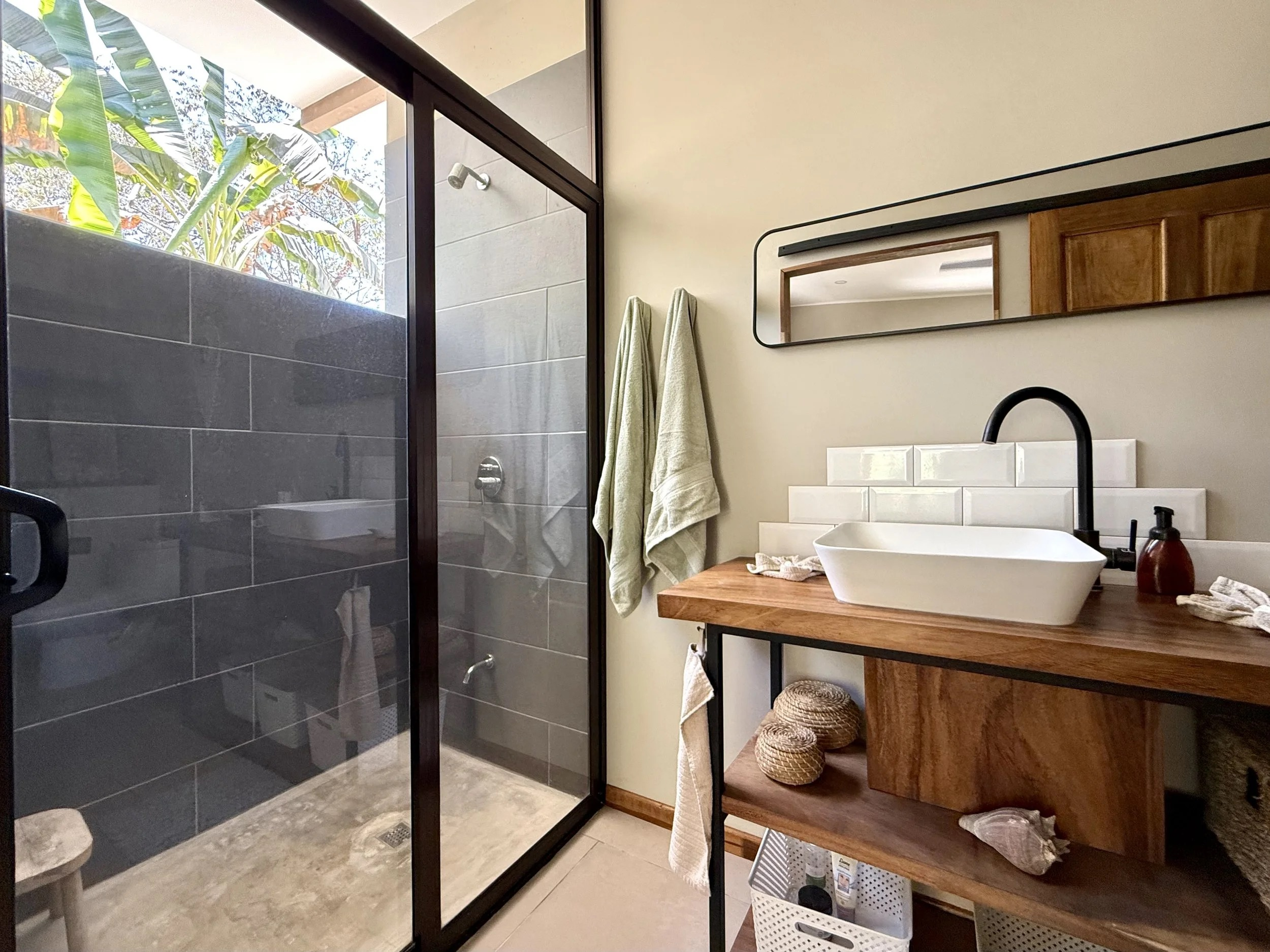 Both bedrooms are comfortable and generously sized, while the bathroom maintains the home’s understated, easygoing style. Modern elements with a Costa Rican flair.