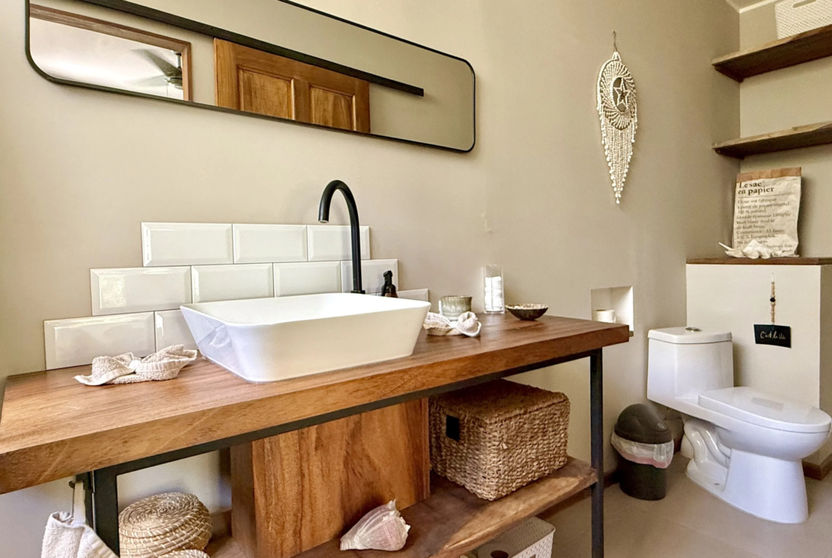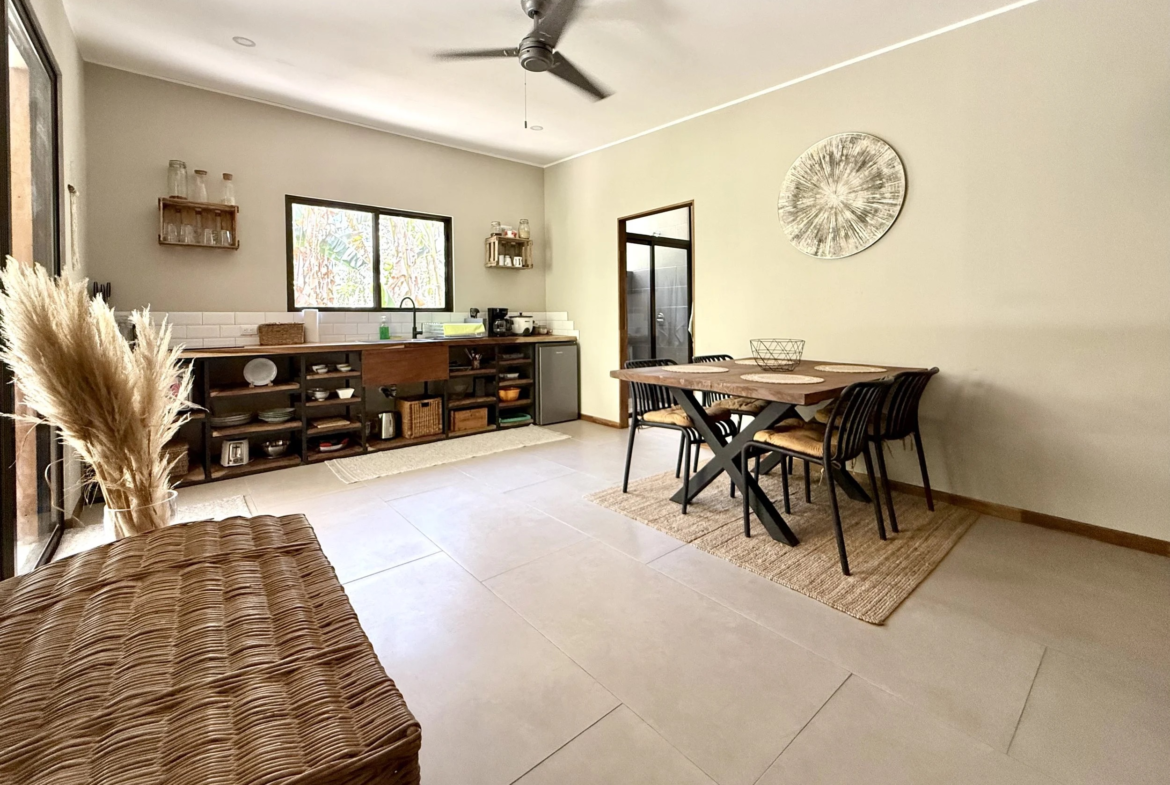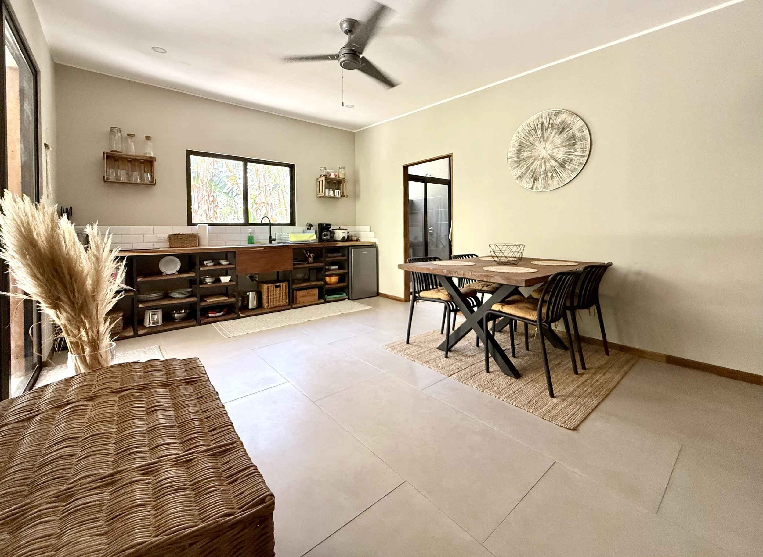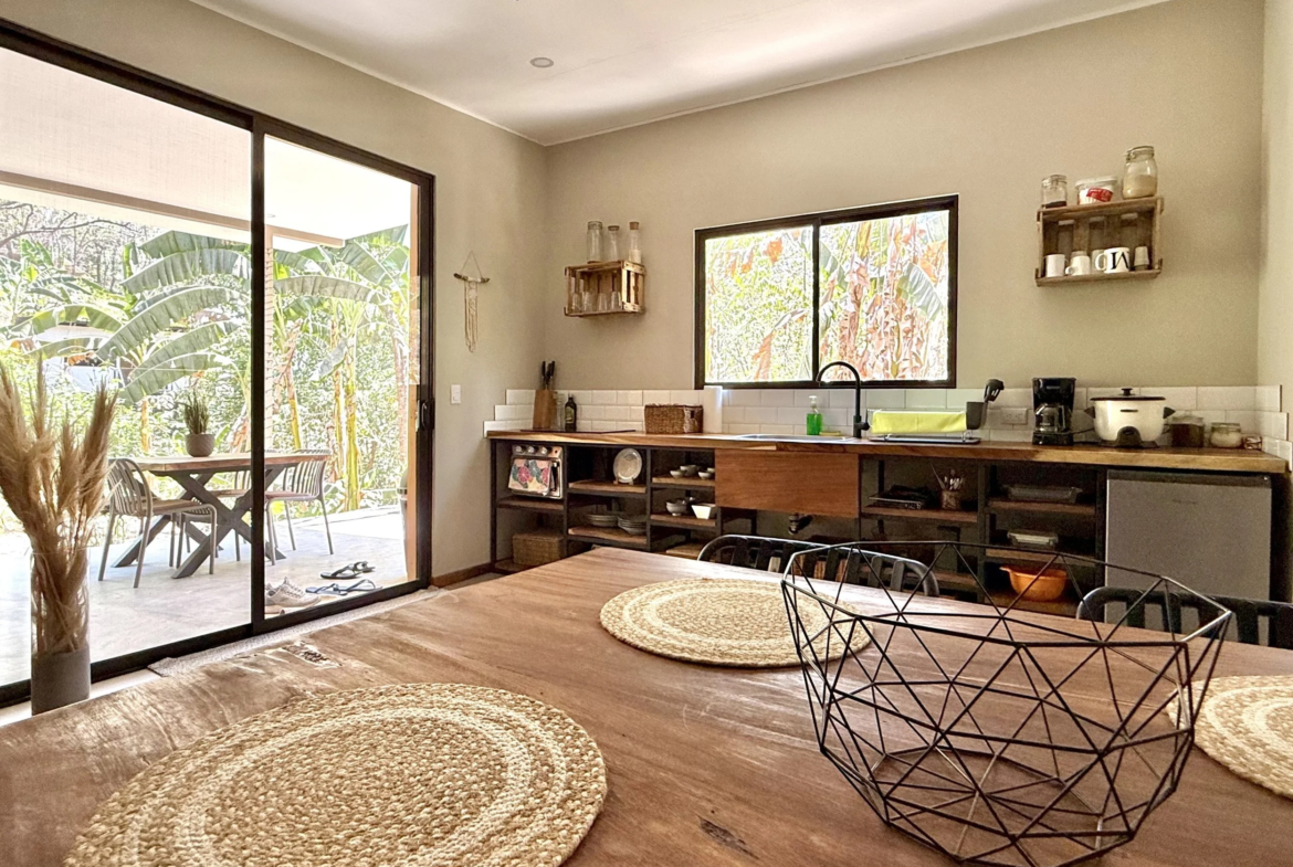 Both bedrooms are comfortable and generously sized, while the bathroom maintains the home’s understated, easygoing style. Modern elements with a Costa Rican flair.