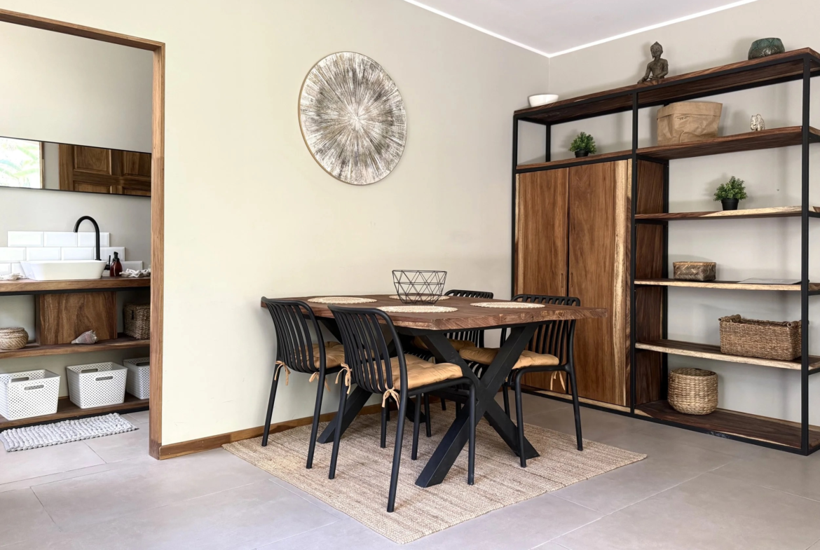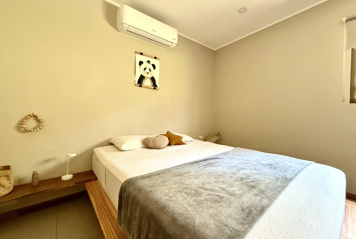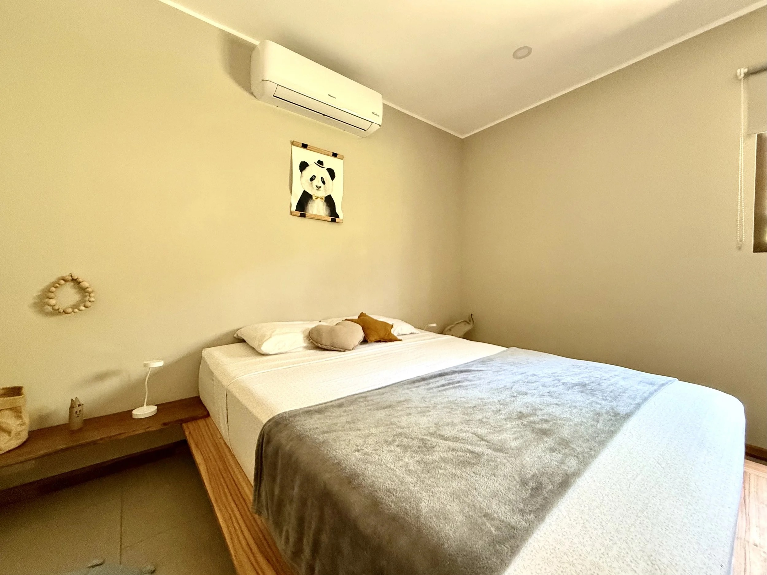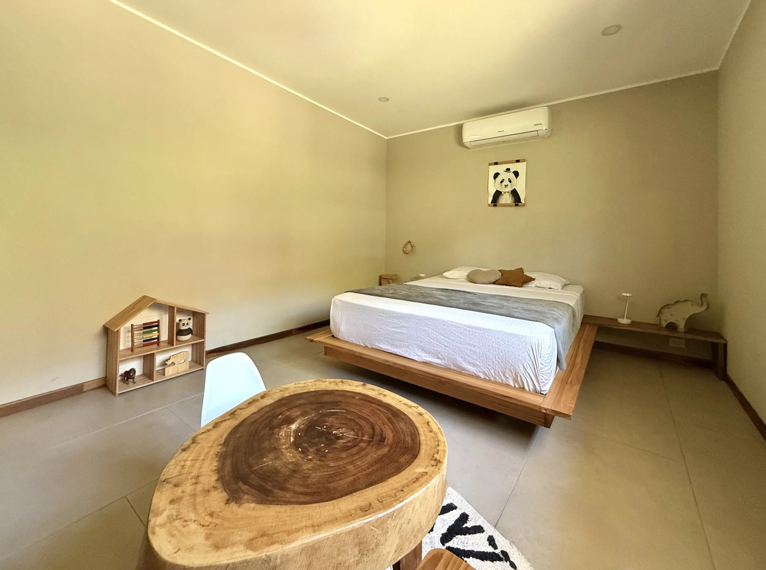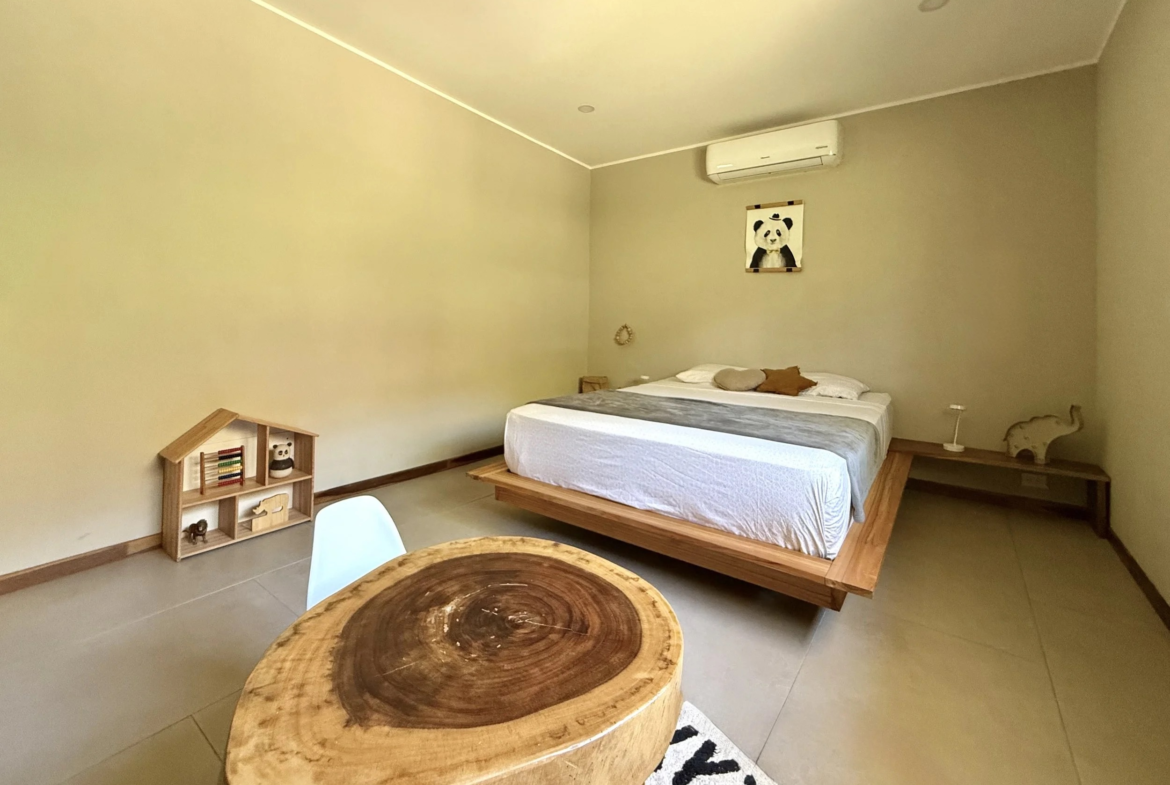 Both bedrooms are comfortable and generously sized, while the bathroom maintains the home’s understated, easygoing style. Modern elements with a Costa Rican flair.