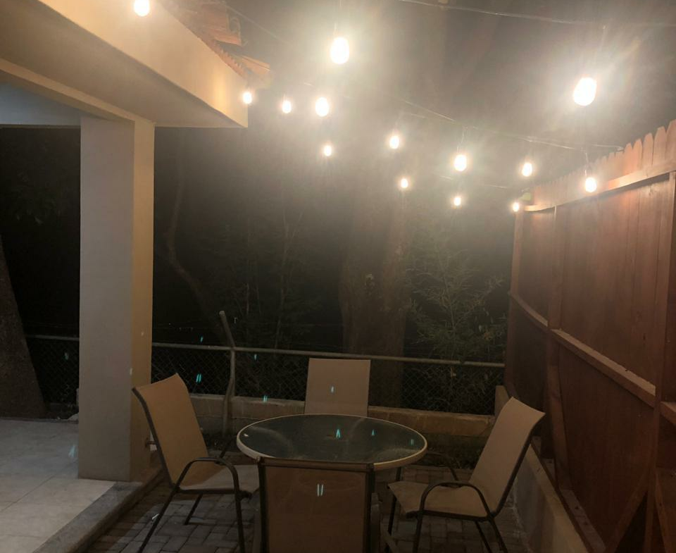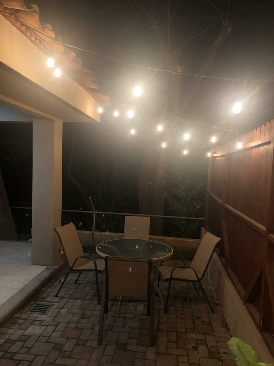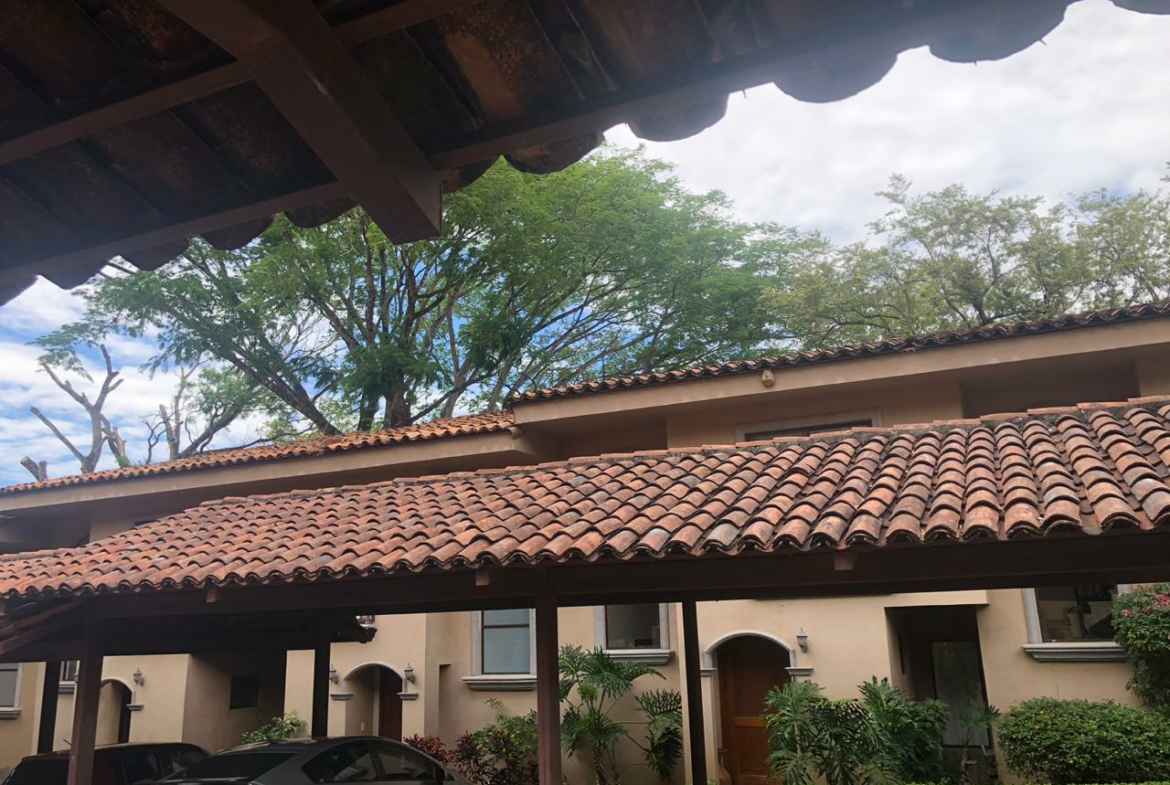 In Brasil de Mora. Quality construction of all block with high ceilings in the bedrooms . Two large bedrooms +2 bathrooms upstairs. Guest bathroom and patio with BBQ. . Many mature trees in the community and views. Pool and rancho at the top. Low maintenance .