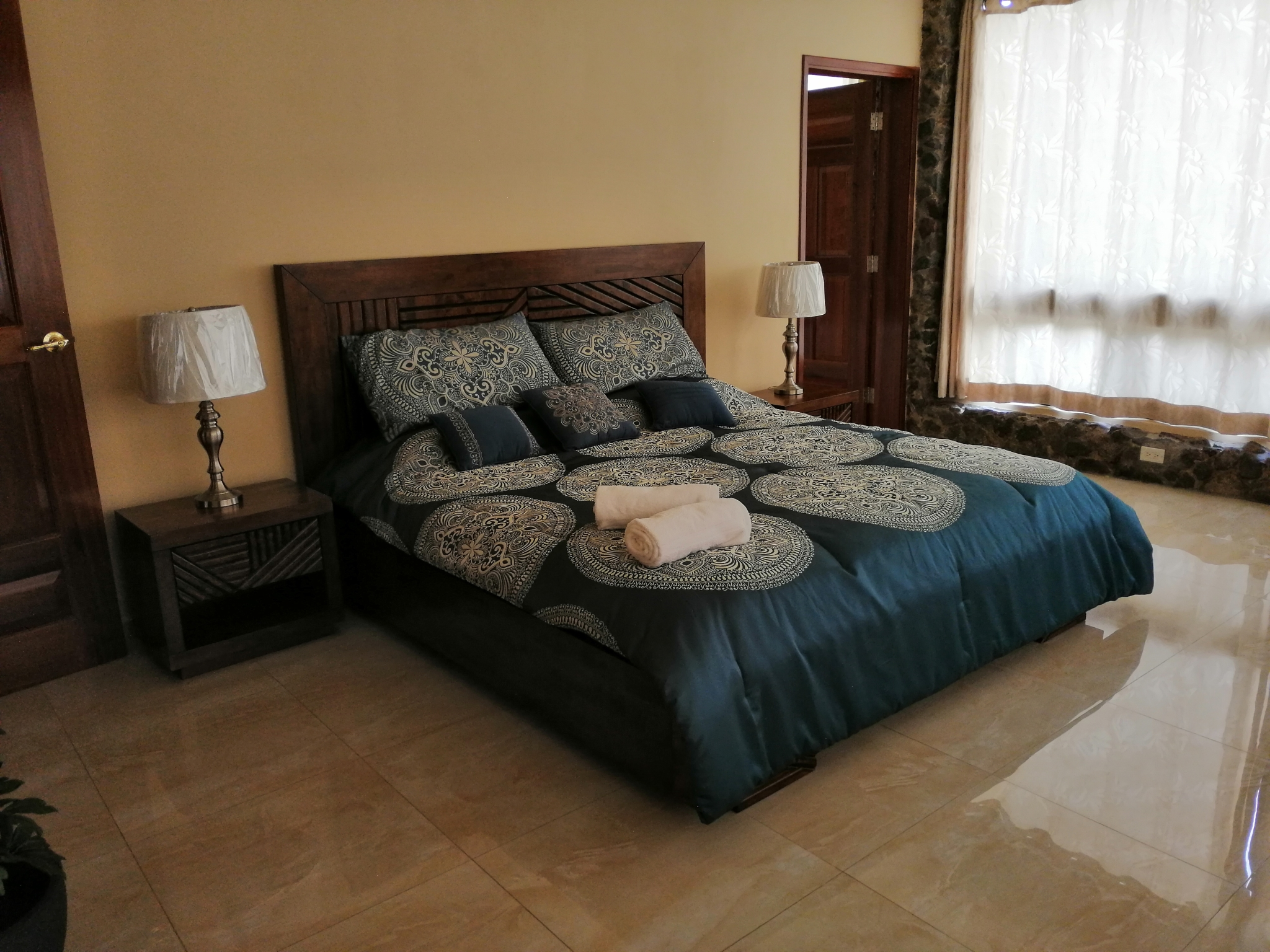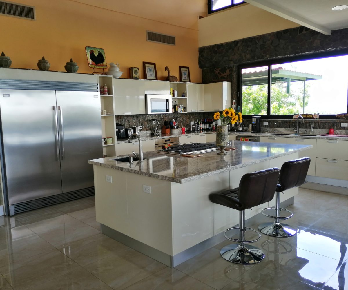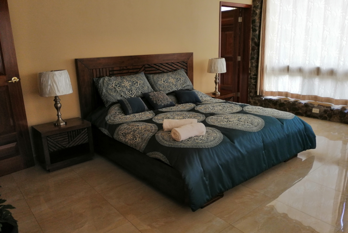 The Bamboo Villa is a two-story luxury villa with two master bedrooms on the first floor complete with on suite private bathrooms and each with Jacuzzi tubs. The four additional rooms are located on the second floor all with private balconies and on suite bathrooms. Each room is equipped with A/C and a flat screen TV. The kitchen is a chefs dream with a large open cooking area, side by side refrigerator, gas cook top stove, electric oven and dishwasher.