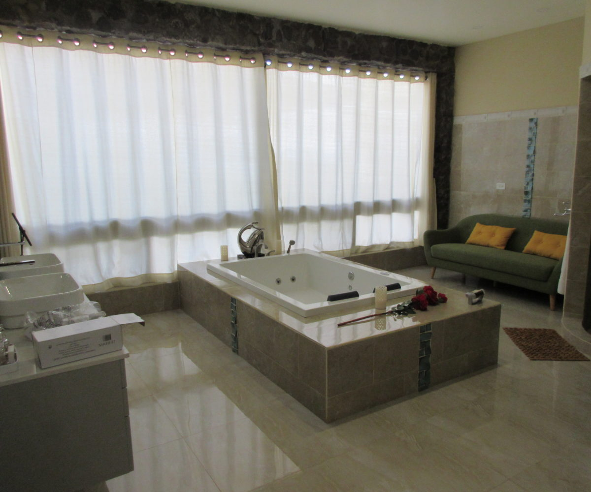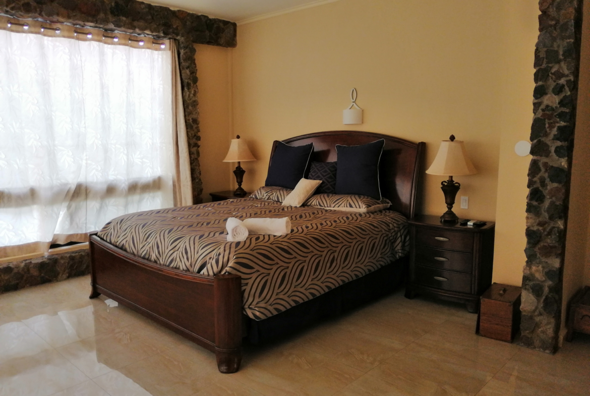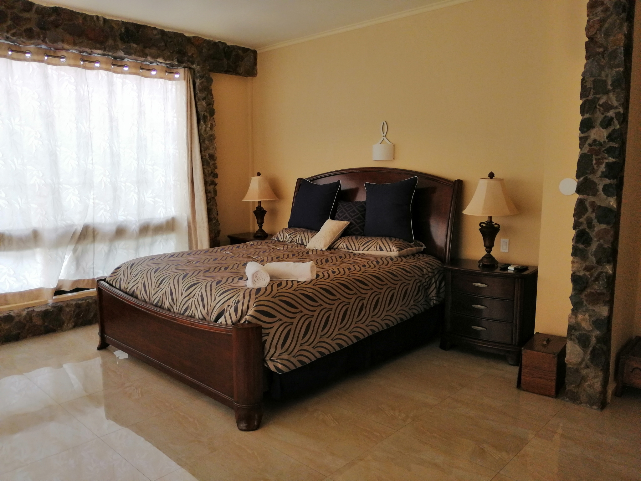 The Bamboo Villa is a two-story luxury villa with two master bedrooms on the first floor complete with on suite private bathrooms and each with Jacuzzi tubs. The four additional rooms are located on the second floor all with private balconies and on suite bathrooms. Each room is equipped with A/C and a flat screen TV. The kitchen is a chefs dream with a large open cooking area, side by side refrigerator, gas cook top stove, electric oven and dishwasher.