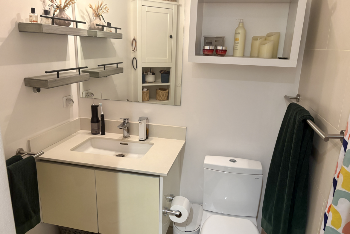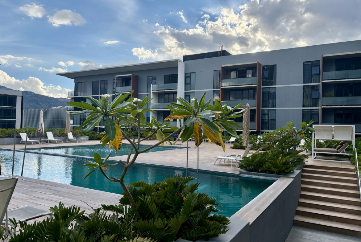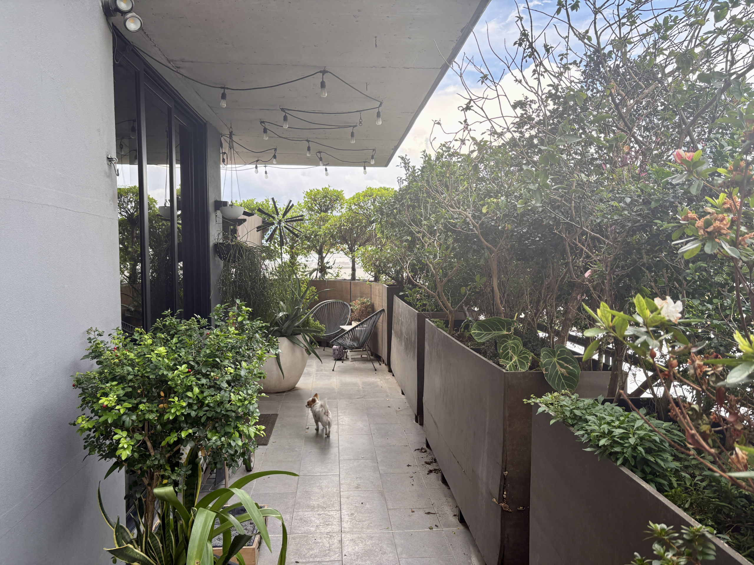 Modern Escazú Village 1 BR Condo with Expansive Private Terrace for sale. Experience elevated urban living in this stylish 1-bedroom, 1.5-bath residence on the 4th floor of Escazú Village. This community is one of Escazú’s most desirable mixed-use communities. Price reduced from $345,000 to $299,000. This residence was designed with a bright, open floor plan. The apartment seamlessly connects the kitchen, dining, and living areas. As a result, this creates a spacious, modern atmosphere ideal for everyday comfort or entertaining. Floor-to-ceiling glass invites natural light throughout. Meanwhile, the oversized private balcony extends your living space outdoors. The balcony is lined with lush planters for added privacy. In addition, this generous terrace is the perfect setting for morning coffee, sunset cocktails, or your own peaceful urban garden retreat.