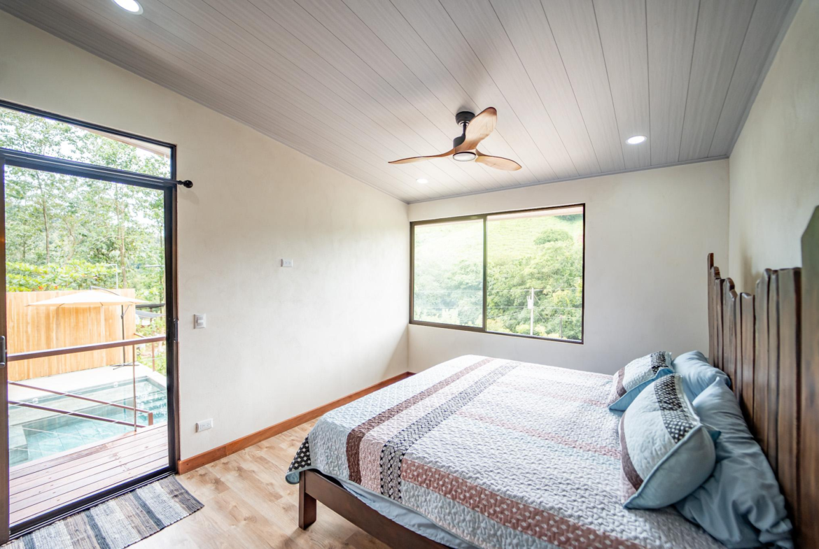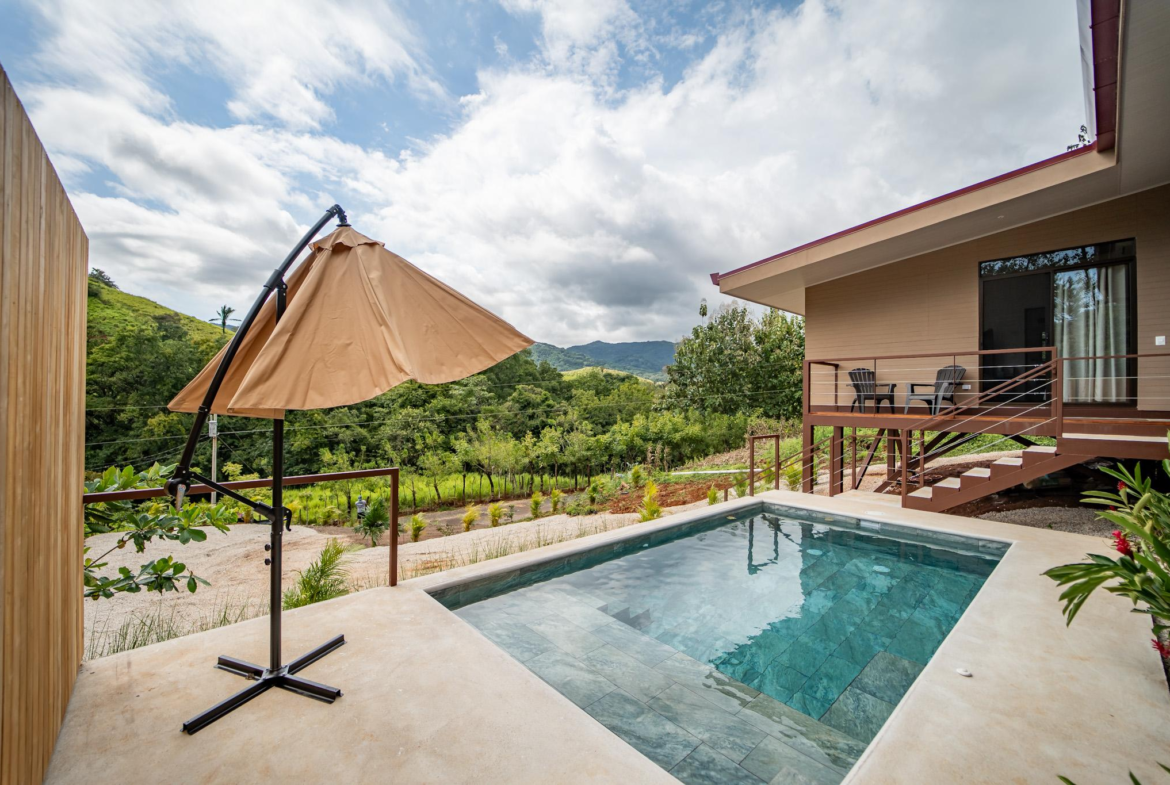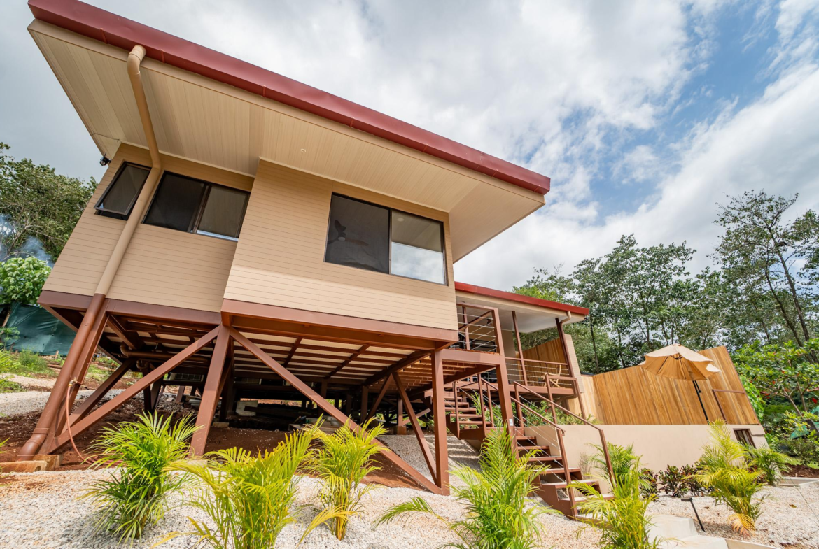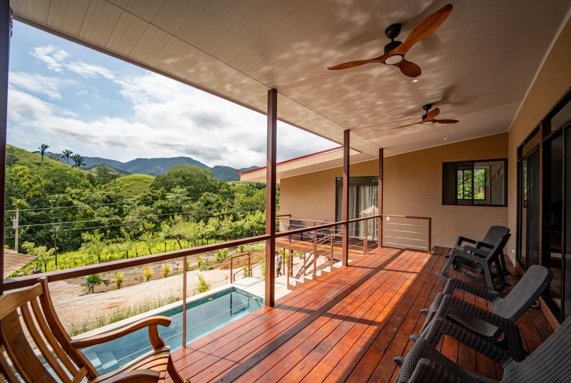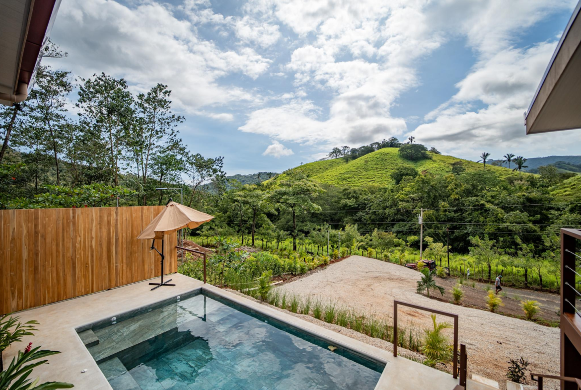 Modern Play Samara 3 BR Mountain View Home for sale. Located above the quiet countryside of Santa Marta – Playa Samara, this home blends clean modern design with warm natural materials and stunning mountain views. Just 12 to 15 minutes from Playa Carrillo along a fully paved road, this brand-new home offers the perfect balance of serenity and convenience.