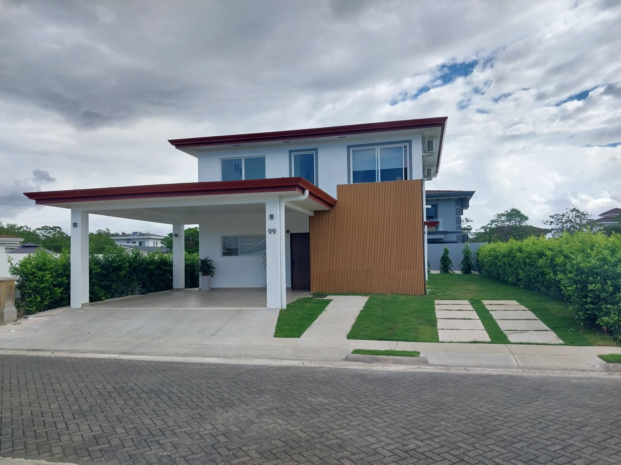 New 3 BR Plus Office Parque del Encino Liberia Home, in the most desired condominium in Liberia. The modern house has two floors and fine finishes. On the second floor, there are three bedrooms, each with its own bathroom, and an office.