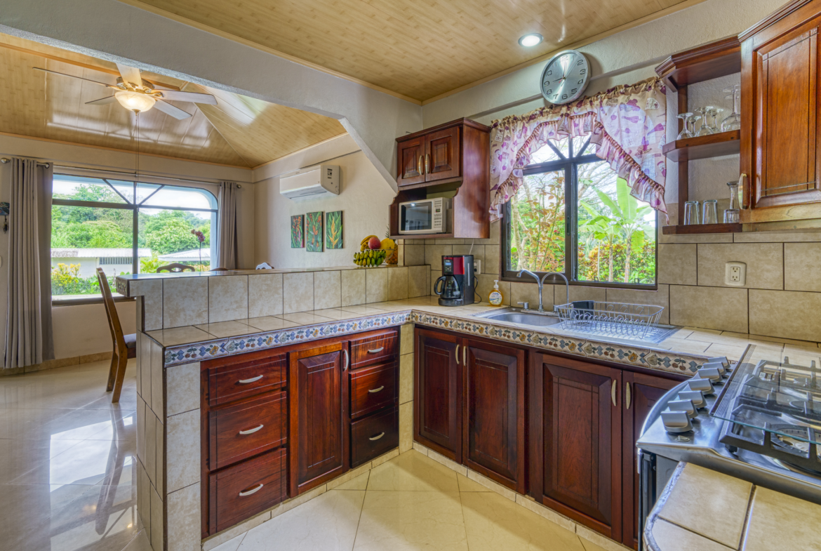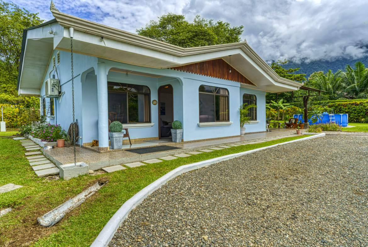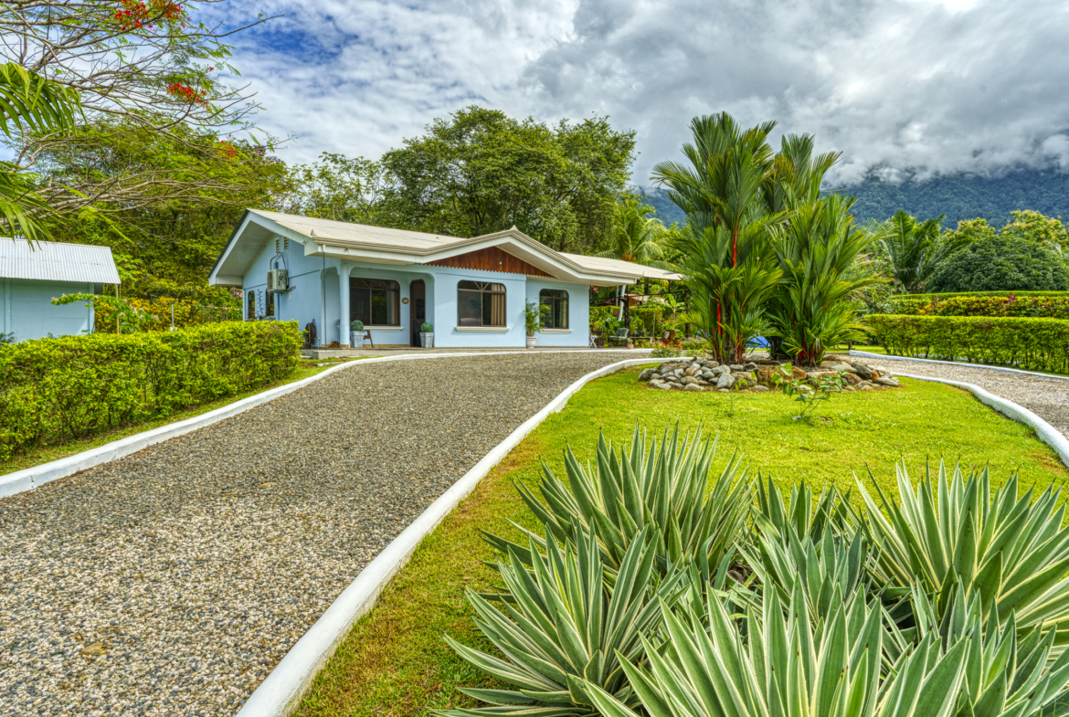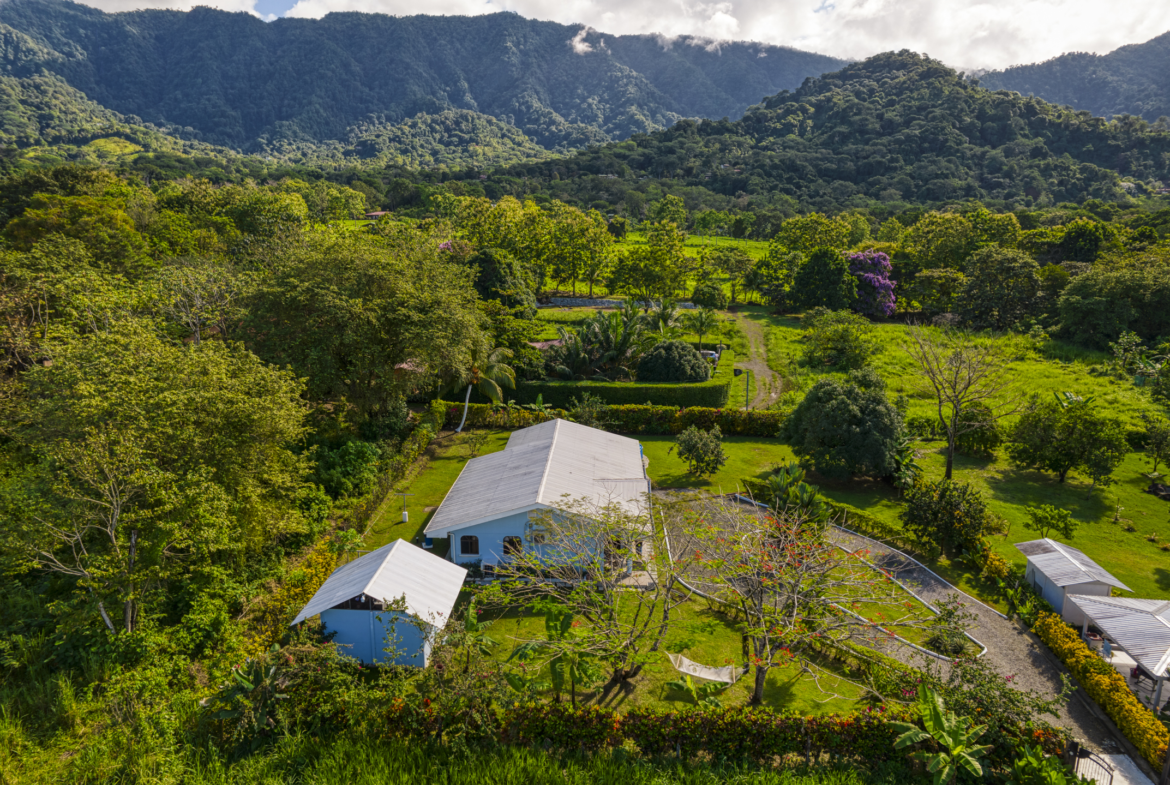 Ojochal 2 BR Mountain View Home lots of Fruit trees for sale. This private oasis is tucked away at the end of a long driveway, providing seclusion and tranquility. Fully fenced and surrounded by lush, natural vegetation, the property offers a stunning backdrop to your tropical paradise.