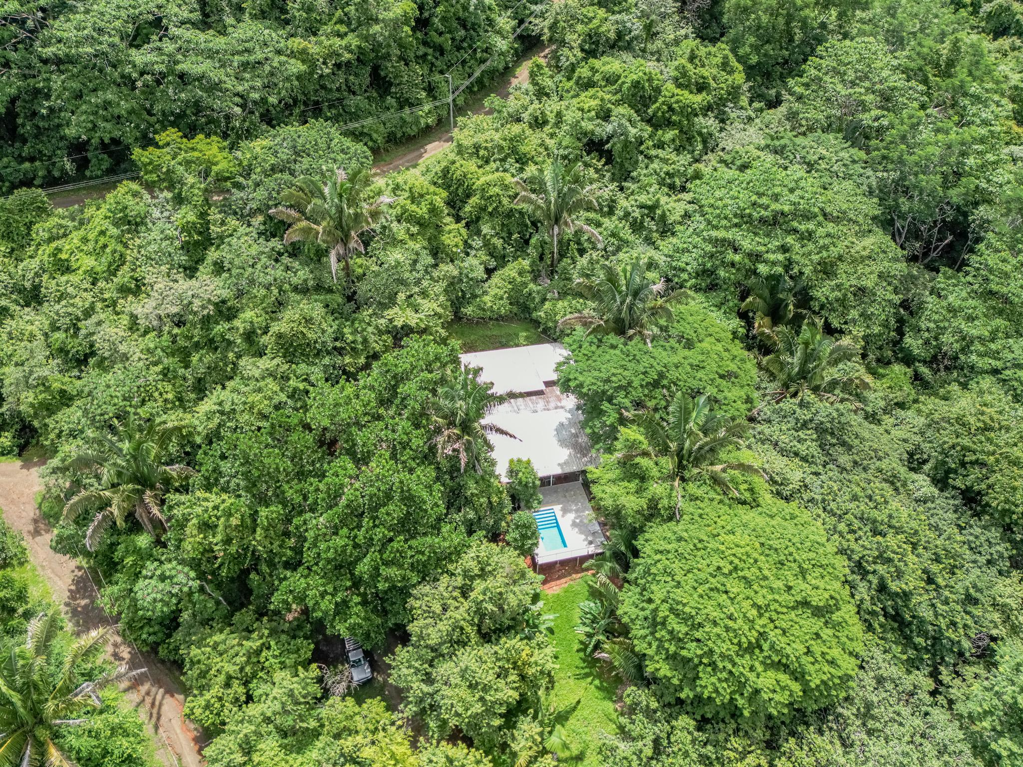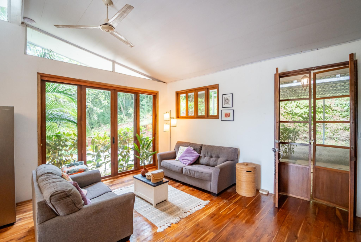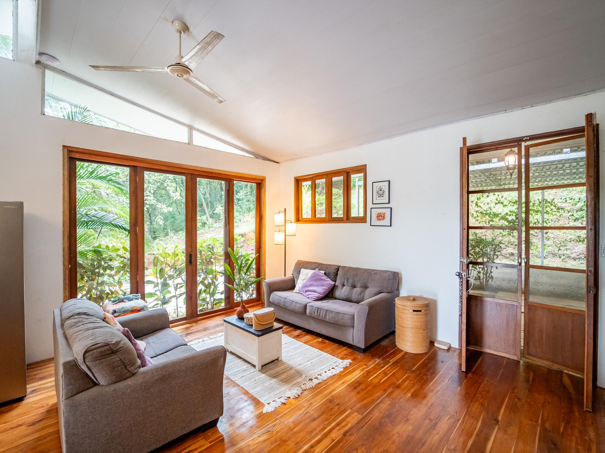 Peaceful Rural Samara 2 BR Furnished Mountain Home for sale. Tucked away in the lush mountains above the Nicoya Peninsula and just 14 km from Samara, a tranquil and secure 2-bedroom, 2-bathroom retreat designed for those seeking privacy, connection to nature, and simple mountain living. This fully furnished 150m² home sits on a generous 5,700m² (1.41-acre) lot, blending comfort with stunning natural surroundings.