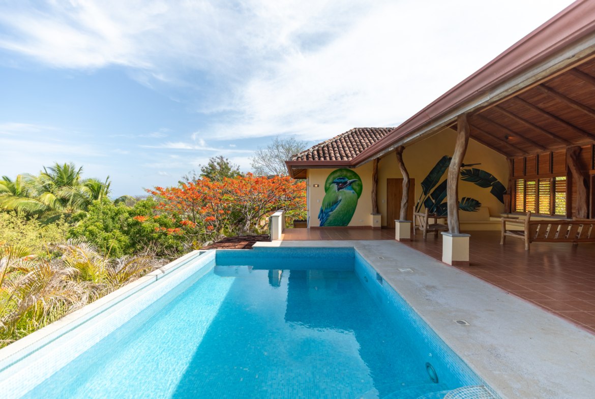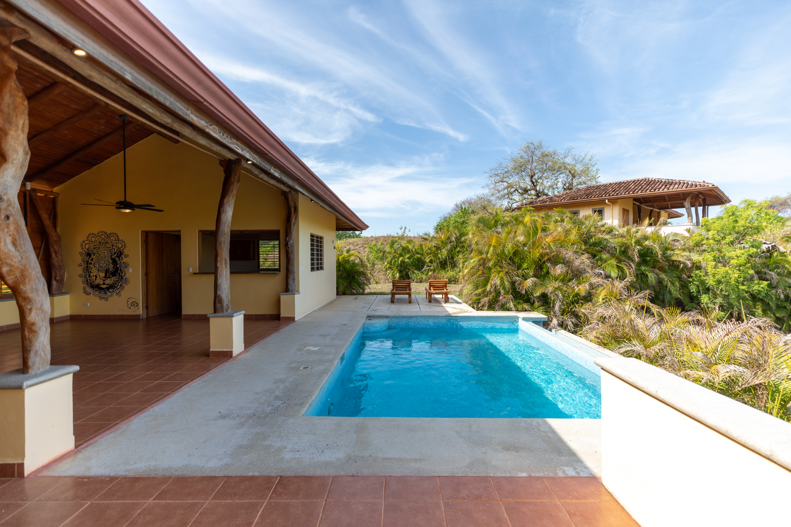 Playa Guiones Private Ocean View Estate with 4 Homes for sale. Indulge in the ultimate luxury lifestyle with this magnificent estate property located in the idyllic surroundings of South Guiones. Nestled amidst picturesque farmland and just a short stroll from the pristine shores of Playa Guiones, this exceptional estate comprises four homes, each boasting four bedrooms and a private pool, offering unparalleled comfort and tranquility.