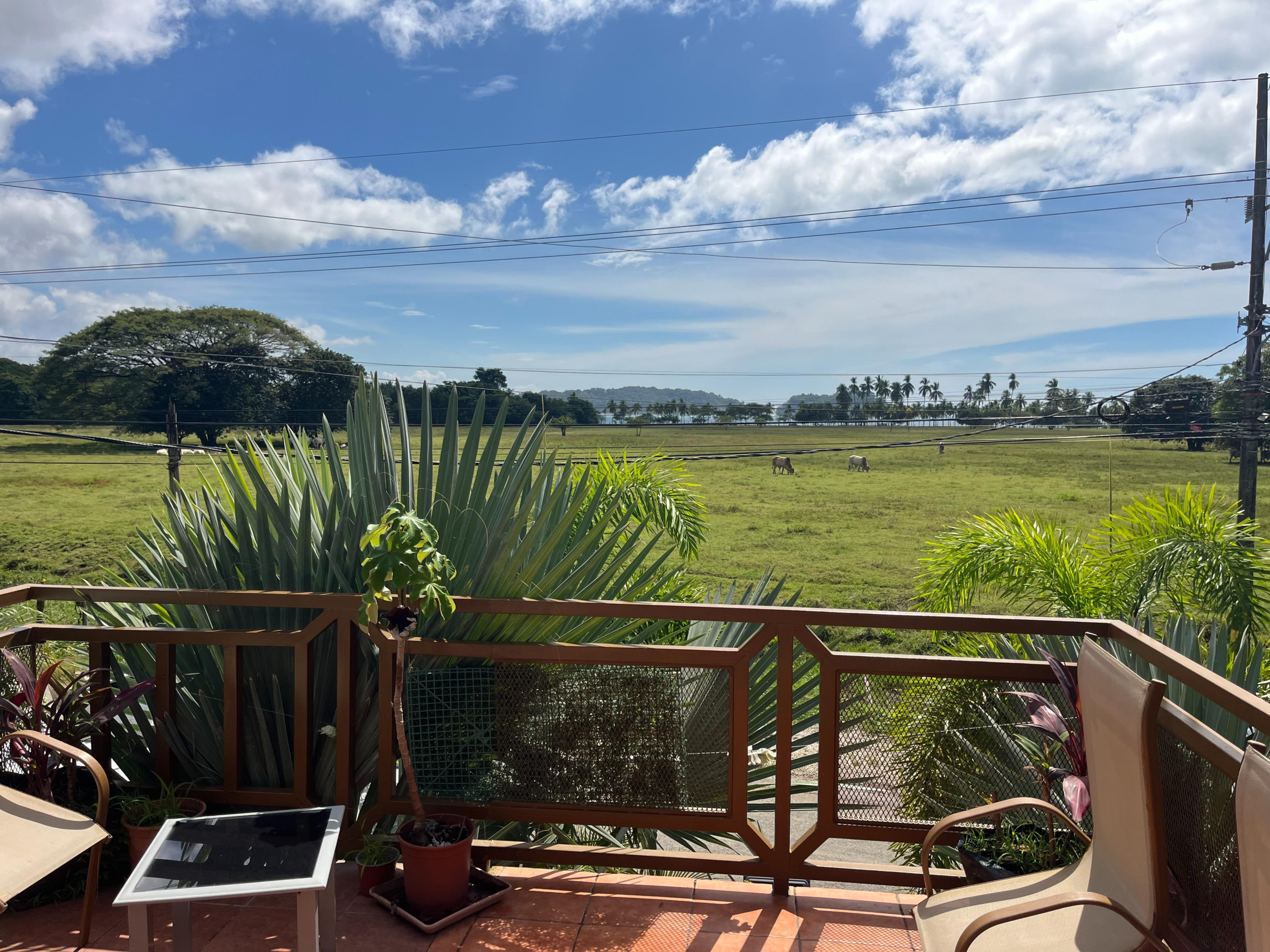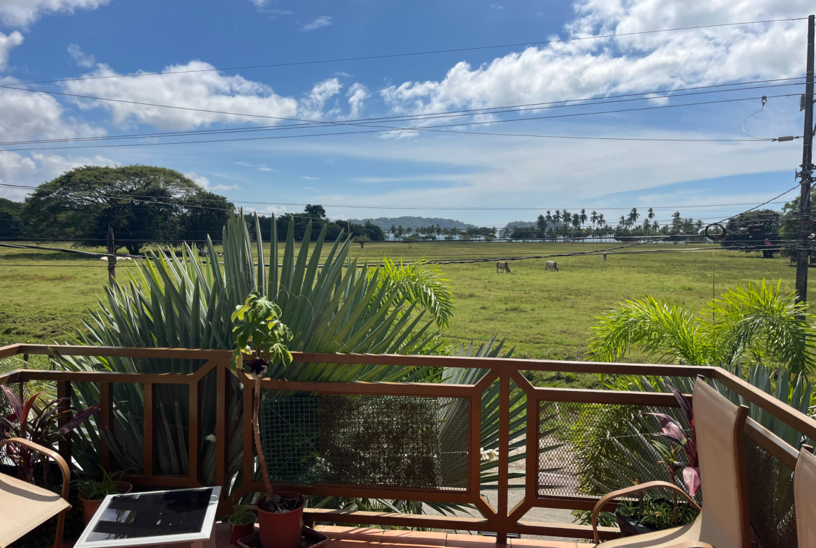 A panoramic viewpoint offers stunning views of the ocean at Cangrejal beach and the surrounding countryside, reinforcing the calm and natural beauty of the setting.