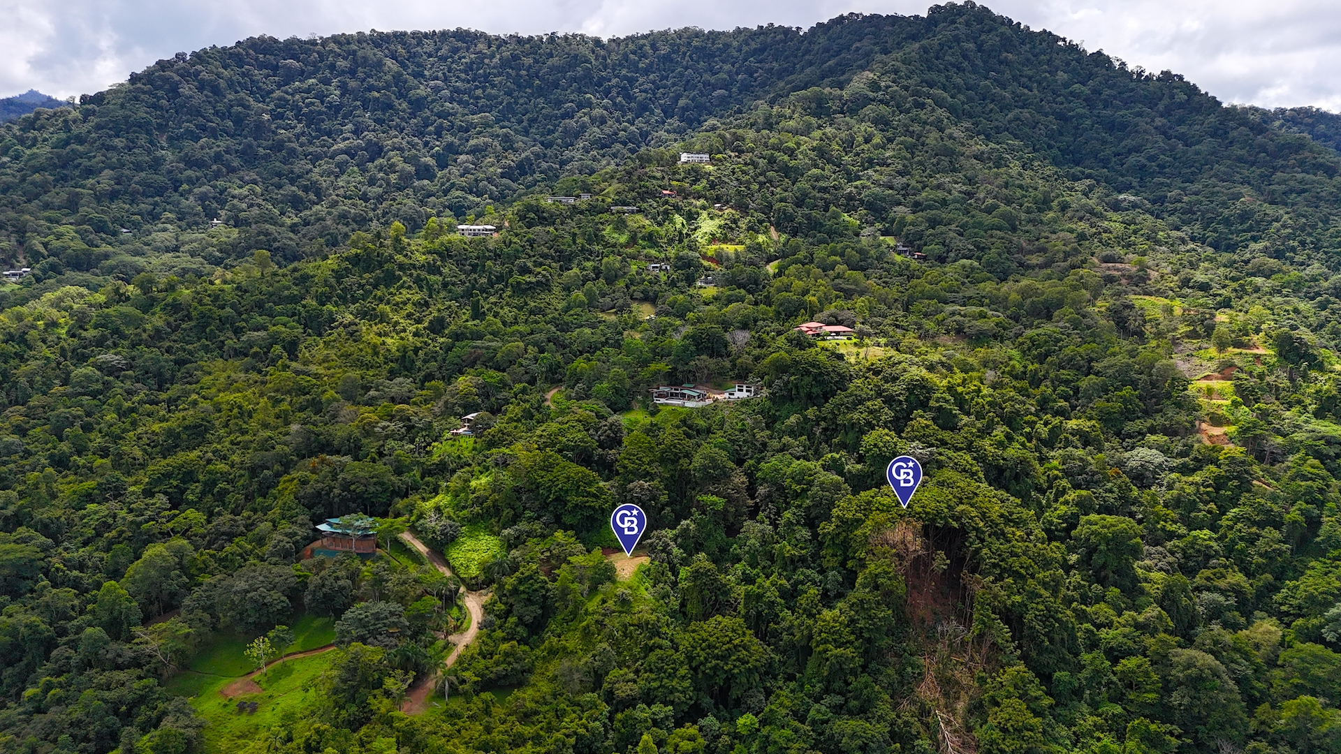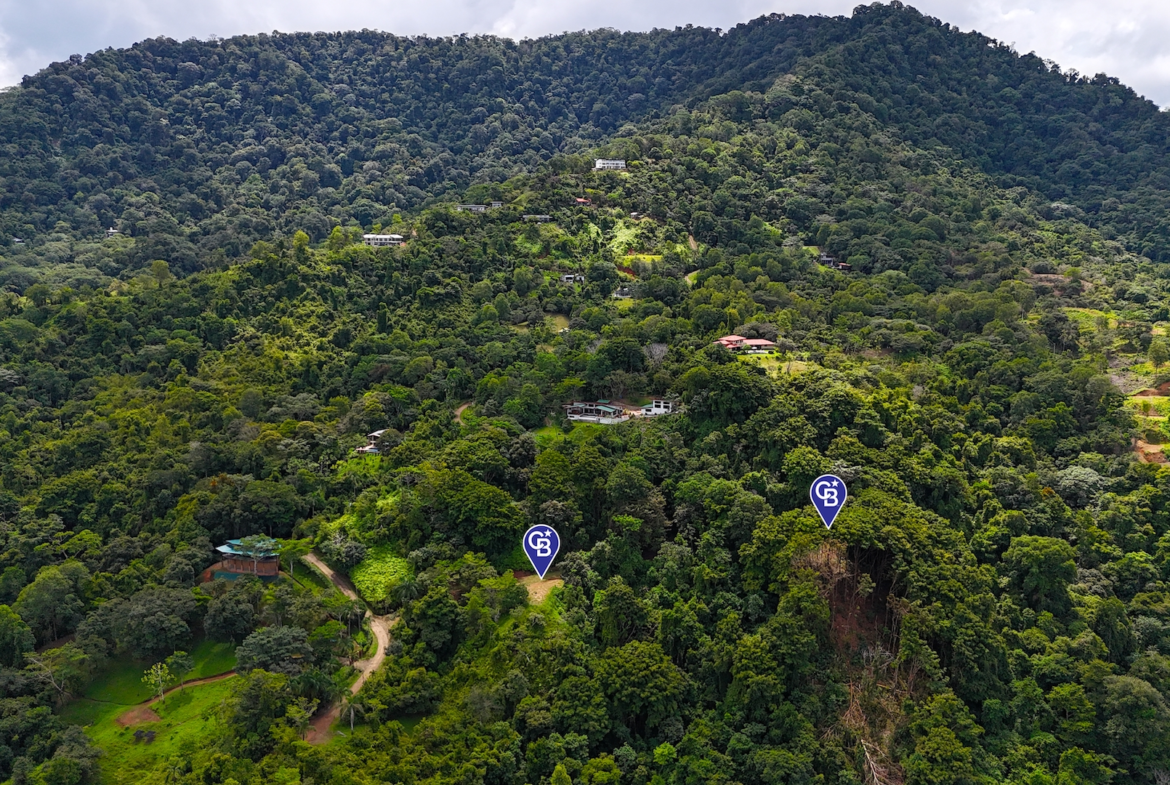 Portalon Private Sunset Ocean View Property with 2 Building Sites for sale. This property is a hidden gem in a prime location! Situated in the gated community of La Joya de las Montañas in Portalon, it offers the perfect balance of privacy and convenience. With 9 acres of lush jungle, stunning views of Manuel Antonio National Park and the surrounding mountains, and year-round sunsets, it’s an ideal spot for building a dream home and guest house.
