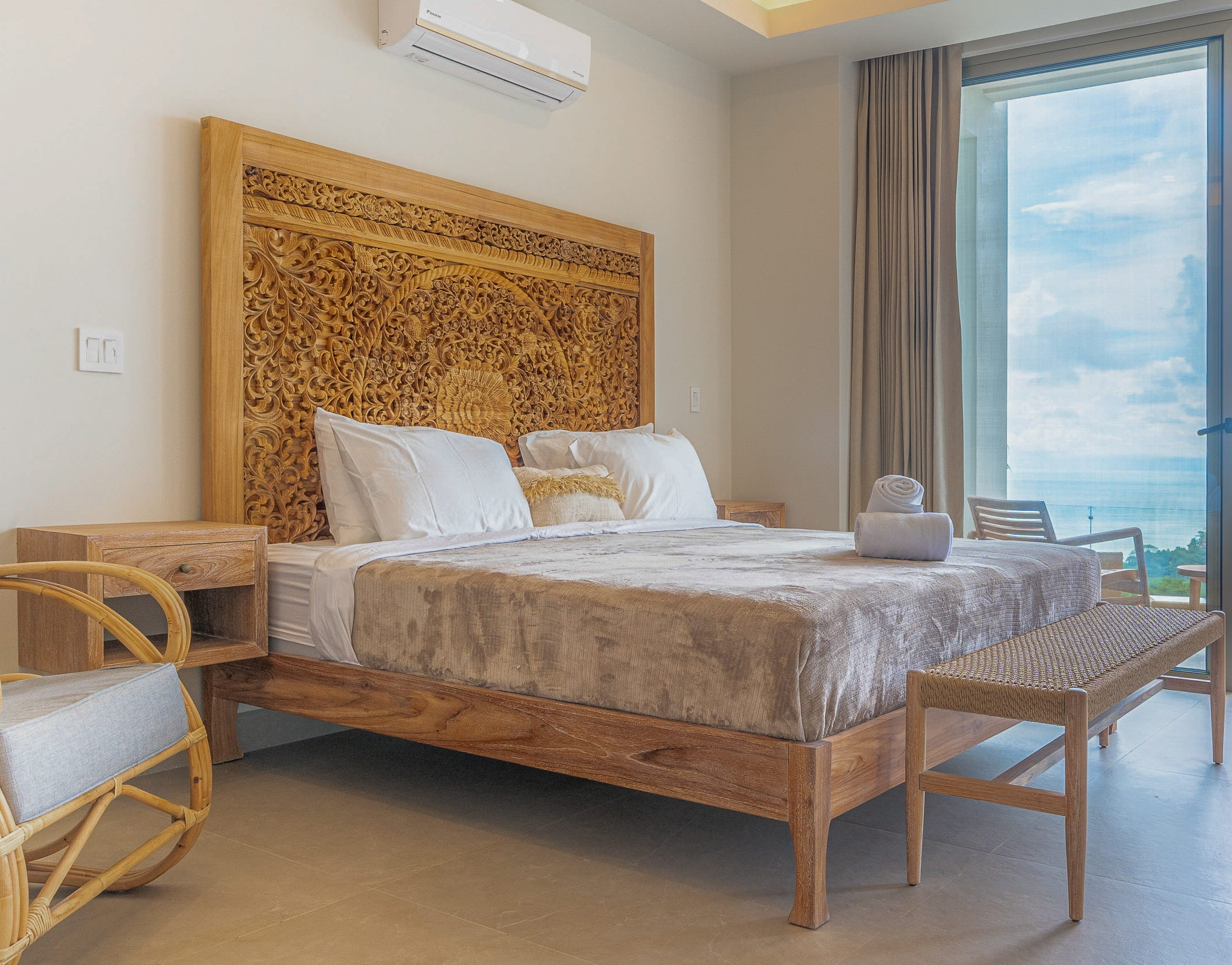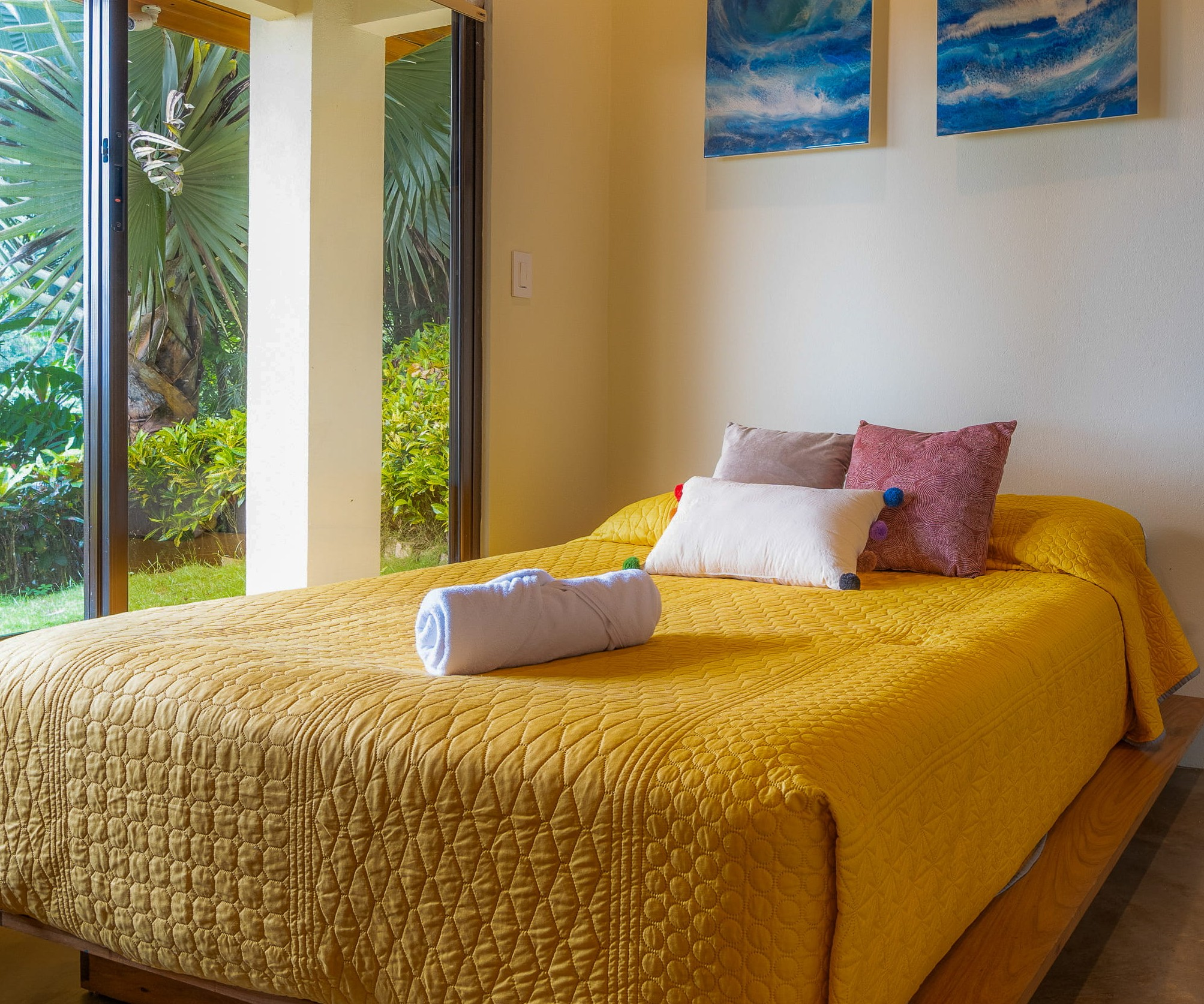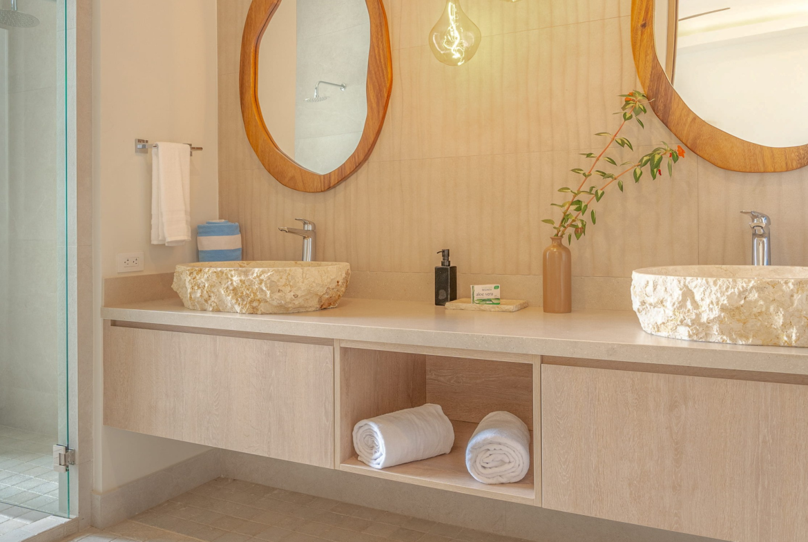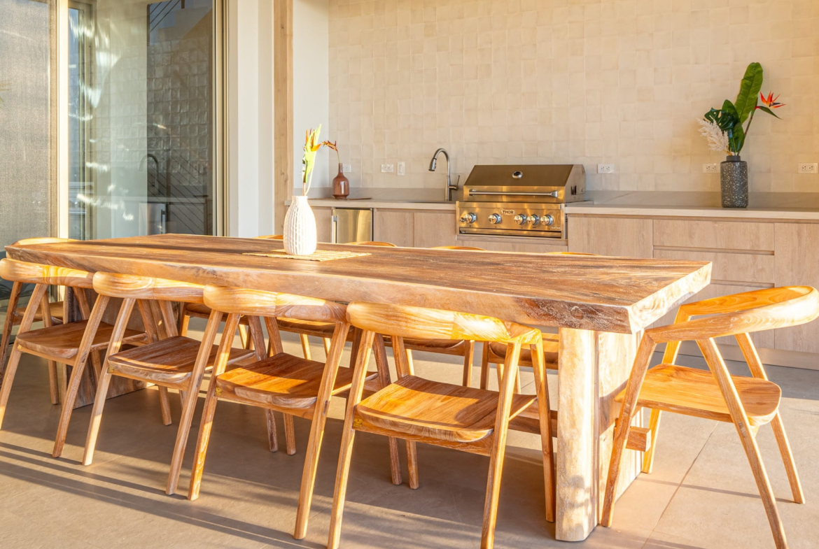 The principal residence is a four-bedroom luxury home built by one of Costa Rica’s most trusted national builders. The owner and architect shaped the design with a clear goal: to bring the landscape into every moment of daily life. The main living room rises to a vaulted ceiling that reaches roughly 27 feet, amplifying the light, the air, and the sense of space. High ceilings, clean lines, and wide openings are all placed to draw your eye toward the Pacific or into the canopy where monkeys, toucans, and butterflies move from branch to branch. The flow between inside and outside is effortless, and the craftsmanship is evident in every finish and detail.