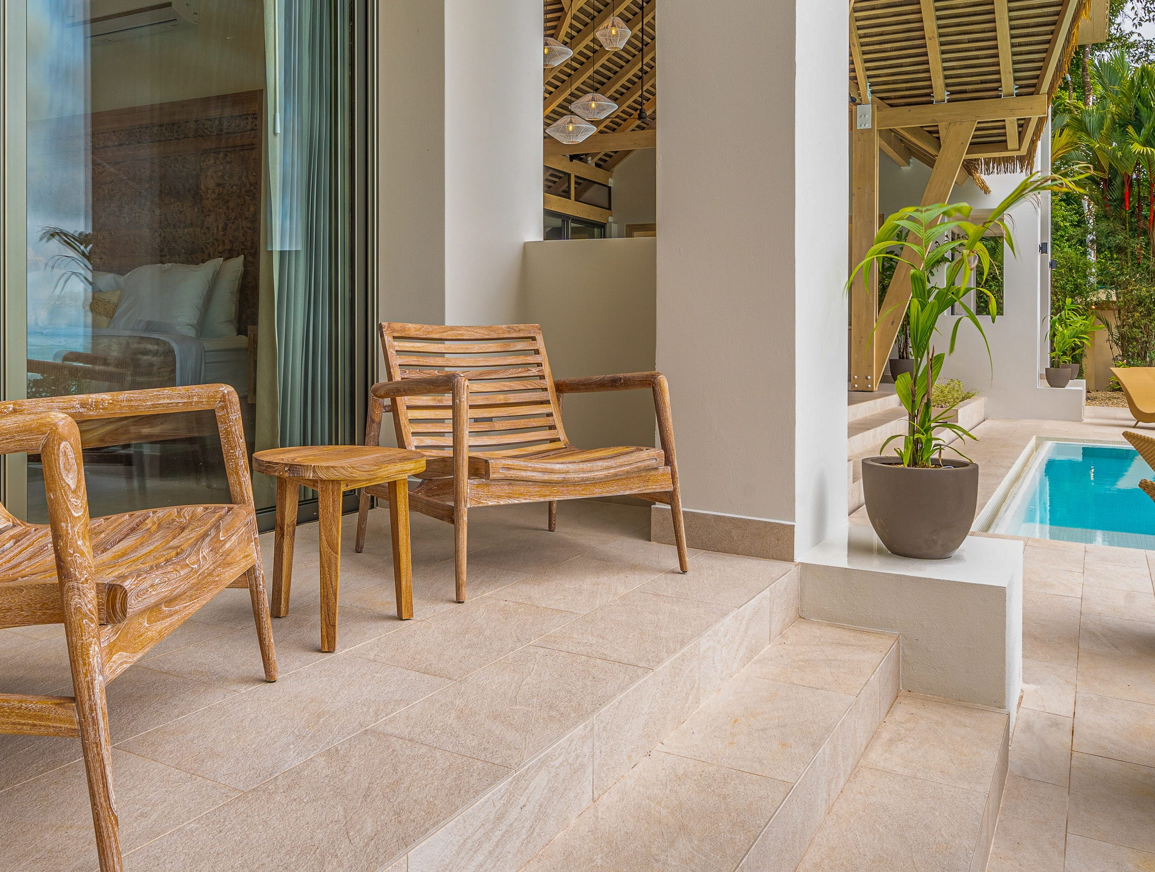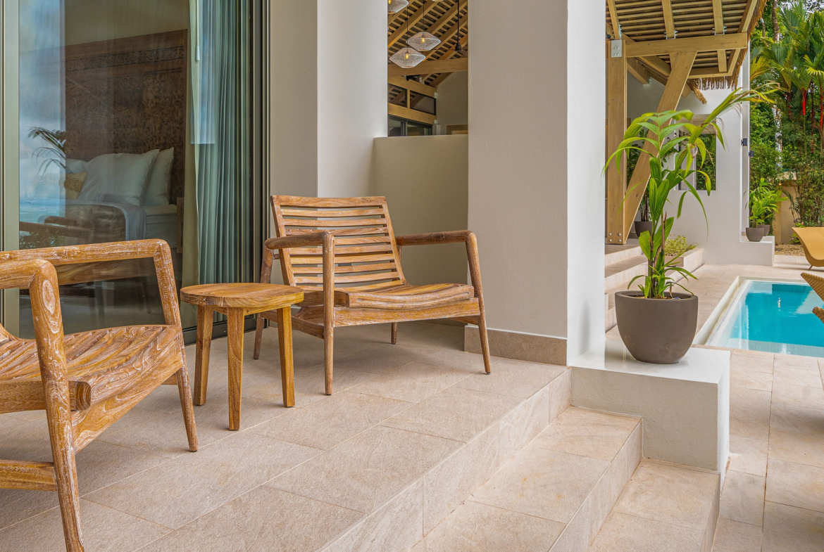 The land tells its own story. A small waterfall adds a touch of natural magic. Tropical gardens, fruit trees, and curated plantings cover the property, all maintained by a full-time on-site caretaker who lives in the third house. He manages the grounds with passion, turning the estate into something close to a private botanical park. Every path feels alive with color and growth.