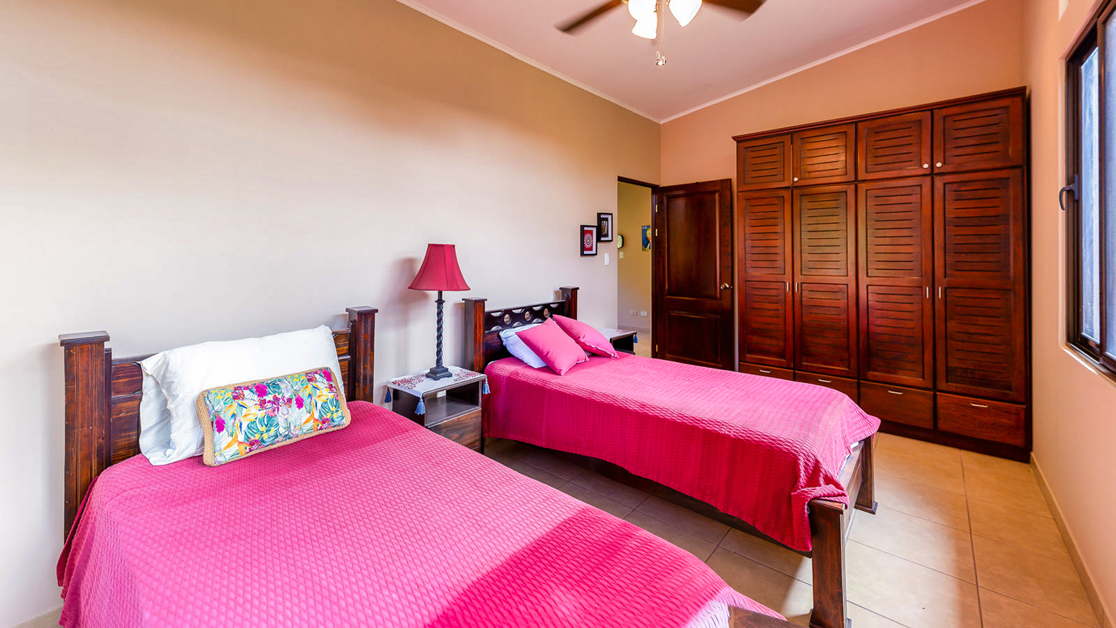 - One with two twin beds and a custom-built wardrobe