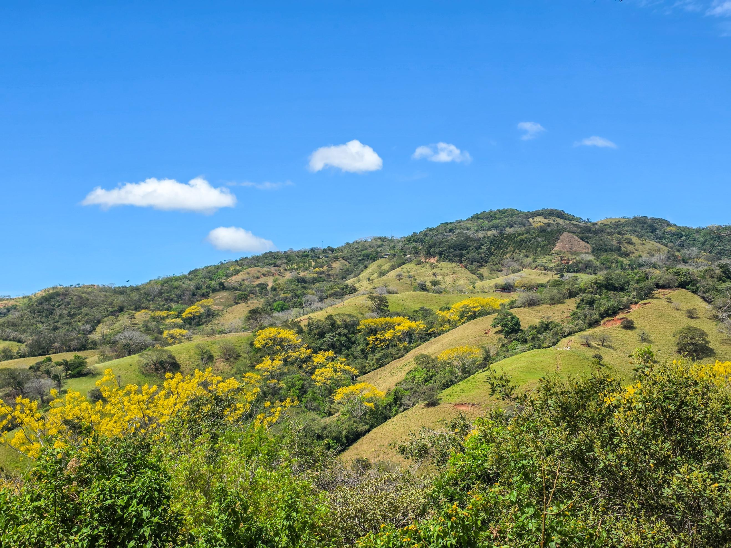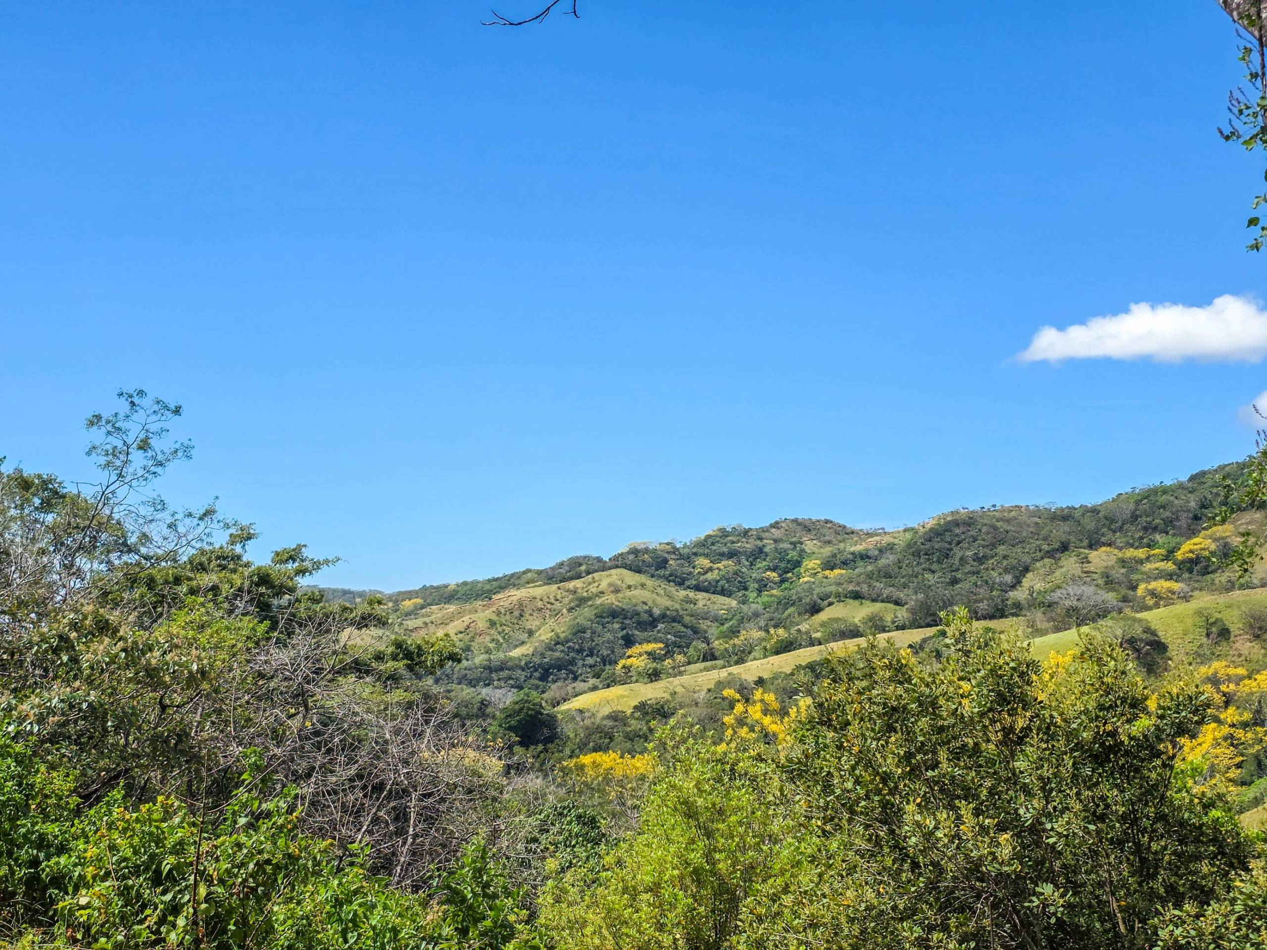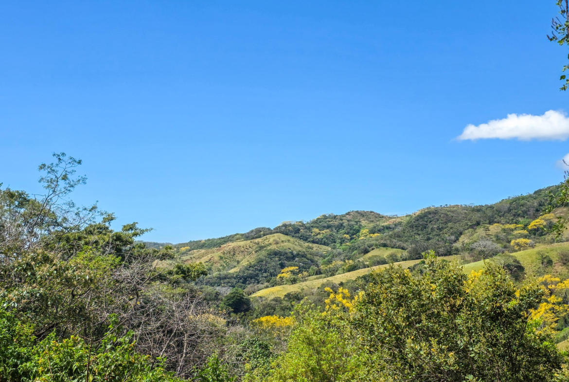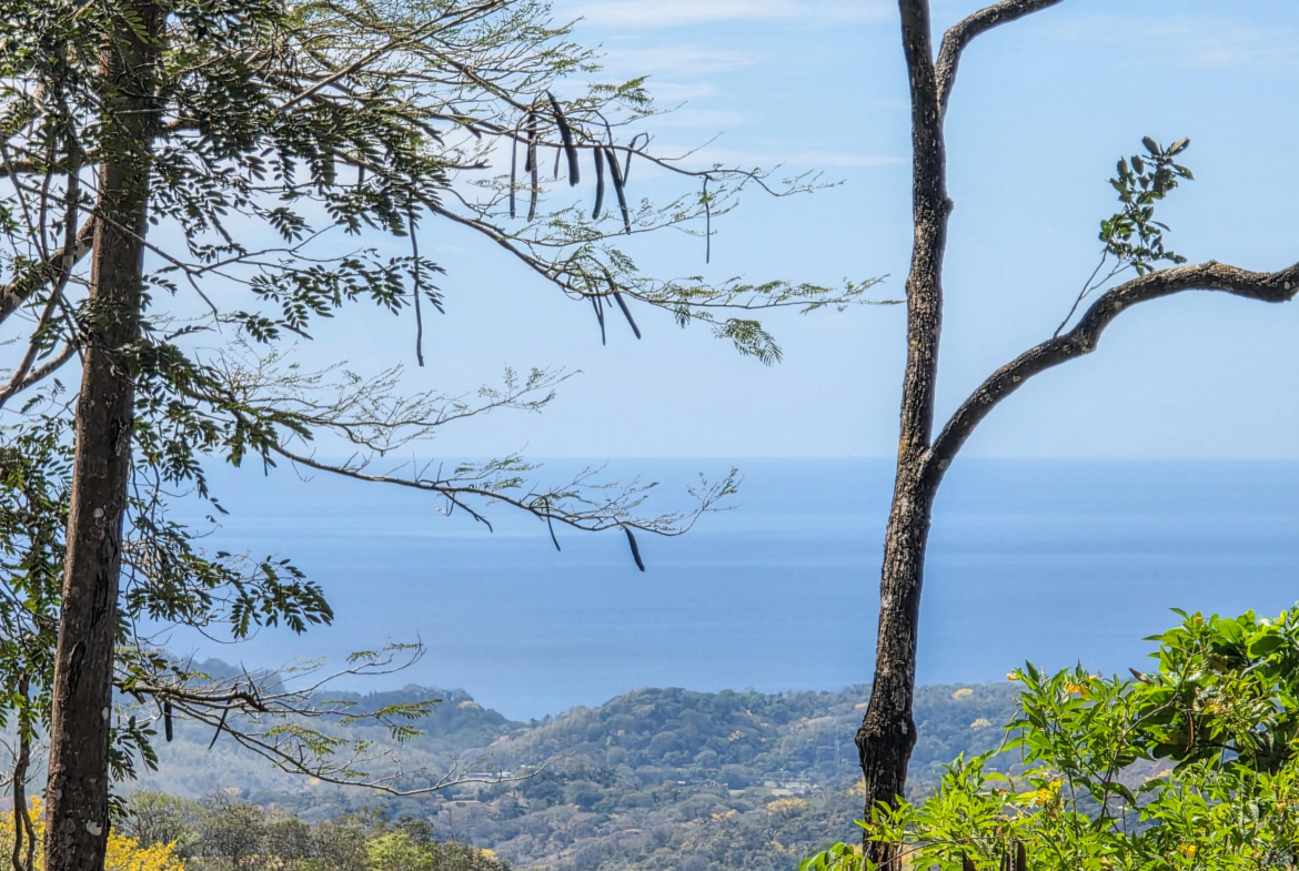 Samara Beach Mountain and Partial Ocean View Lot for sale. Building permits are approved. Nestled in the peaceful mountain neighborhood of Naranjal, this exceptional lot offers breathtaking mountain views and a partial ocean view, creating the perfect balance between nature and a beachy feel. The climate is noticeably cooler and fresher than Sámara downtown or on the beach, providing a refreshing escape from the heat and noise of the city.