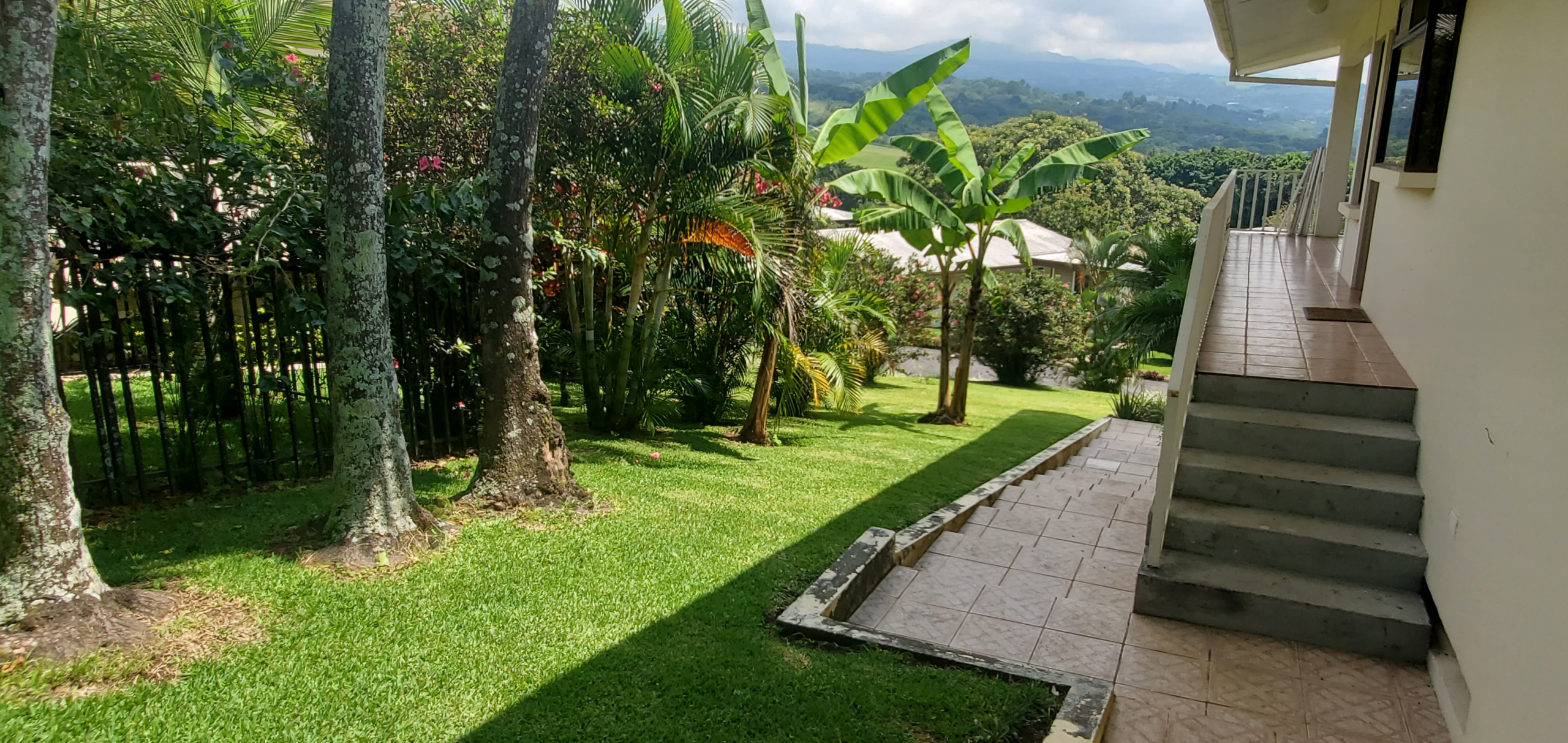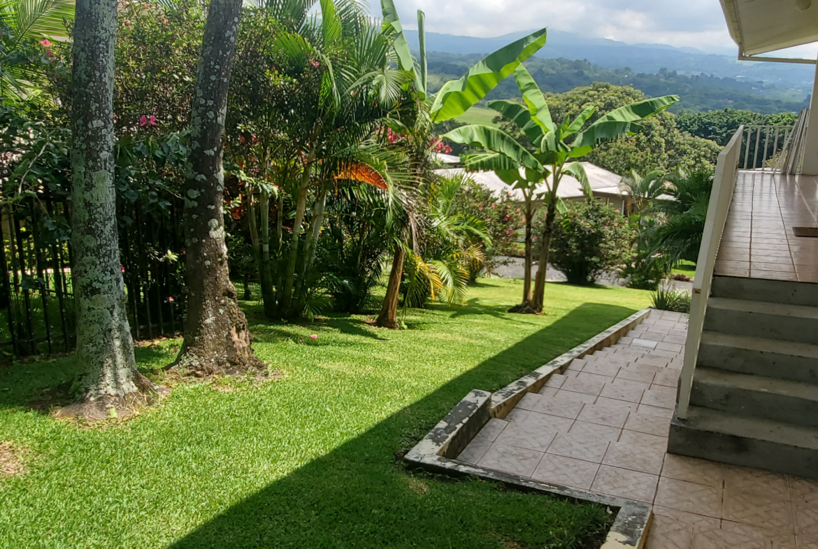 Santa Barbara de Heredia 2 BR home with a spectacular view for sale. The house is part of a gated condominium consisting of 10 houses. Currently, 3 American families and 7 Tico families live there. It has extensive green areas with various fruit trees, a water well, an electricity generation plant, underground wiring, common areas, a secured perimeter, and surveillance at night and on weekends. This condominium is only a short drive from Heredia.