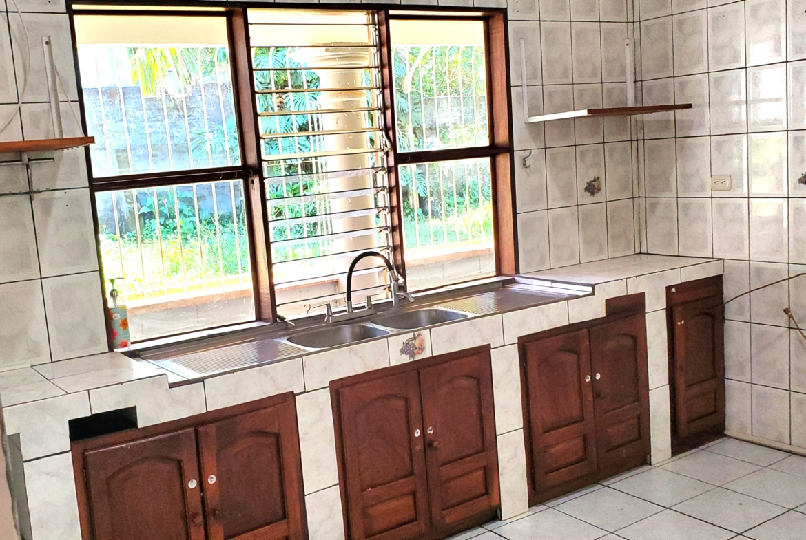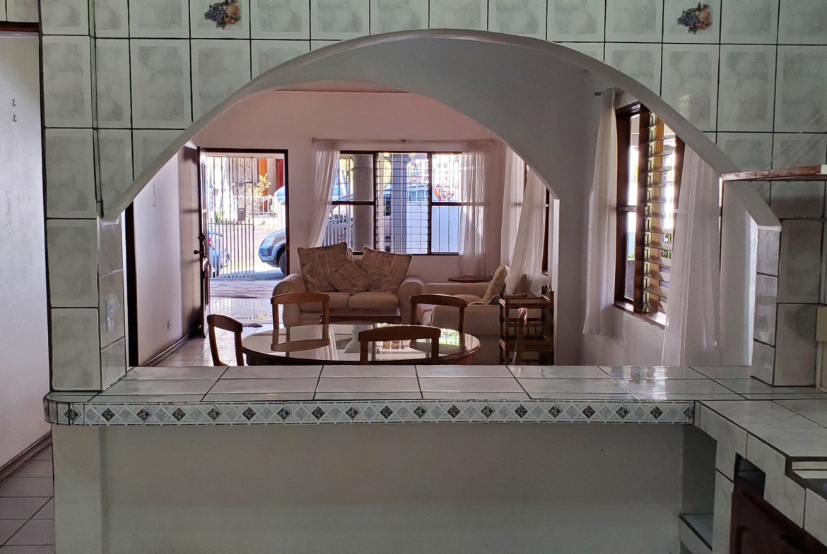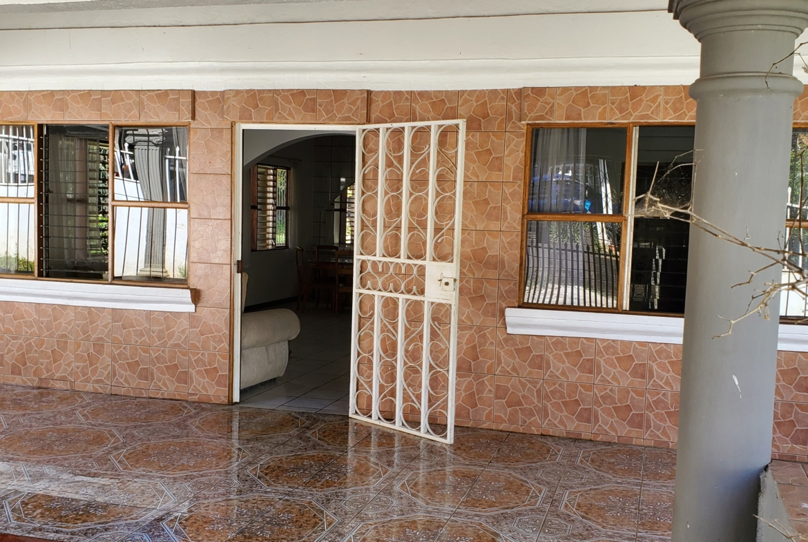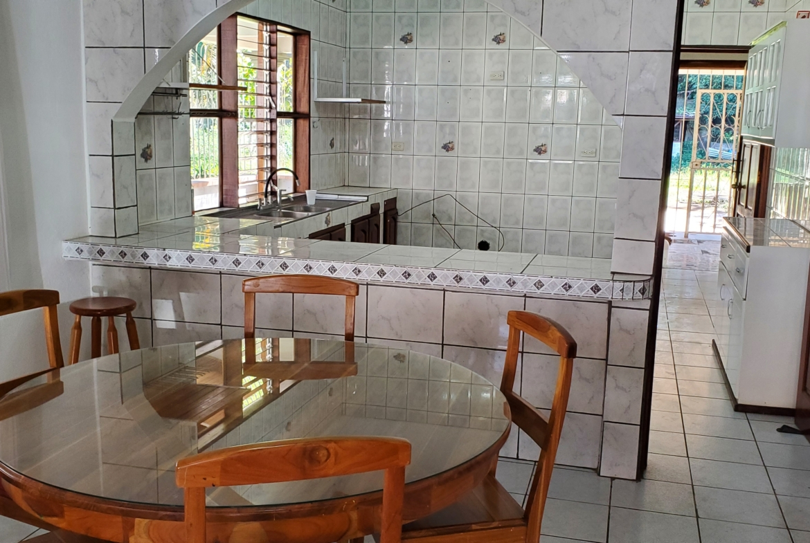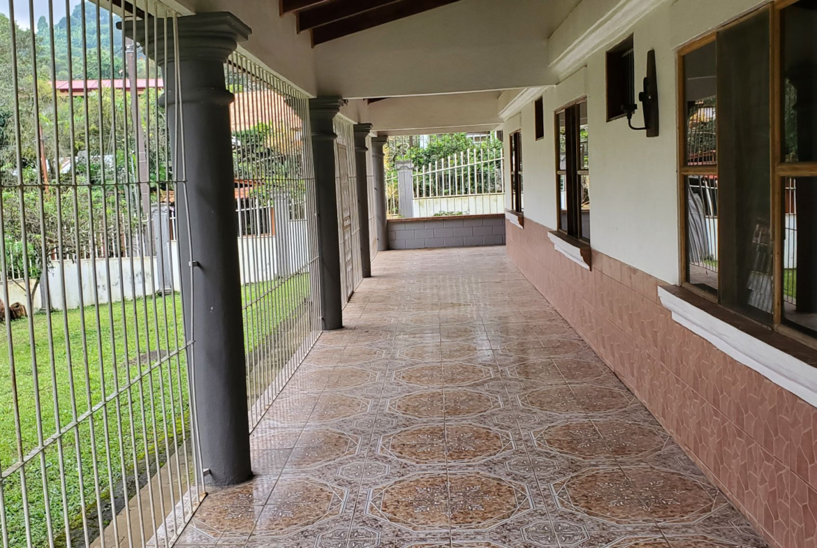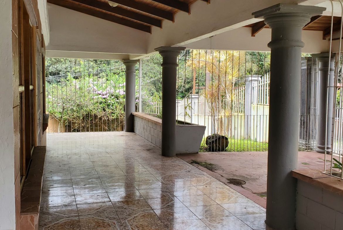 Santa Barbara de Heredia 3 BR house with wrap around porch and gardens for sale. Everything feels open and spacious. It begins with an open design of living and dining area looking into the kitchen from the breakfast bar. High ceilings and skylights add light and space.